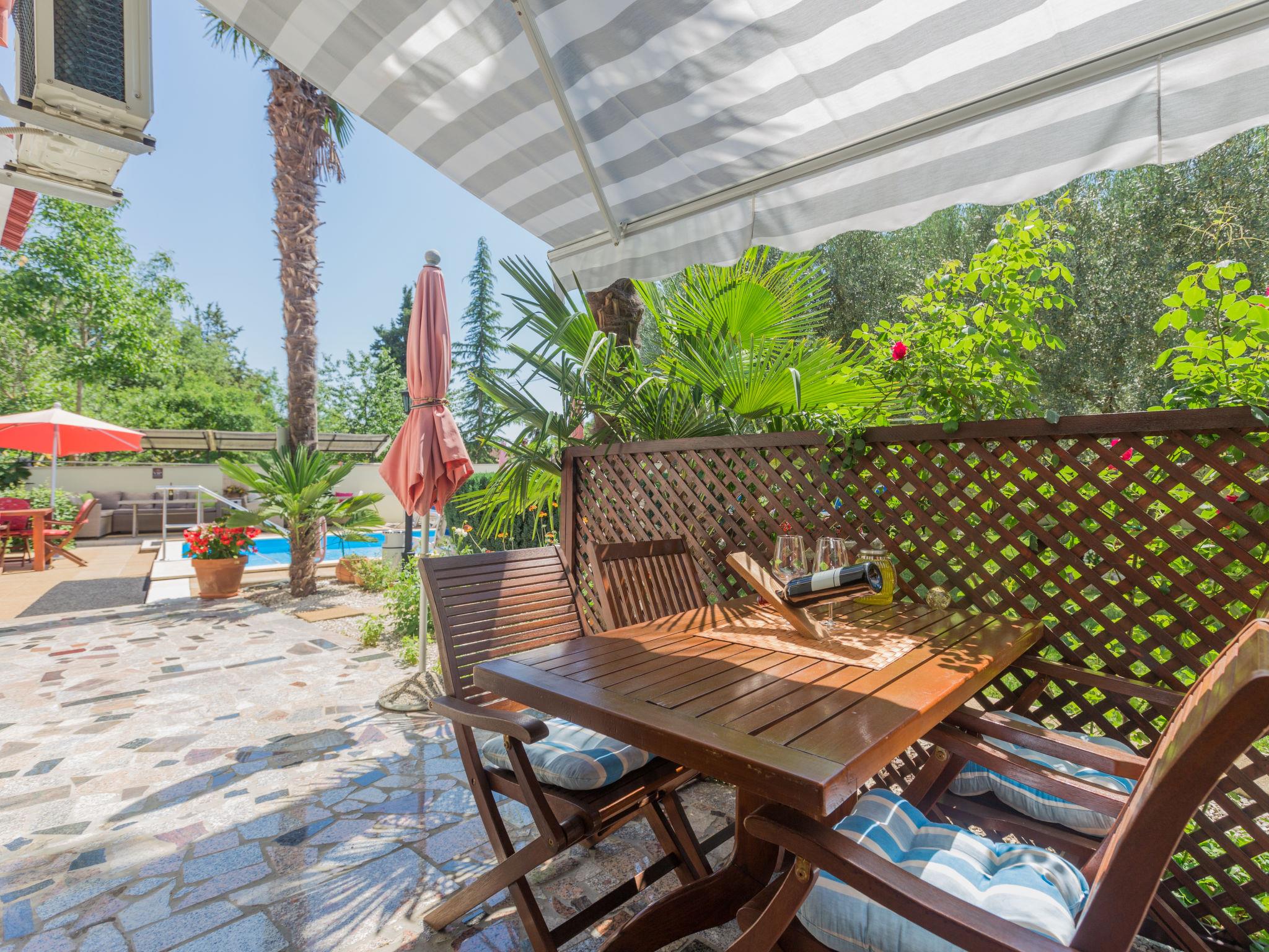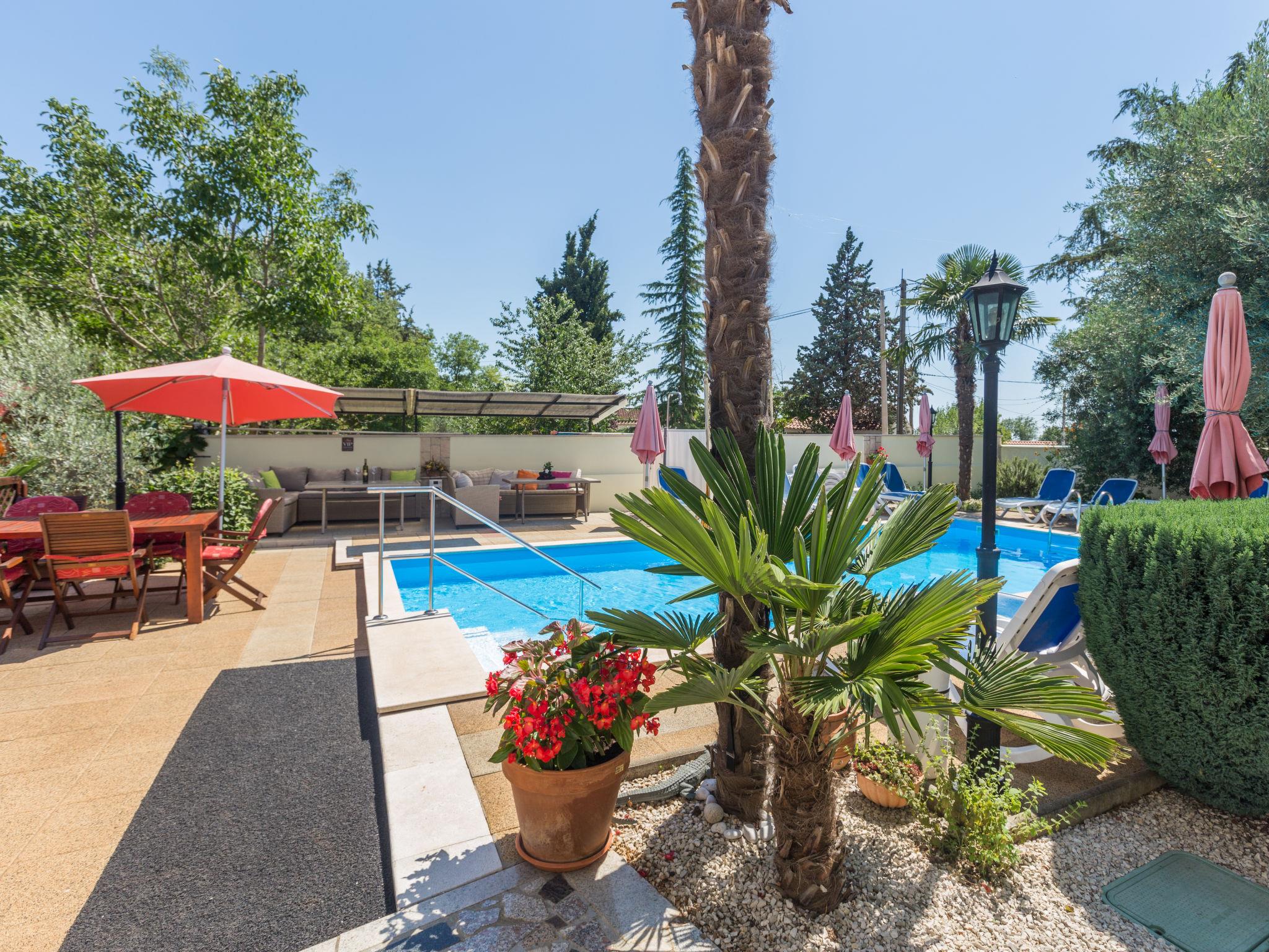 Apartment house "Nena". In the hamlet Kosinožici 2.5 km from the centre of Nova Vas, 5 km from the centre of Porec, 5 km from the sea. For shared use: property 1'000 m2 with lawn and trees, swimming pool (9 x 4 m, depth 140 cm, seasonal availability: 01.May. - 01.Oct.). Outdoor shower, terrace, garden furniture, barbecue (swing, sandbox), pool maintenance by the owner/gardener. In the house: internet access. Parking on the premises. Shop 2.5 km, supermarket 3.5 km, restaurant 2.5 km, bus stop 4.2 km, railway station 34 km, rocky beach 5 km. Marina 5 km. Please note: the owner lives in the same residence.