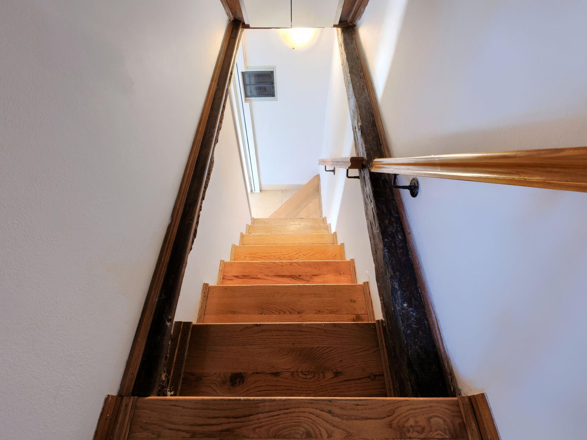 5-room terraced house 122 m2 on 3 levels. Living/dining room with kitchen corner, satellite TV and air conditioning. Exit to the terrace. Kitchen (4 hot plates, oven, dishwasher, toaster, kettle, microwave, electric coffee machine) with dining table and satellite TV. Exit to the terrace. Shower/WC. Upper floor: entrance hall with air conditioning. Living room with satellite TV. Exit to the balcony. (steep stair), 1 room with 1 bed, 1 double bed and air conditioning. Exit to the balcony. Top floor: 1 room with sloping ceilings with 1 bed (80 cm, length 200 cm), 1 double bed and air conditioning. 1 room with sloping ceilings with 2 beds. Bath/WC with corner bath. Forced-air heating. 2 balconies, terrace 30 m2. Terrace furniture. Facilities: washing machine, baby cot (extra). Internet (WiFi, free). Please note: non-smoking house. Maximum 1 pet/ dog allowed. One house with kitchen on the ground floor, living room on the first floor and 2 bedrooms on the top floor. The other house with living/dining area and open kitchen on the ground floor and 2 bedrooms on the first floor. Low placed window in one bedrooom on the top floor.