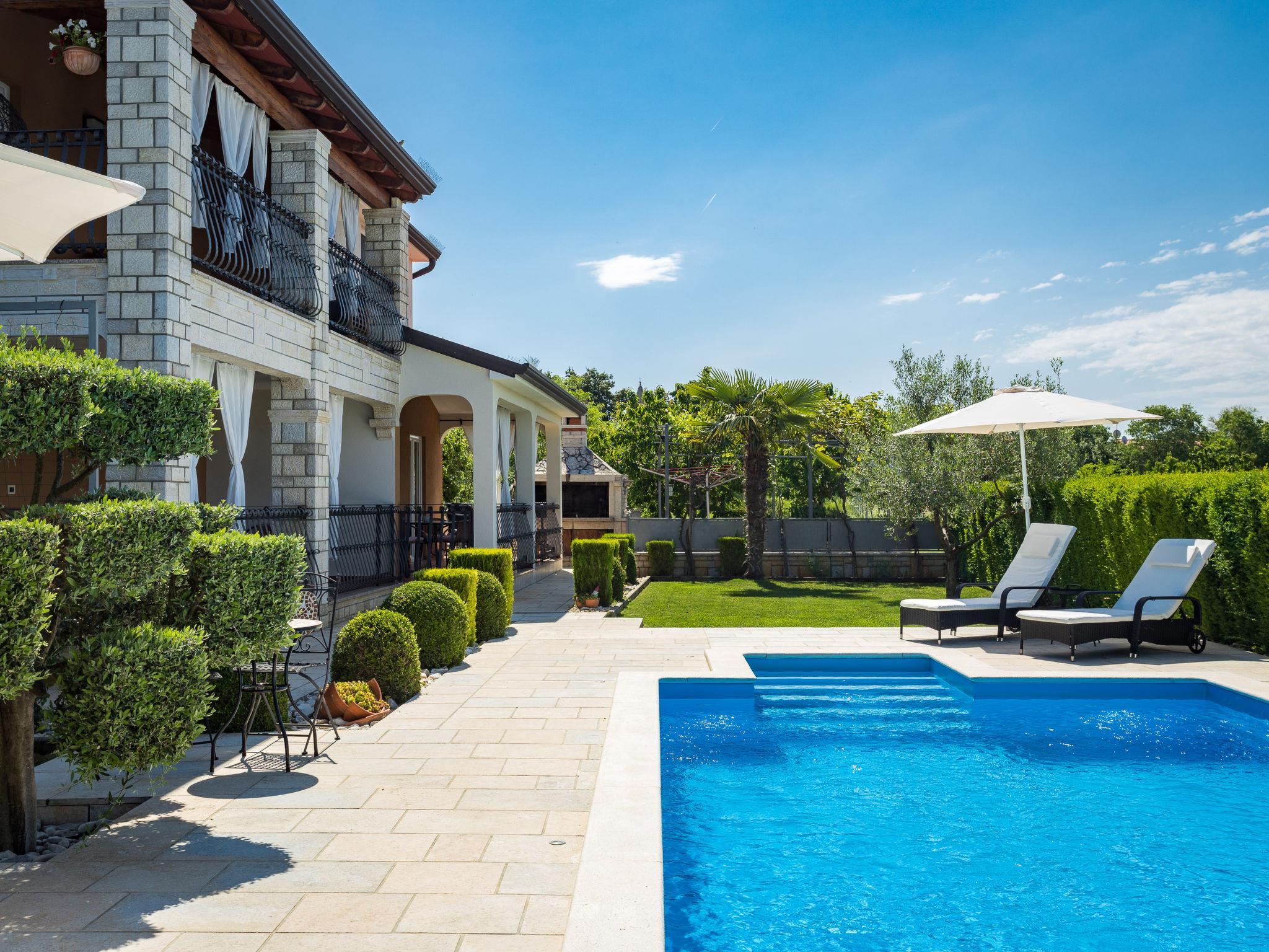 3-family house "Cancar". 8 km from the centre of Porec, 8 km from the sea. For shared use: property 1'000 m2 with lawn and trees, swimming pool (9 x 4 m, depth 150 cm, seasonal availability: 01.May. - 01.Oct.). Outdoor shower, barbecue. In the house: internet access. Parking on the premises. Shop 300 m, supermarket 7 km, bus stop 8 km, railway station 24 km, rocky beach 8 km. Marina 8 km. Please note: the owner lives in the same residence.