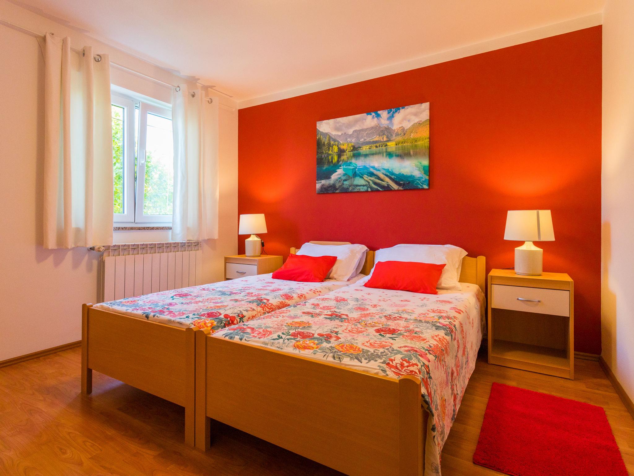 "Cancar", 3-room apartment 95 m2, on the ground floor. Living/dining room with 1 double sofabed (160 cm, length 200 cm), satellite TV and air conditioning. Exit to the terrace. 1 room with 2 beds (90 cm, length 200 cm). 1 room with 1 double bed (2 x 90 cm, length 200 cm). Open kitchen (1 hot plate, oven, dishwasher, toaster, kettle, microwave, freezer, electric coffee machine). Shower/WC. Heating, gas heating. Terrace. Terrace furniture. Facilities: washing machine, iron. Internet (WiFi, free). Please note: non-smoking house. Maximum 1 pet/ dog allowed.