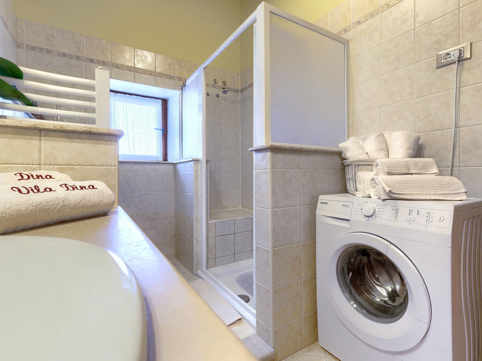 Semi-detached house "Villa Dina", 2 storeys. In the hamlet Medvidici 2.5 km from the centre of Sveti Lovrec, 13 km from the centre of Porec, 8 km from the sea. Private: property 500 m2, lawn, swimming pool angular (6 x 4 m, depth 150 cm, seasonal availability: 01.May. - 02.Oct.) with internal staircase. Outdoor shower, terrace (25 m2), garden furniture, barbecue. In the house: internet access, washing machine. Parking (for 3 cars) on the premises. Shop 2.5 km, restaurant 5 km, bus stop 5.6 km, pebble beach 13 km. The owner does not accept any youth groups. Possibility of buying autochthonous food products (on request, extra).