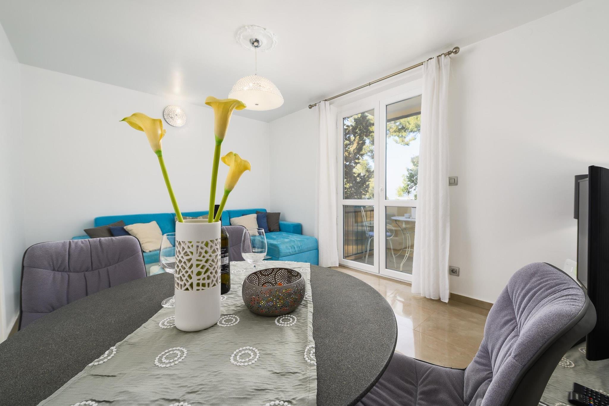 This property, with its modern and comfortable furnishings, offers a pleasant stay for up to four guests in a 60 m² apartment. Located right by the beach with a waterfront view, the apartment has two bedrooms, making it ideal for a family or a small group. The accommodation is fully equipped with amenities such as Wi-Fi, air conditioning, and a heat pump, ensuring comfort during your stay. A balcony provides the perfect spot to enjoy the fresh sea air. Additional conveniences include three TVs with satellite channels in multiple languages (English, German, and Russian), as well as open-air parking in the adjacent building. Situated in a family-friendly zone and just steps away from the sea, the property enjoys an excellent location in Porec. Guests can easily access local attractions, with the nearest supermarket, Konzum, only 50 meters away. The Pical rock beach is just 350 meters from the apartment, perfect for a day by the sea. The vibrant city center of Porec is only a short walk away, while a bus station is 600 meters from the property for easy access to further destinations. For family fun, Aquacolors water park is located 5 km away. The nearest airport and train station, in Pula, are both approximately 70 km from the property. The apartment boasts a fully equipped open-plan kitchen, featuring modern appliances such as a glass ceramic hotplate, refrigerator, oven, freezer, and dishwasher. All necessary kitchenware, including dishes, cutlery, and utensils, are provided, along with a coffee machine, toaster, and kettle for added convenience.
