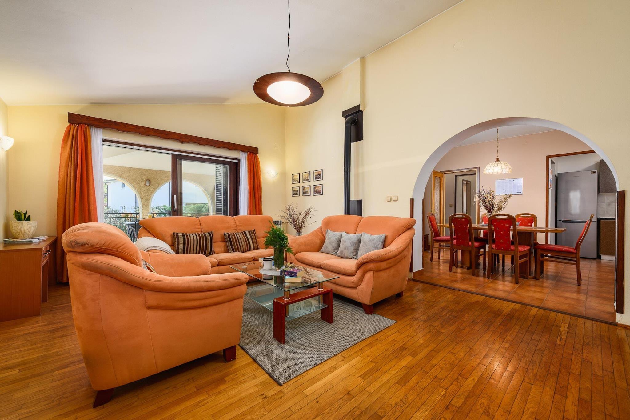 This spacious apartment comfortably accommodates up to 5 guests in its three well-appointed bedrooms. The property features a private garden with outdoor furniture, ideal for enjoying the fresh air, as well as a terrace for dining or relaxing. Additional features include a washing machine, barbecue, and a children's area, making it a great choice for families with young children. Open-air parking is provided within the same building, offering convenience and peace of mind. The apartment is perfectly located just 25 meters from the picturesque Pical Beach, making it an excellent choice for those who want to enjoy the sea and sand. The nearby "Konoba Kvartin, Vranici" restaurant is only 300 meters away, offering a variety of local dishes. For daily essentials, the "Studenac" supermarket is a short 540-meter walk. If you're looking to explore the area, Porec's city center is just 3 km away, while popular attractions like the Aquacolors water park (8 km) and Dino Park amusement park (11 km) are within easy reach. The region is also home to natural beauty, with the Mirna River (33 km) and the Brijuni Islands nature reserve (52 km) offering scenic landscapes and outdoor activities. Pula Airport and train station are about 60 km away, providing convenient access to the property. The apartment features a fully equipped independent kitchen with a gas stove, refrigerator, oven, dishwasher, and all necessary kitchenware, making it easy to prepare meals at home. A coffee machine, toaster, and kettle are also available for added convenience. Whether you're preparing a family meal or simply enjoying a cup of coffee, the kitchen provides everything you need for a comfortable stay.