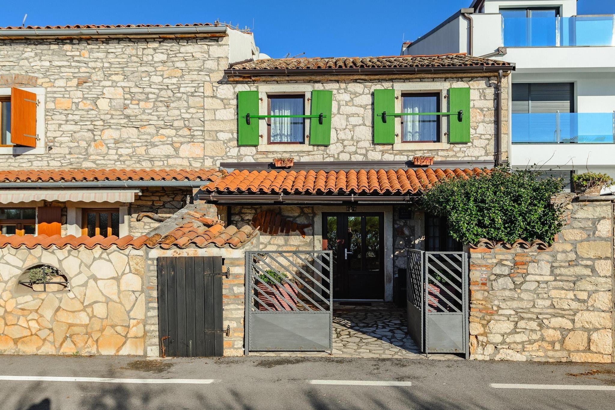 The house in Porec has 3 bedrooms and capacity for 5 persons. Accommodation of 80 m² tastefully-furnished and is fully-equiped, located on beach, It has waterfront and garden. The property is located 0 m metro station, 3 m rock beach "Materada", 10 m sand beach "Marea", 100 m from the restaurant "Istranka", 100 m supermarket "Istranka", 2 km city "Porec", 2 km bus station "Porec", 7 km water park "Aquacolors Porec", 10 km amusement park / theme park "Dino Park Funtana", 23 km river "rijeka Mirna", 37 km thermal springs "Istarske toplice", 40 km lake "accumulation lake Butoniga", 40 km nature reserve "NP Brijuni", 46 km golf course "Crveni Vrh", 60 km airport "Pula", 60 km train station "Pula" and it is located in a a children-friendly zone and next to the sea. The accommodation is equipped with the following items: garden, outdoor furniture, fenced plot, 50 m² terrace, washing machine, fireplace, iron, internet (Wi-Fi), hair dryer, heat pump, air-conditioned, open-air parking in the adjoining building, 1 TV, satellite tv (Languages: Spanish, English, German). The independent kitchen, of gas, is equipped with refrigerator, oven, freezer, dishes/cutlery, kitchen utensils, coffee machine, toaster and kettle.
