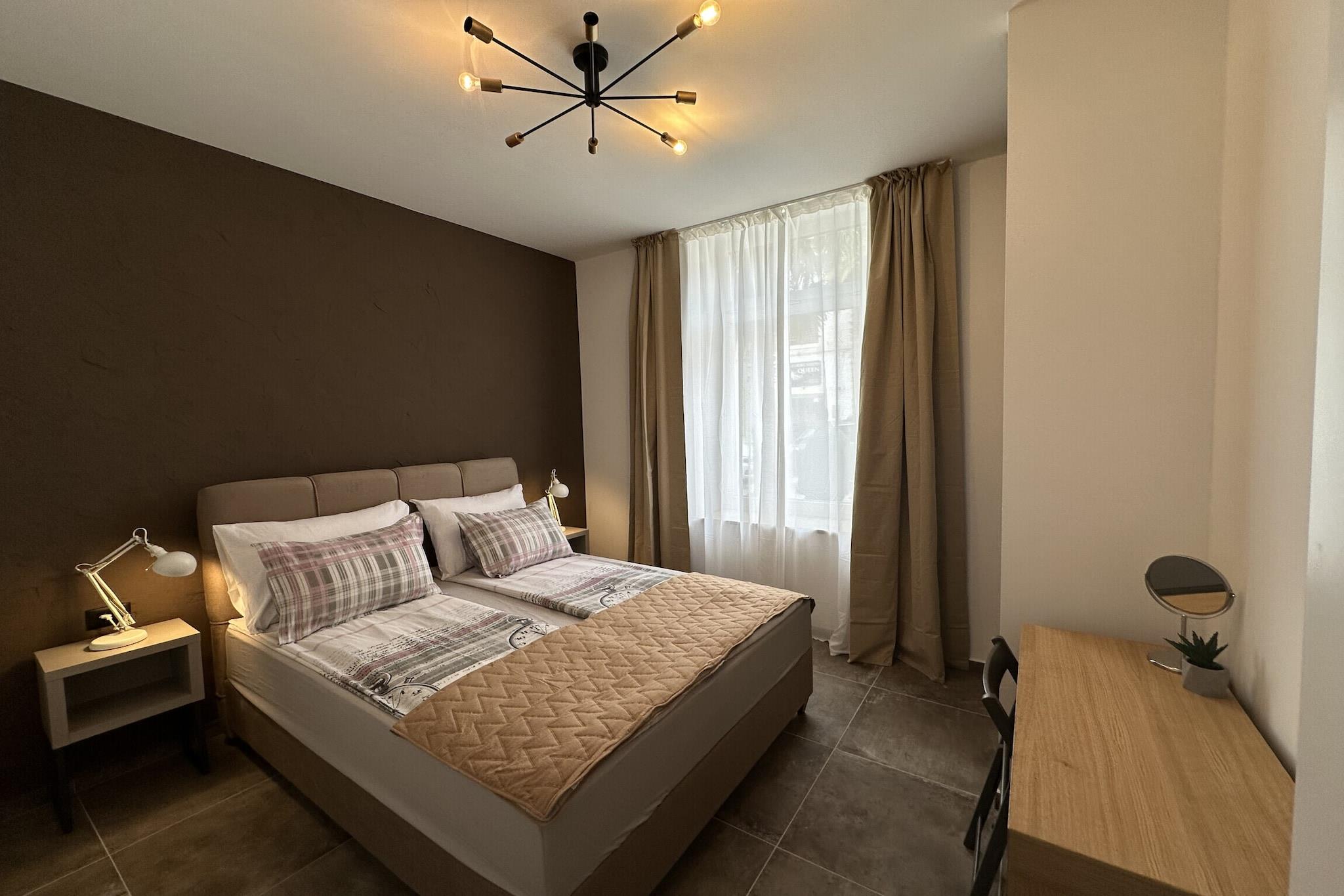 The apartment in Porec has 2 bedrooms and capacity for 4 persons. Accommodation of 70 m² tastefully-furnished and is a new build. The property is located 0 m golf course, 0 m ski resort, 50 m from the restaurant, 50 m city, 100 m supermarket, 250 m bus station, 400 m sand beach, 400 m rock beach, 2 km water park "Aquacolors Porec", 7 km amusement park / theme park "Dino park", 25 km thermal springs "Istarske toplice", 50 km nature reserve "Brioni", 50 km airport "Pula", 70 km train station "Trieste", 110 km airport "Trst" and it is located in a a children-friendly zone and next to the sea. The accommodation is equipped with the following items: 8 m² terrace, washing machine, iron, safe, internet (Wi-Fi), hair dryer, heat pump, air-conditioned, open-air parking in the adjoining building, 1 TV, satellite tv (Languages: English, German). The open plan kitchen, of induction, is equipped with refrigerator, microwave, freezer, dishwasher, dishes/cutlery, kitchen utensils, coffee machine, toaster and kettle.
