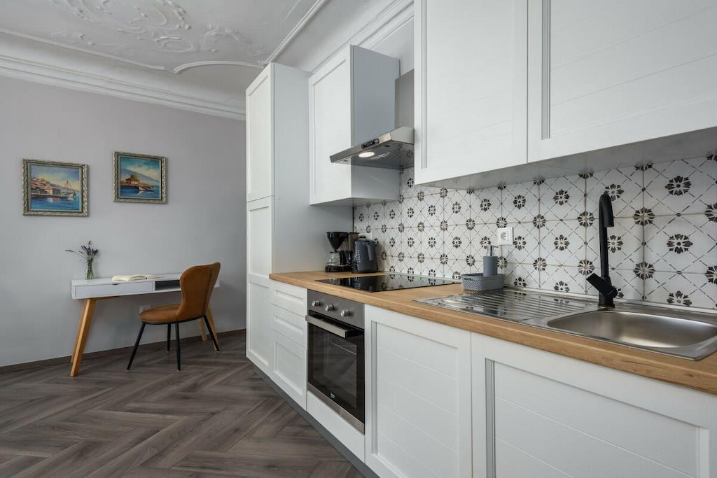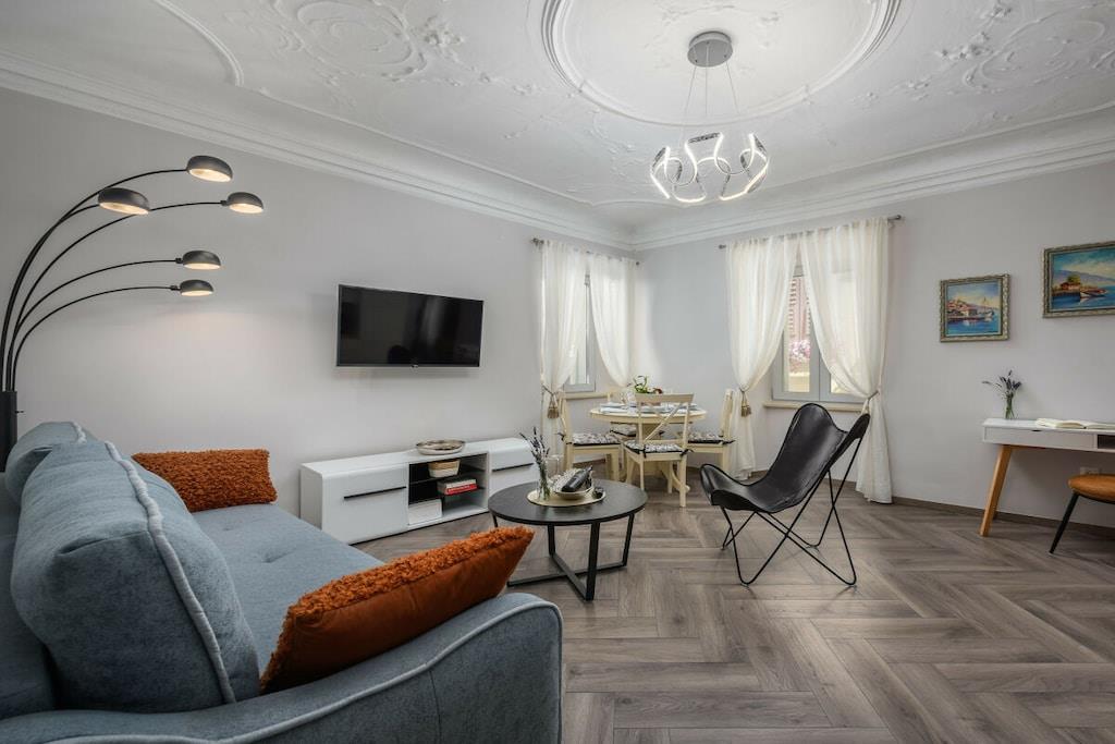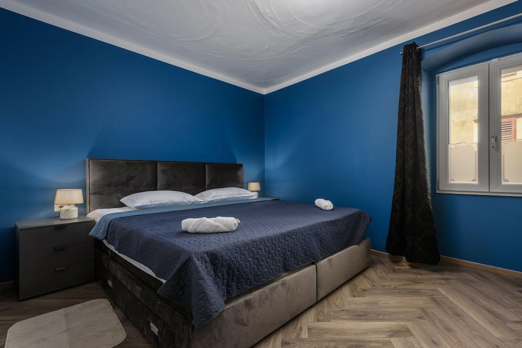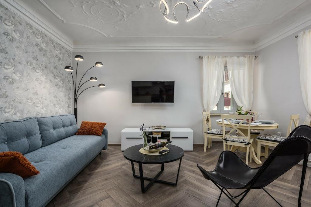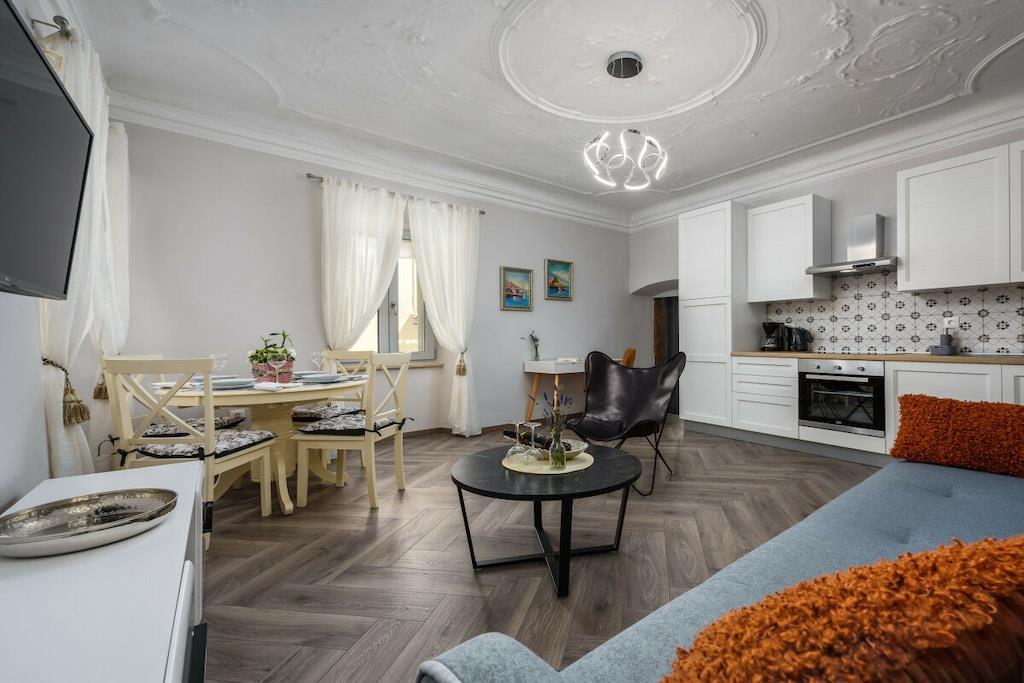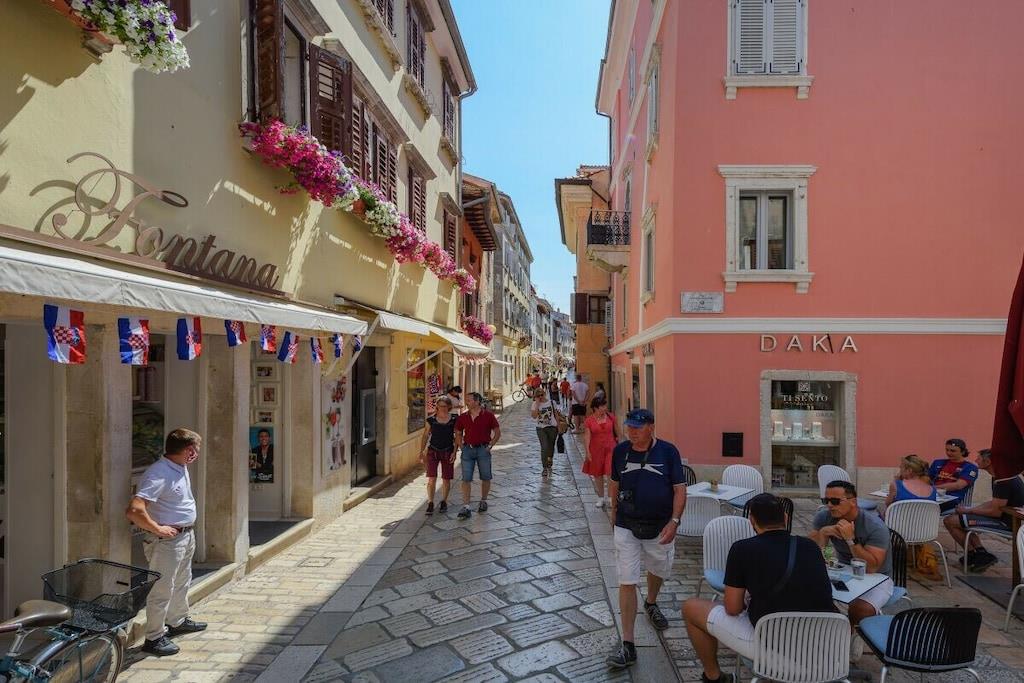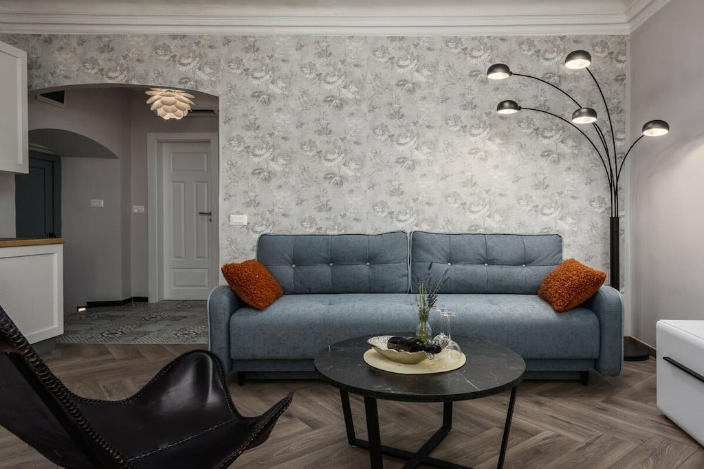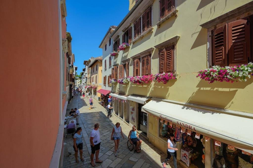 Premium Apartment Daka is a luxurious apartment in the center of Porec. Modern, tastefully furnished, and bright, it's a gem in Porec's historic Old Town. The windows overlook the main street in the Old Town – Decumanus Street, a lively street with many tourists, shops, and restaurants. The apartment (sleeps 4) consists of a living room, dining room, and kitchen area, a large master bedroom with a king-size bed, a small bedroom with a single bed, and a sofa bed in the living area. There's a modern bathroom with a shower. If you want to be in the heart of Porec and enjoy the vibrant historic town of Porec, this is the place to be. The apartment is located in the pedestrian zone. A free parking permit for one car is provided for a nearby parking lot (approximately 700 meters from the apartment).