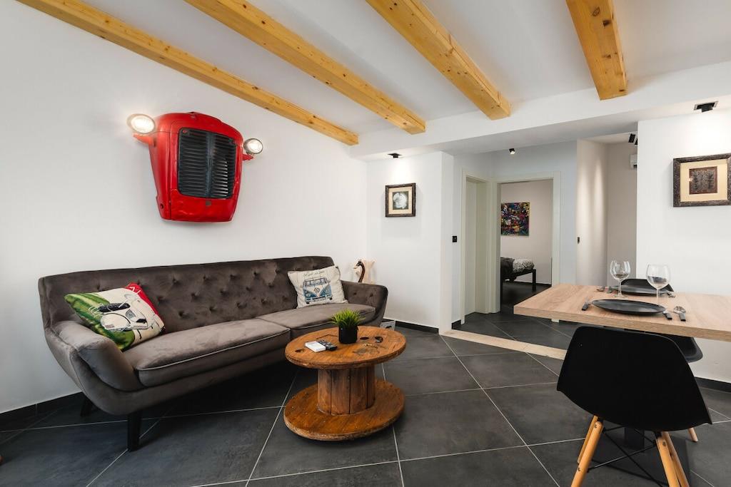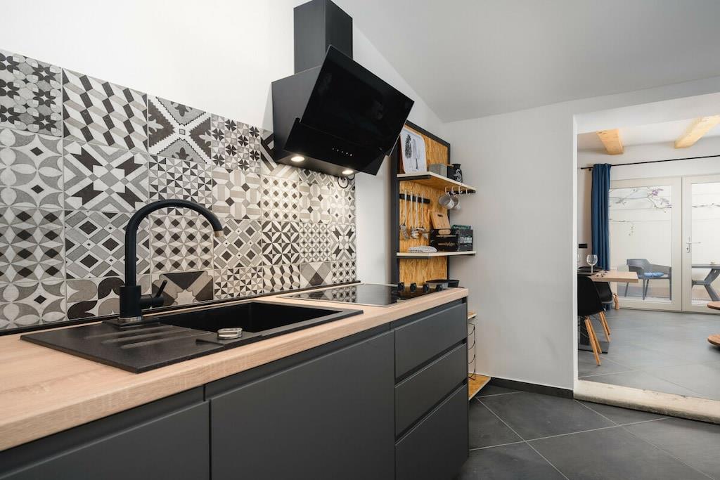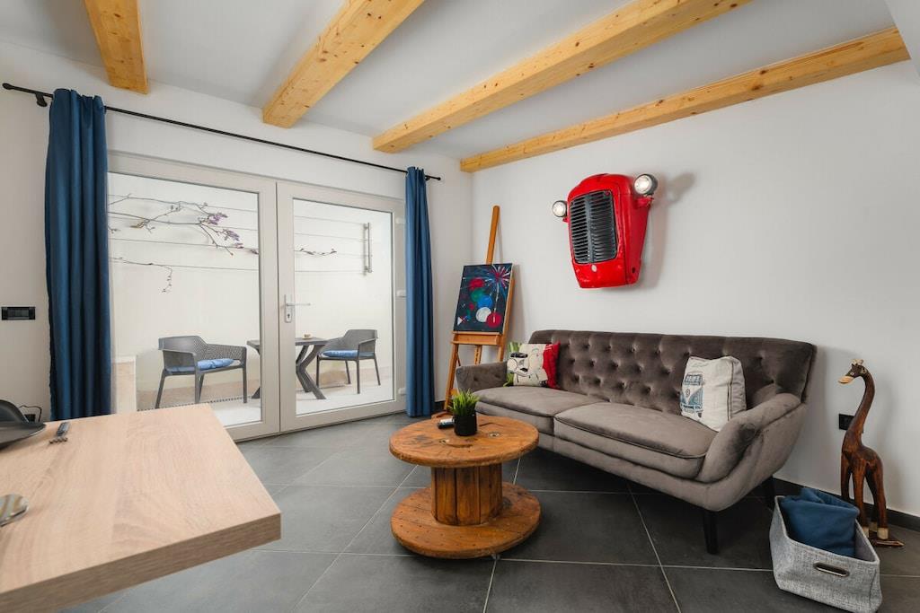 The building has three apartments. The Urban Black apartment is located on the ground floor. This 35 m², newly built, tastefully furnished apartment has one bedroom and sleeps two people.