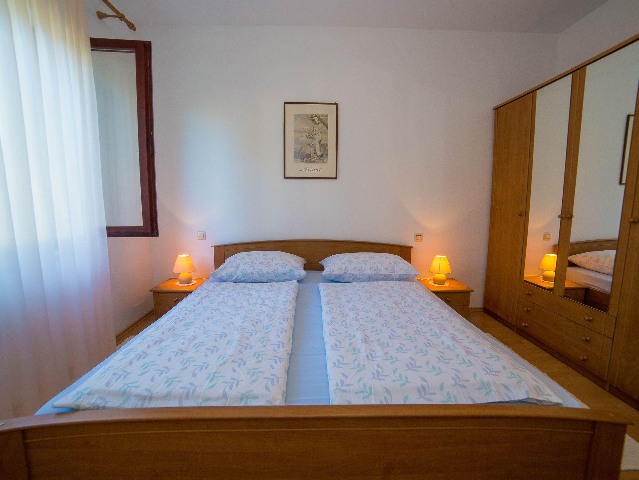 Ferienwohnung bietet Platz für 4 Gäste. Die Betten sind in Schlafzimmern, die es 2 gibt, innerhalb einer Gesamtfläche von 46m2, angeordnet. Die Gäste haben eine eigene Terrasse zur Verfügung, auf der sie in warmen Sommernächten genießen können. Es ist erlaubt, Speisen auf dem Gemeinschafts-Grill vorzubereiten. IM PREIS INBEGRIFFEN: Kurtaxe, Endreinigung, Klimatisierung, Zentralheizung, Parkplatz, Internet, Wäschewaschen, Kinderbett, Bügeleisen, Bügelbrett, Föhn. VERBINDLICHE ZUSÄTZLICHE KOSTEN: Aufzahlung für Kurzaufenthalte (prozentualer Zuschlag pro Nächtigungsanzahl: 30% - 1, 20% - 2, 10% - 3). Die Verfügbarkeit zusätzlicher Dienstleistungen in Ihrem reservierten Termin und die Preise derselben (falls nicht aufgeführt) müssen im Voraus überprüft werden. Zusätzliche Dienstleistungen die in der Zahlungsaufforderung nicht aufgeführt sind werden direkt beim Vermieter bezahlt, angenommen der Gast nutzt auch diese.