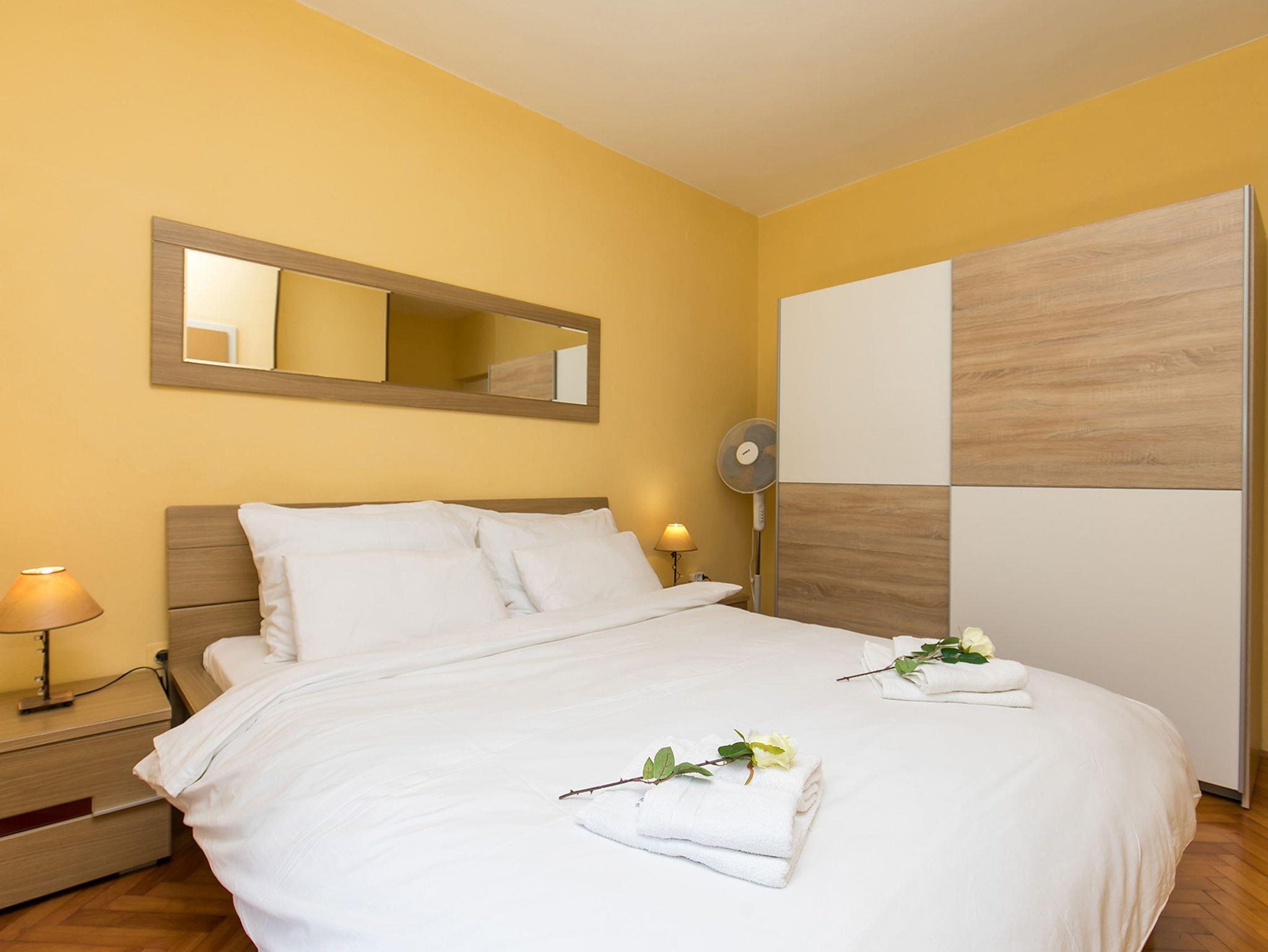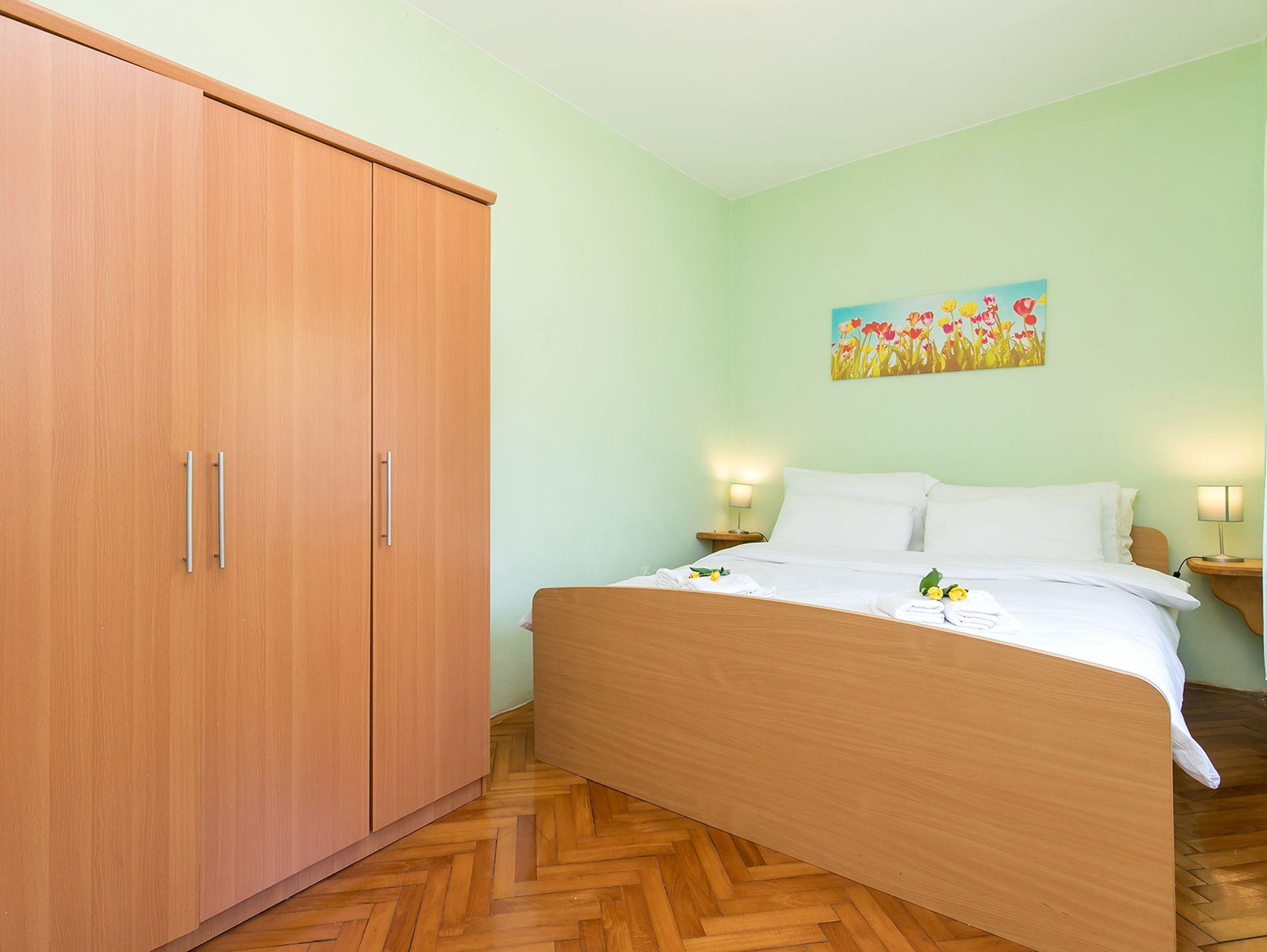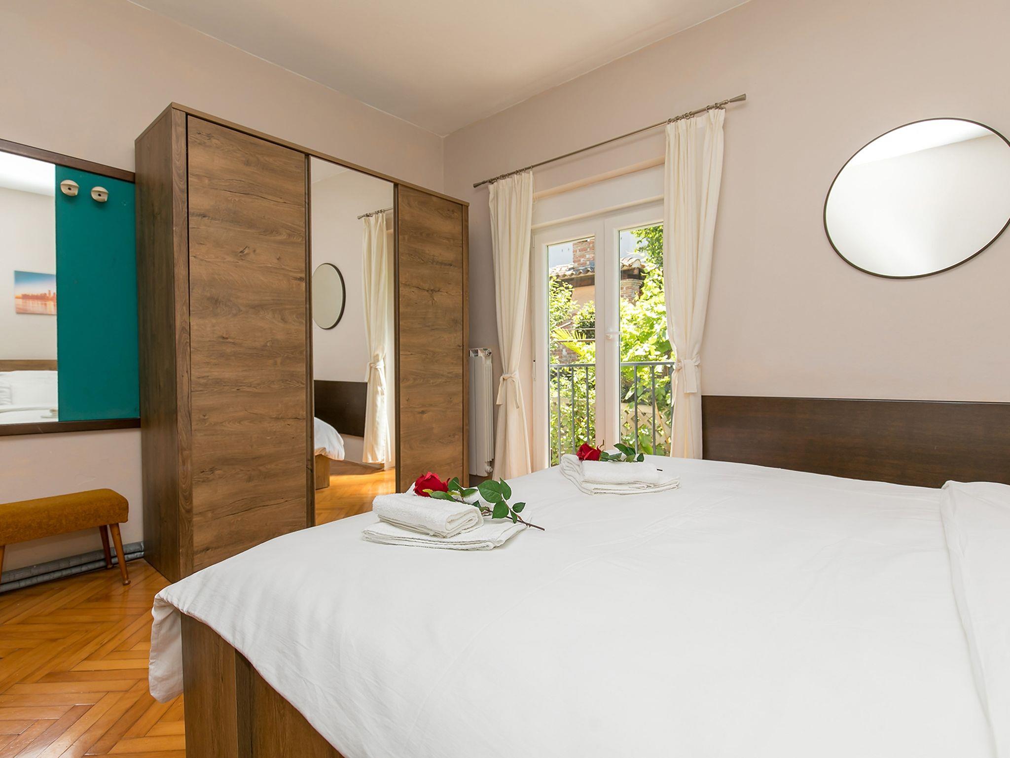 Ferienwohnung bietet Platz für 6 Gäste. Die Betten sind in Schlafzimmern, die es 3 gibt, innerhalb einer Gesamtfläche von 81m2, angeordnet. Die Gäste haben eine eigene Terrasse zur Verfügung, auf der sie in warmen Sommernächten genießen können. Für vollen Genuss und Entspannung gibt es einen privaten Grill für Gäste dieser Unterkunft. In der Unterkunftseinheit besteht die Möglichkeit des Mitbringens von Haustieren gegen Aufpreis. IM PREIS INBEGRIFFEN: Kurtaxe, Endreinigung, Klimatisierung, Zentralheizung, Parkplatz, Internet, Kinderbett, Bügeleisen, Bügelbrett, Föhn. VERBINDLICHE ZUSÄTZLICHE KOSTEN: Aufzahlung für Kurzaufenthalte (prozentualer Zuschlag pro Nächtigungsanzahl: 30% - 1, 20% - 2, 10% - 3). UNVERBINDLICHE ZUSÄTZLICHE KOSTEN: Haustiere (13,00 € pro Nacht). Die Verfügbarkeit zusätzlicher Dienstleistungen in Ihrem reservierten Termin und die Preise derselben (falls nicht aufgeführt) müssen im Voraus überprüft werden. Zusätzliche Dienstleistungen die in der Zahlungsaufforderung nicht aufgeführt sind werden direkt beim Vermieter bezahlt, angenommen der Gast nutzt auch diese.