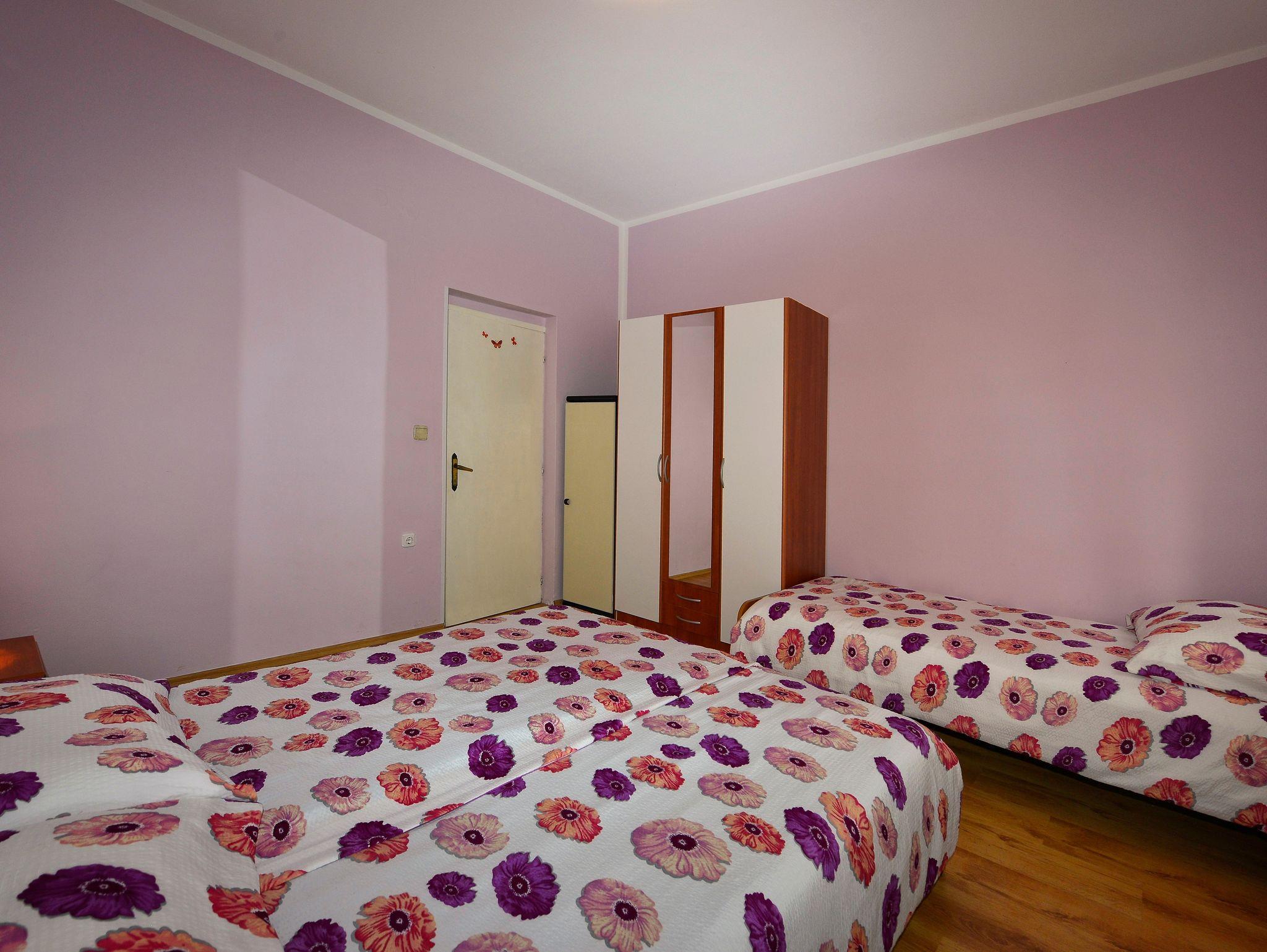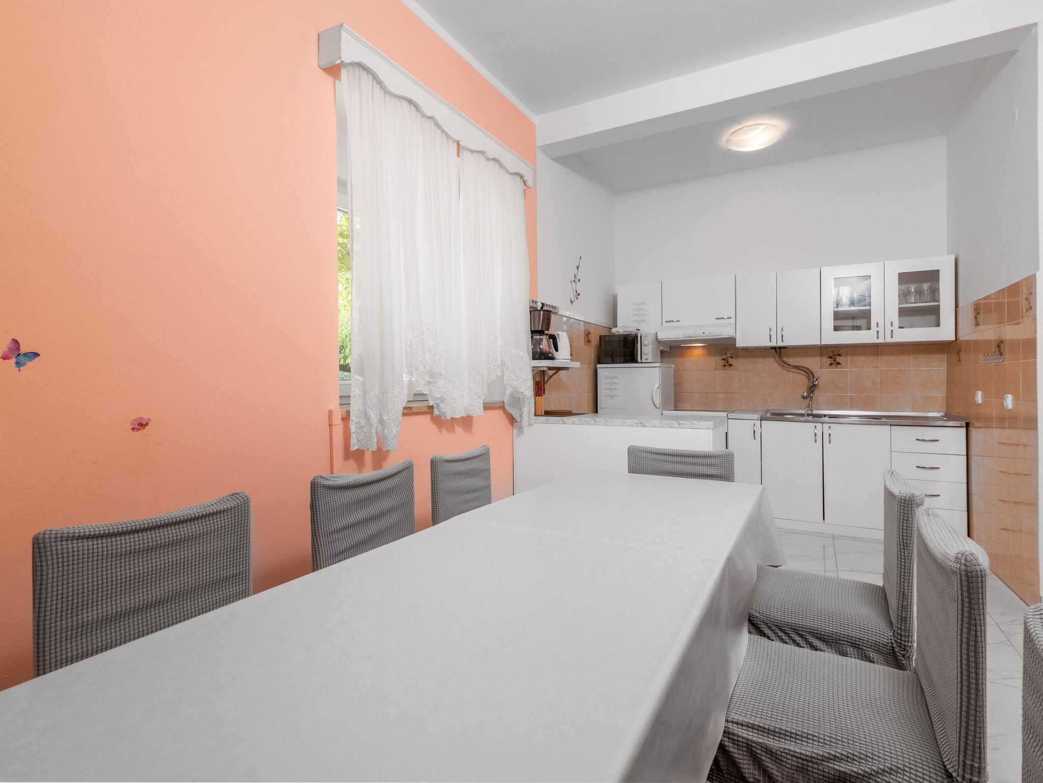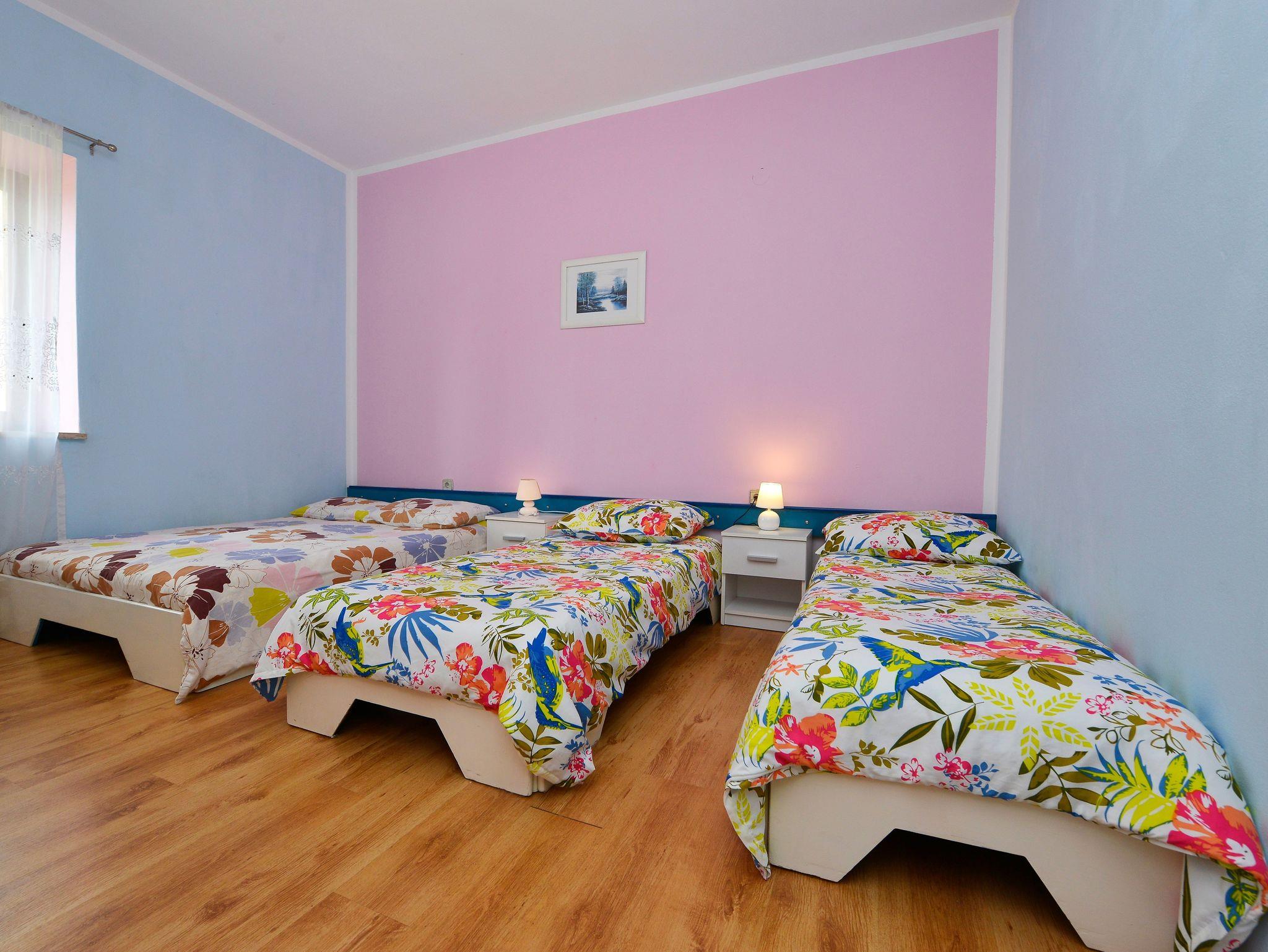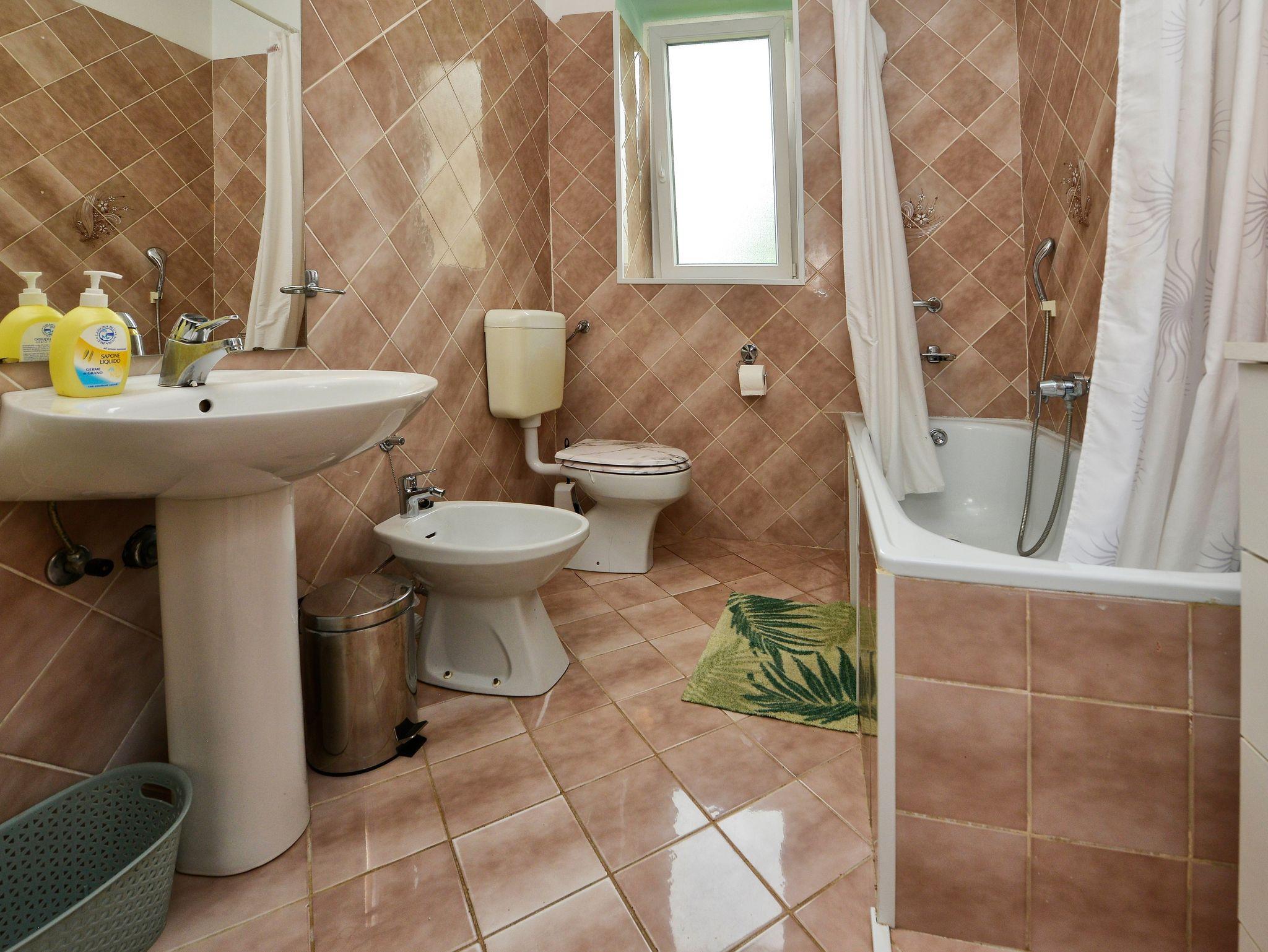 Ferienwohnung bietet Platz für 9 Gäste. Die Betten sind in Schlafzimmern, die es 2 gibt, und in Wohnzimmer, innerhalb einer Gesamtfläche von 71m2, angeordnet. Die Gäste haben eine eigene Terrasse zur Verfügung, auf der sie in warmen Sommernächten genießen können. Es ist erlaubt, Speisen auf dem Gemeinschafts-Grill vorzubereiten. Während ihres Aufenthalts können Gäste das gemeinsam zur Nutzung stehende Schwimmbad benutzen. In der Unterkunftseinheit besteht die Möglichkeit des Mitbringens von Haustieren gegen Aufpreis. In der gebuchten Unterkunftseinheit zahlt man am Ort ein Depositum ( der Preis ist an der Internetseite angeführt ). IM PREIS INBEGRIFFEN: Kurtaxe, Endreinigung, Klimatisierung, Pool, Parkplatz, Internet, Kinderbett, Bügeleisen, Bügelbrett, Föhn, tragbarer Grill, Sonnenschirm, Liegestühle. VERBINDLICHE ZUSÄTZLICHE KOSTEN: Kaution (100,00 € Einmalzahlung). UNVERBINDLICHE ZUSÄTZLICHE KOSTEN: Wäschewaschen (5,00 € Waschen), Haustiere (10,00 € pro Nacht). Die Verfügbarkeit zusätzlicher Dienstleistungen in Ihrem reservierten Termin und die Preise derselben (falls nicht aufgeführt) müssen im Voraus überprüft werden. Zusätzliche Dienstleistungen die in der Zahlungsaufforderung nicht aufgeführt sind werden direkt beim Vermieter bezahlt, angenommen der Gast nutzt auch diese. Ermäßigung auf den Grundpreis: Gratistag 14=13 (bei einem Aufenthalt von 14 Tagen oder mehr erhalten Sie einen Gratistag für den Aufenthalt bis 31.12.26).