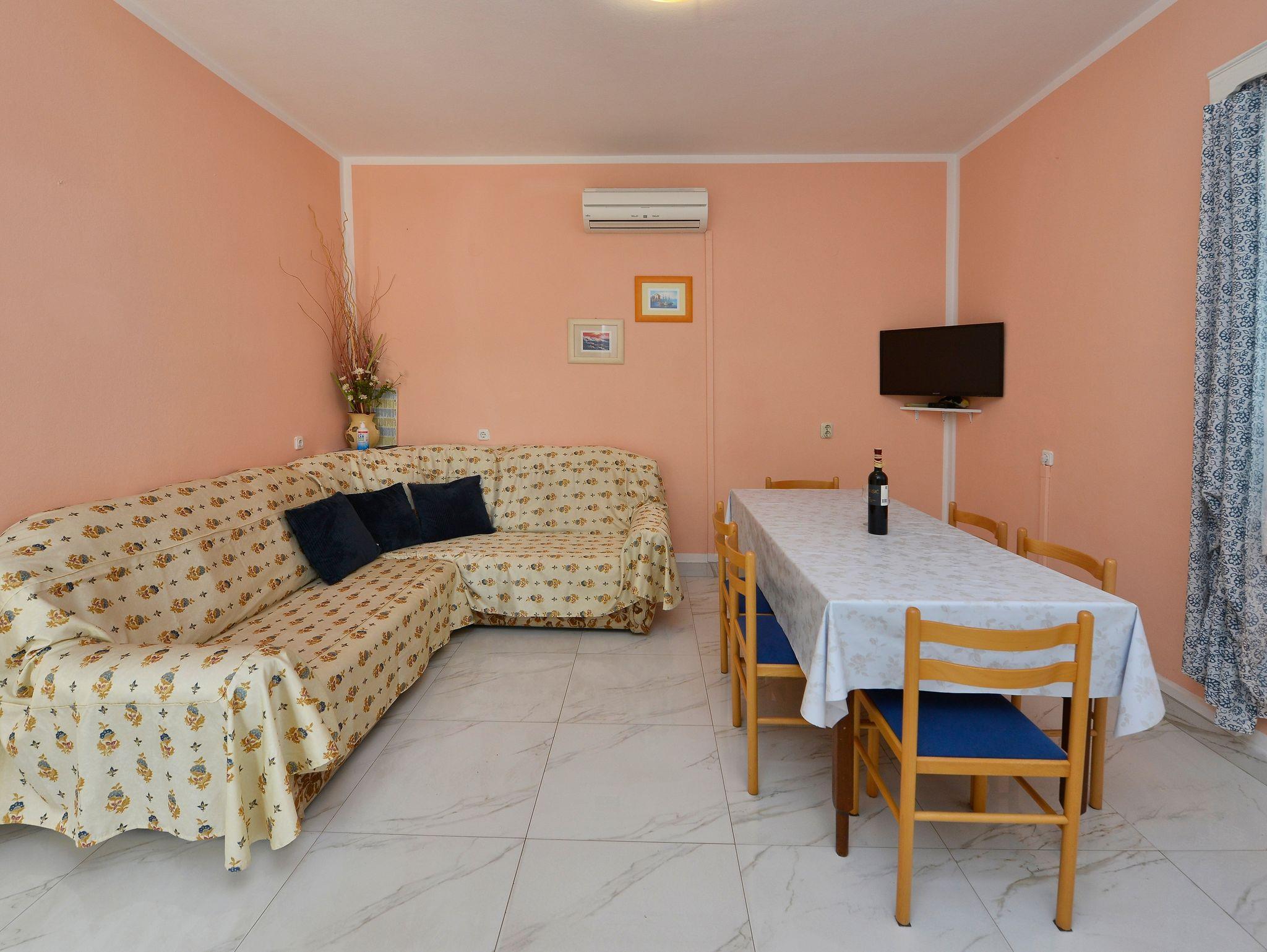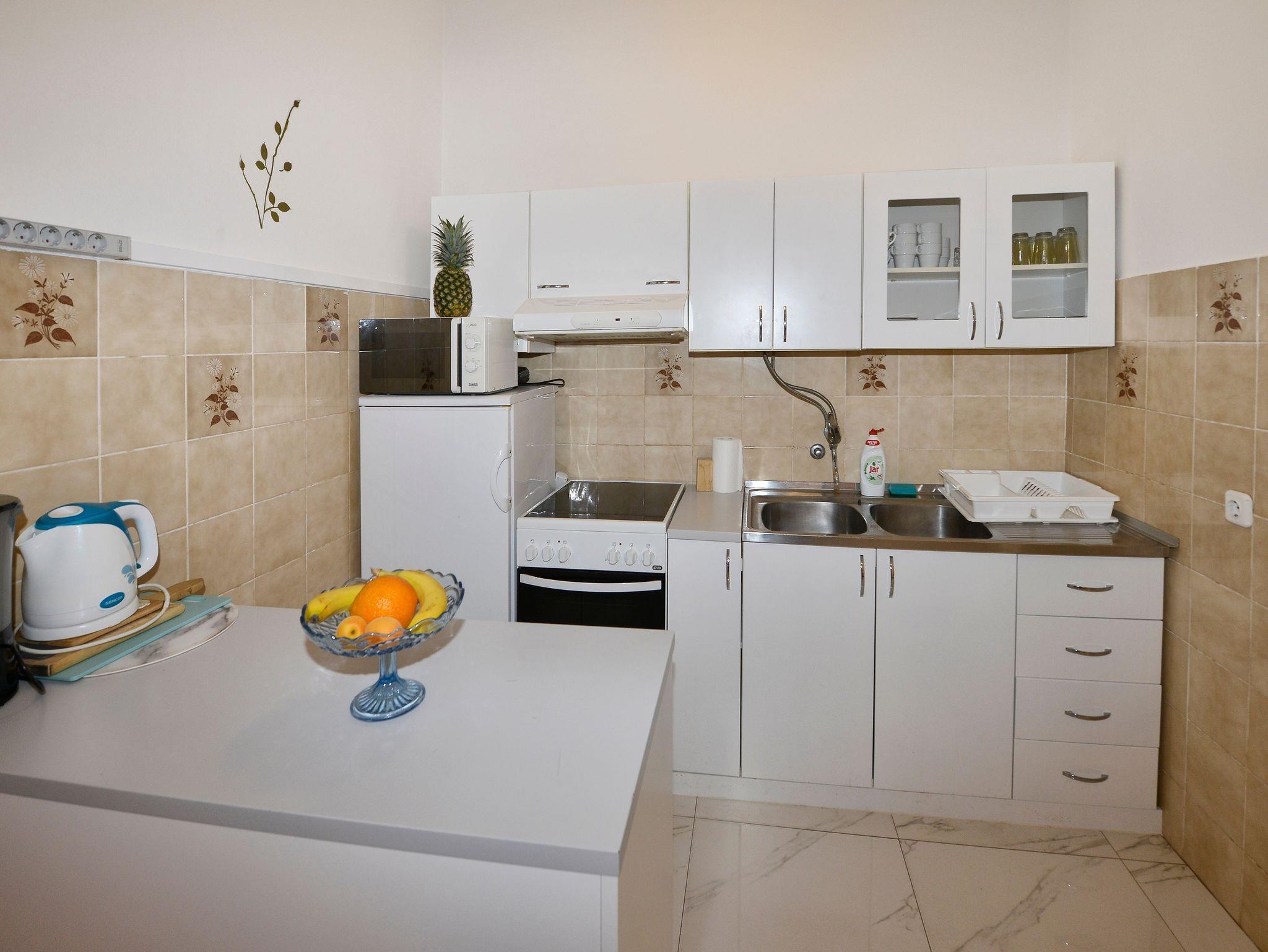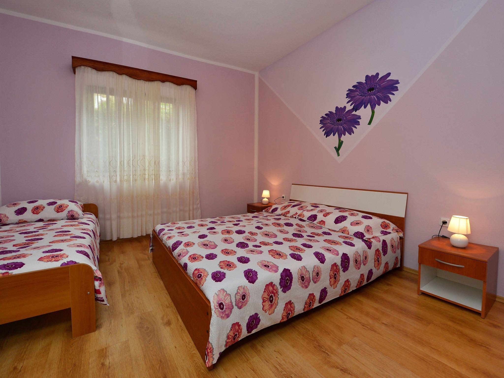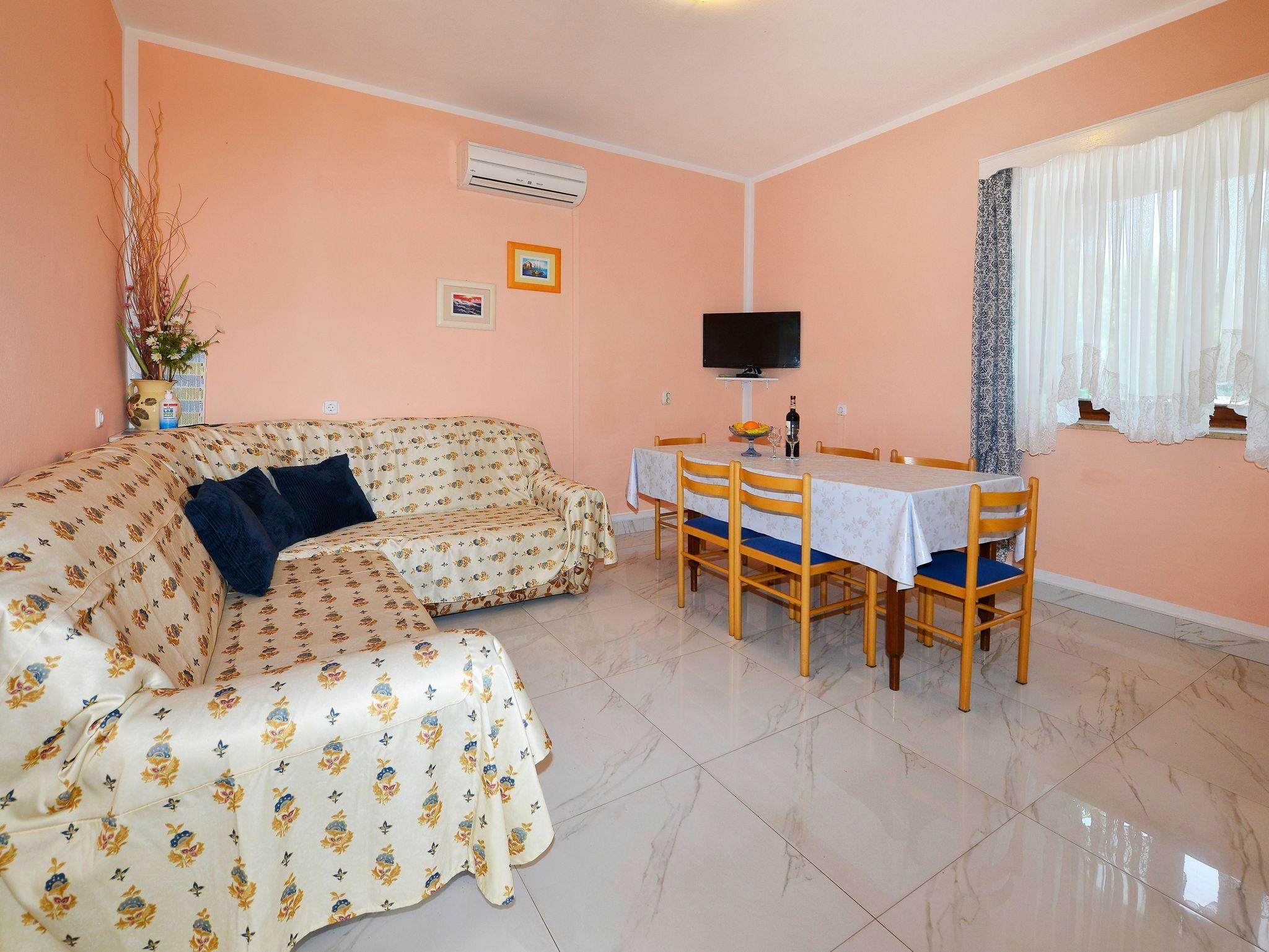 Ferienwohnung bietet Platz für 9 Gäste. Die Betten sind in Schlafzimmern, die es 2 gibt, und in Wohnzimmer, innerhalb einer Gesamtfläche von 71m2, angeordnet. Die Gäste haben eine eigene Terrasse zur Verfügung, auf der sie in warmen Sommernächten genießen können. Es ist erlaubt, Speisen auf dem Gemeinschafts-Grill vorzubereiten. Während ihres Aufenthalts können Gäste das gemeinsam zur Nutzung stehende Schwimmbad benutzen. In der Unterkunftseinheit besteht die Möglichkeit des Mitbringens von Haustieren gegen Aufpreis. In der gebuchten Unterkunftseinheit zahlt man am Ort ein Depositum ( der Preis ist an der Internetseite angeführt ). IM PREIS INBEGRIFFEN: Kurtaxe, Endreinigung, Klimatisierung, Pool, Parkplatz, Internet, Kinderbett, Bügeleisen, Bügelbrett, Föhn, tragbarer Grill, Sonnenschirm, Liegestühle. VERBINDLICHE ZUSÄTZLICHE KOSTEN: Kaution (100,00 € Einmalzahlung). UNVERBINDLICHE ZUSÄTZLICHE KOSTEN: Wäschewaschen (5,00 € Waschen), Haustiere (10,00 € pro Nacht). Die Verfügbarkeit zusätzlicher Dienstleistungen in Ihrem reservierten Termin und die Preise derselben (falls nicht aufgeführt) müssen im Voraus überprüft werden. Zusätzliche Dienstleistungen die in der Zahlungsaufforderung nicht aufgeführt sind werden direkt beim Vermieter bezahlt, angenommen der Gast nutzt auch diese. Ermäßigung auf den Grundpreis: Gratistag 14=13 (bei einem Aufenthalt von 14 Tagen oder mehr erhalten Sie einen Gratistag für den Aufenthalt bis 31.12.26).