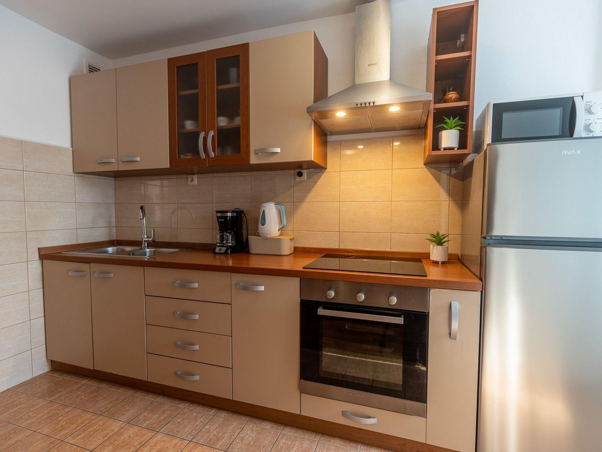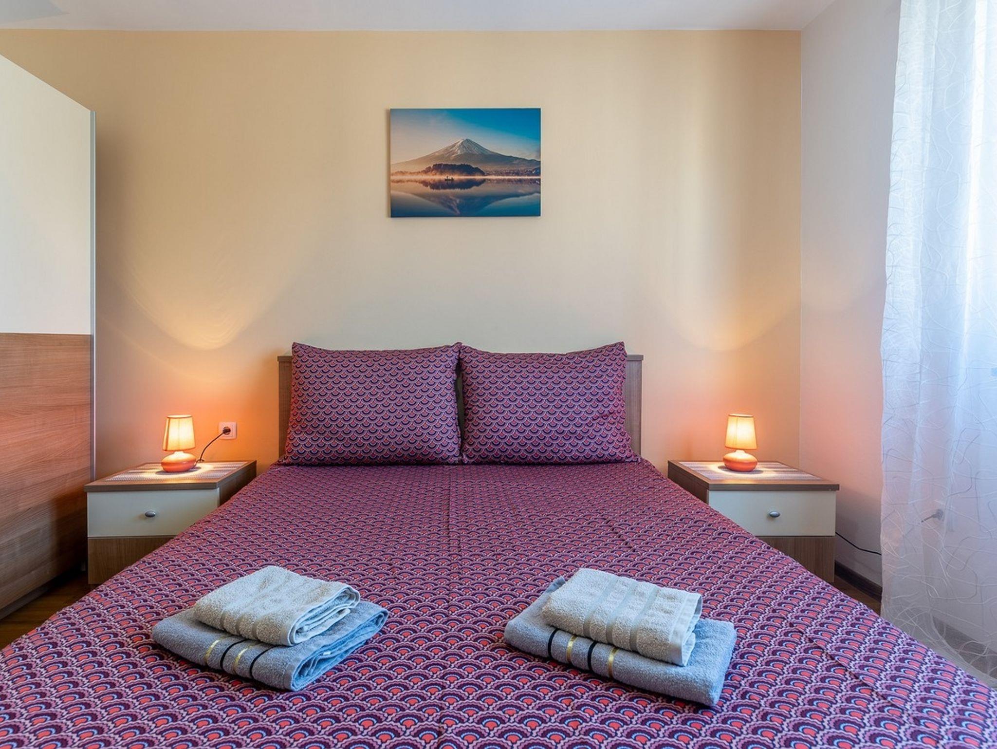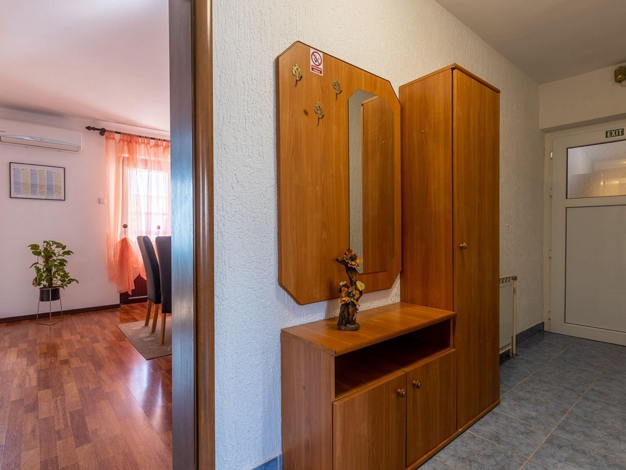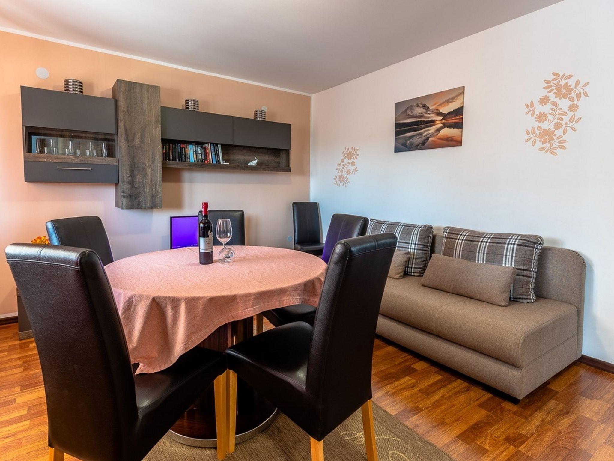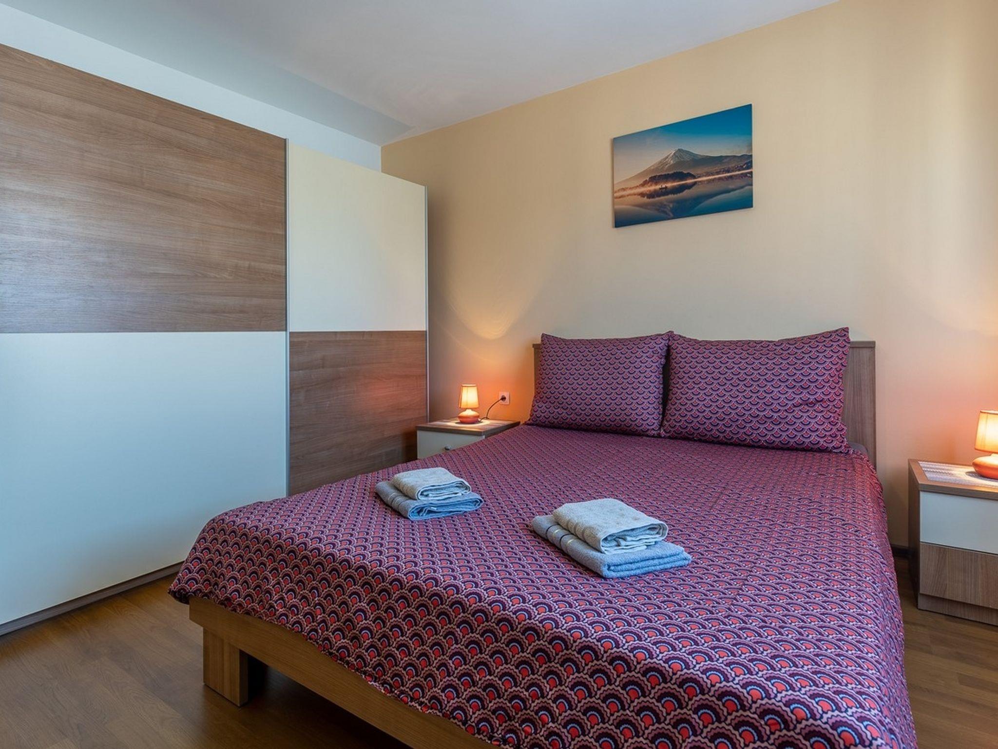 Ferienwohnung bietet Platz für 4 Gäste. Die Betten sind in Schlafzimmern, die es 2 gibt, innerhalb einer Gesamtfläche von 64m2, angeordnet. Die Gäste haben eine eigene Terrasse zur Verfügung, auf der sie in warmen Sommernächten genießen können. Für vollen Genuss und Entspannung gibt es einen privaten Grill für Gäste dieser Unterkunft. Räume der gebuchten Unterkunftseinheit werden nicht in eine Ganze verbunden. IM PREIS INBEGRIFFEN: Kurtaxe, Endreinigung, Klimatisierung, Zentralheizung, Parkplatz, Internet, Wäschewaschen, Kinderbett, Bügeleisen, Bügelbrett, Föhn, tragbarer Grill. Die Verfügbarkeit zusätzlicher Dienstleistungen in Ihrem reservierten Termin und die Preise derselben (falls nicht aufgeführt) müssen im Voraus überprüft werden. Zusätzliche Dienstleistungen die in der Zahlungsaufforderung nicht aufgeführt sind werden direkt beim Vermieter bezahlt, angenommen der Gast nutzt auch diese. Ermäßigung auf den Grundpreis: Gratistag 14=13 (bei einem Aufenthalt von 14 Tagen oder mehr erhalten Sie einen Gratistag für den Aufenthalt bis 31.12.26).
