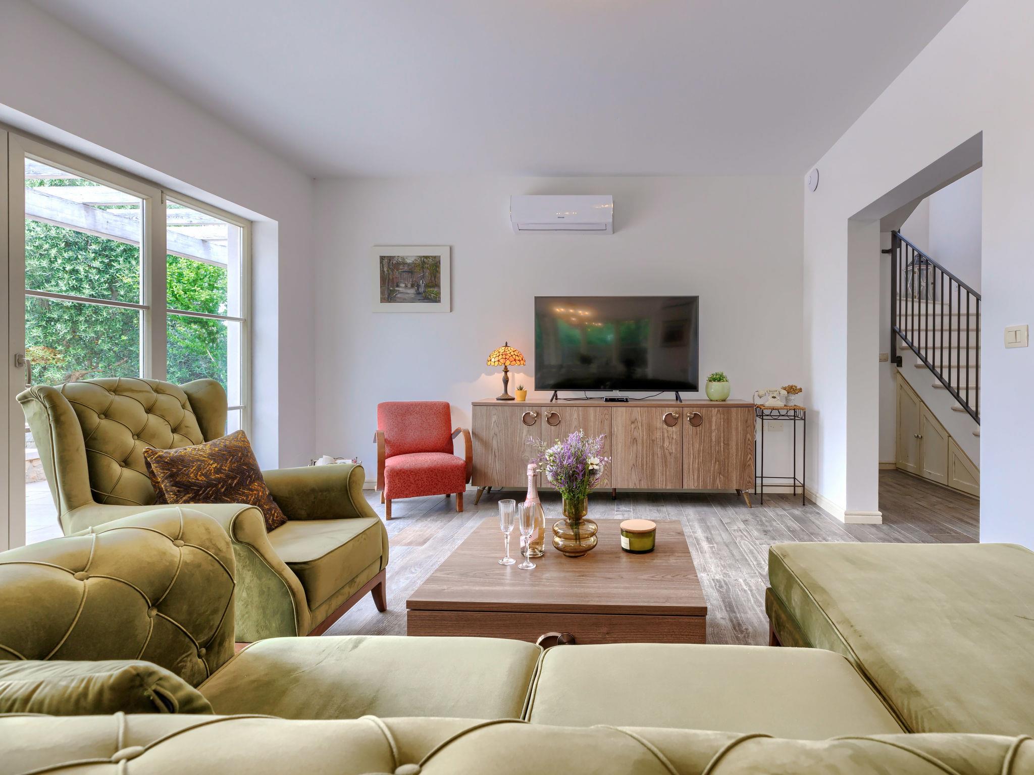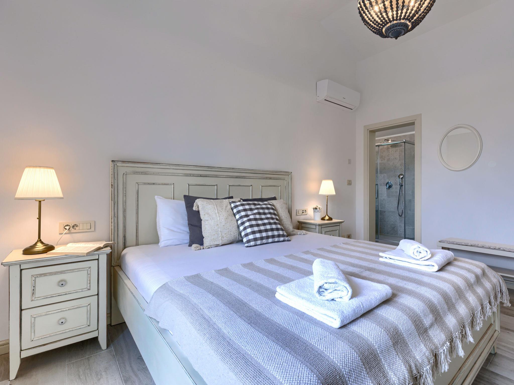 4-room villa 180 m2 on 2 levels. Very beautiful furnishings: living/dining room with satellite TV and air conditioning. Exit to the terrace, to the swimming pool. 1 room with 1 french bed (160 cm, length 200 cm), shower/WC, satellite TV and air conditioning. Exit to the garden. Open kitchen (oven, dishwasher, 6 induction hot plates, toaster, kettle, microwave, freezer, electric coffee machine). Sep. WC. Upper floor: 1 room with 1 french bed (160 cm, length 200 cm), shower/WC, satellite TV and air conditioning. 1 room with 1 french bed (160 cm, length 200 cm), bath/WC, satellite TV and air conditioning. Exit to the terrace. Forced-air heating. Terrace 50 m2, roofed, terrace 12 m2, roofed. Deck chairs. Facilities: iron, mosquito net, hair dryer. Internet (WiFi, free).