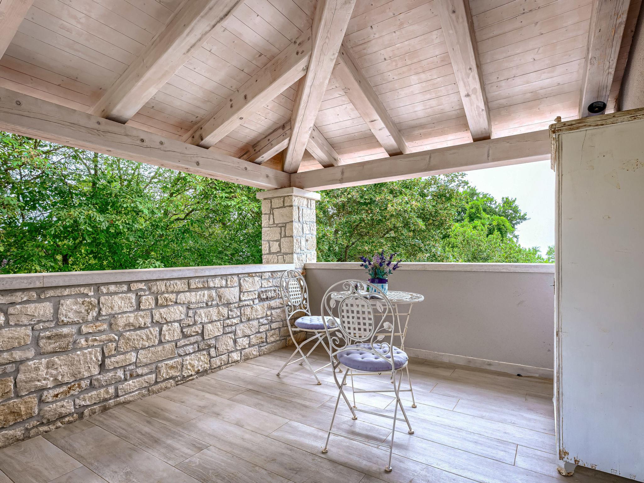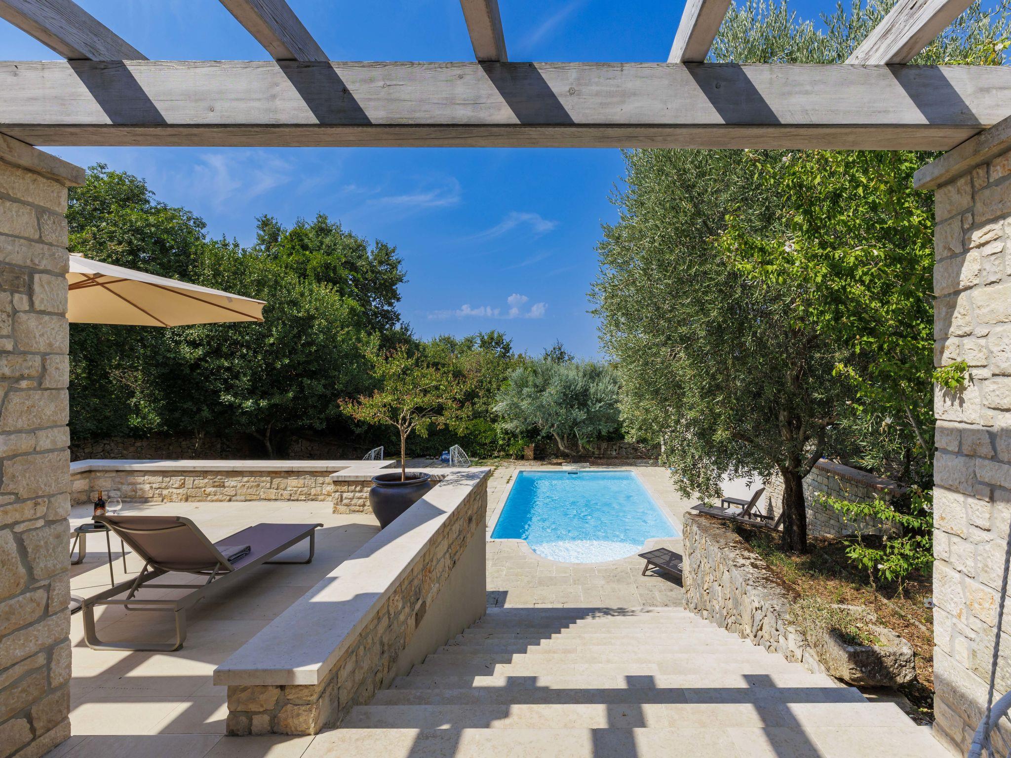 Baderna 13 km from Porec: Very beautiful villa "Ardiletta". In the hamlet Štifanici 2 km from the centre of Baderna, in a quiet position, 16 km from the sea. Pool maintenance by the owner/gardener. Private: property 900 m2 (fenced) with beautiful garden to relax, swimming pool angular (4 x 9 m, depth 150 cm, seasonal availability: 01.May. - 30.Oct.) with internal staircase. Outdoor shower, terrace, garden furniture, barbecue. In the house: internet access, washing machine. Parking (for 2 cars) at the house on the premises. Shop 2 km, restaurant 80 m, café 2 km, bus stop 2.7 km, pebble beach 16 km, rocky beach 16 km. The owner does not accept any youth groups. Please note: airfield 50 km from the property. Neighbourhood highly sensitive to noise. Quietness and good behaviour expected.