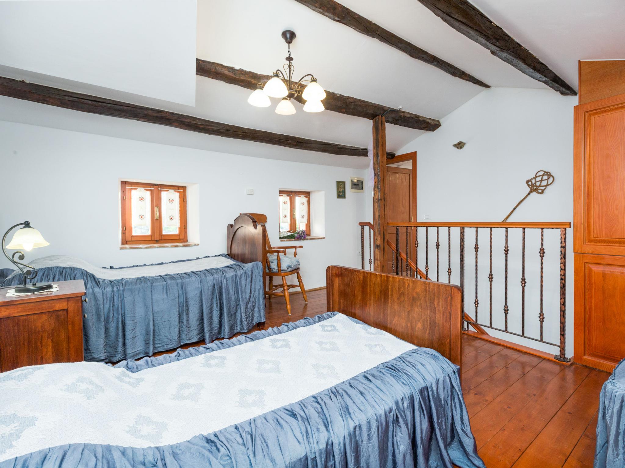 Semi-detached house "Villa Paula", 3 storeys. 4 km from the centre of Vižinada, 5 km from the centre of Višnjan, 10 km from the centre of Kaštelir, 19 km from the sea. Private: property 400 m2 (fenced) with lawn and wildlife garden, swimming pool angular (10 x 4 m, depth 130 cm, seasonal availability: 01.May. - 01.Oct.). Outdoor shower, terrace (20 m2), garden furniture, barbecue. In the house: internet access, washing machine. Parking (for 4 cars) on the premises. Shop 5 km, restaurant 50 m, bus stop 24 km, railway station 24 km, pebble beach 19 km. Marina 19 km. For privately use: tavern with dining table, kitchen (4 gas rings, dishwasher, toaster, kettle, electric coffee machine).