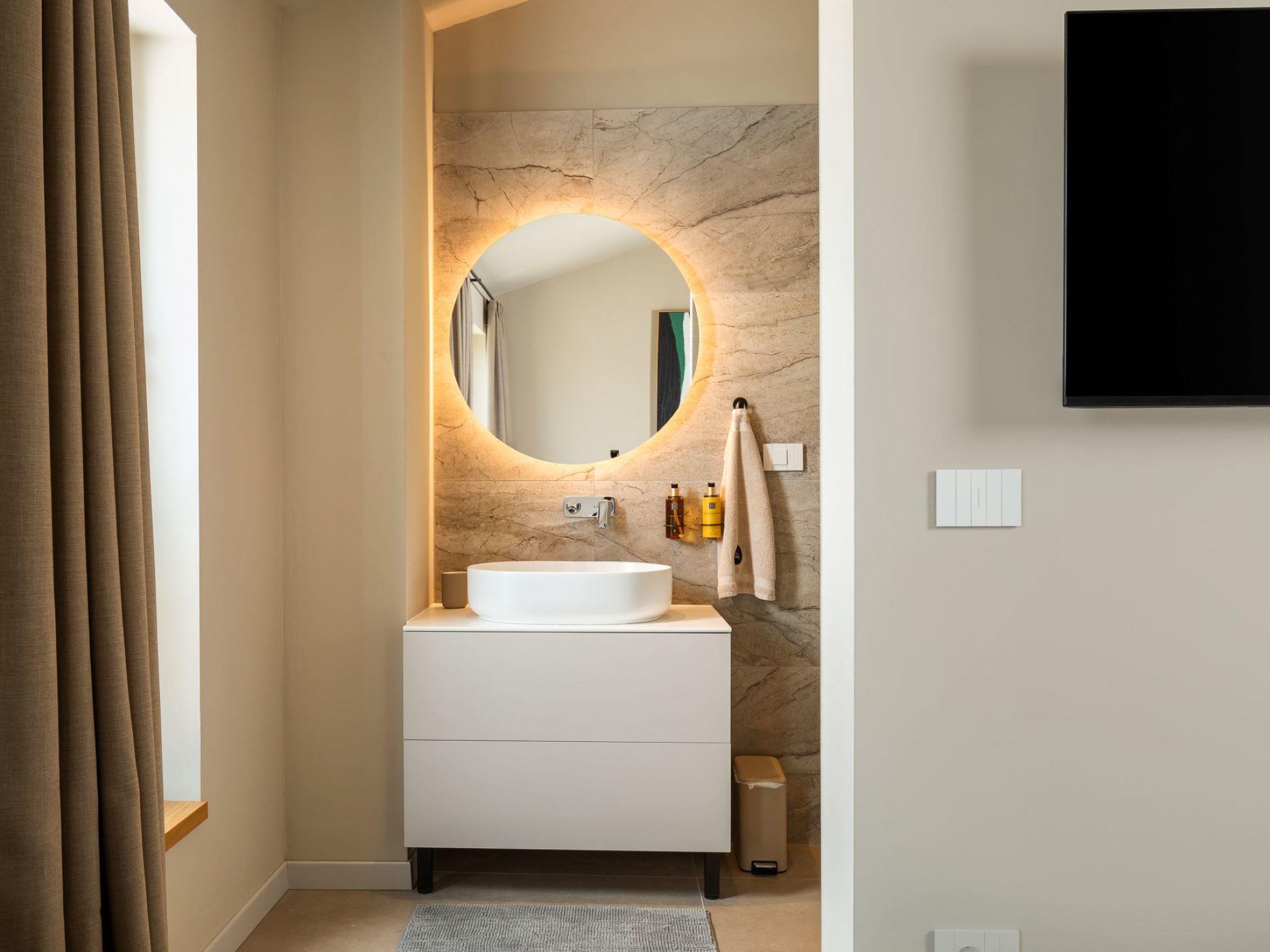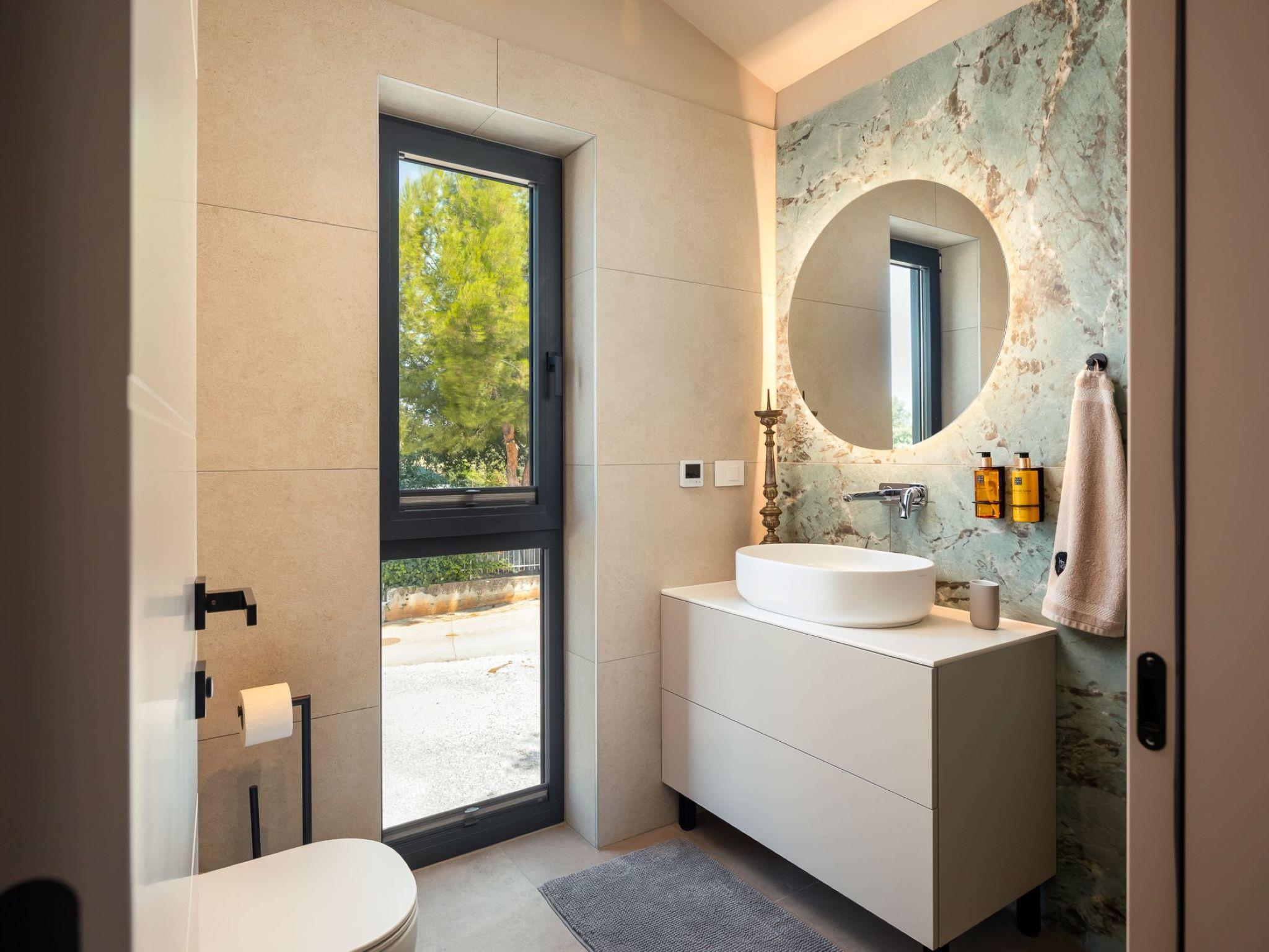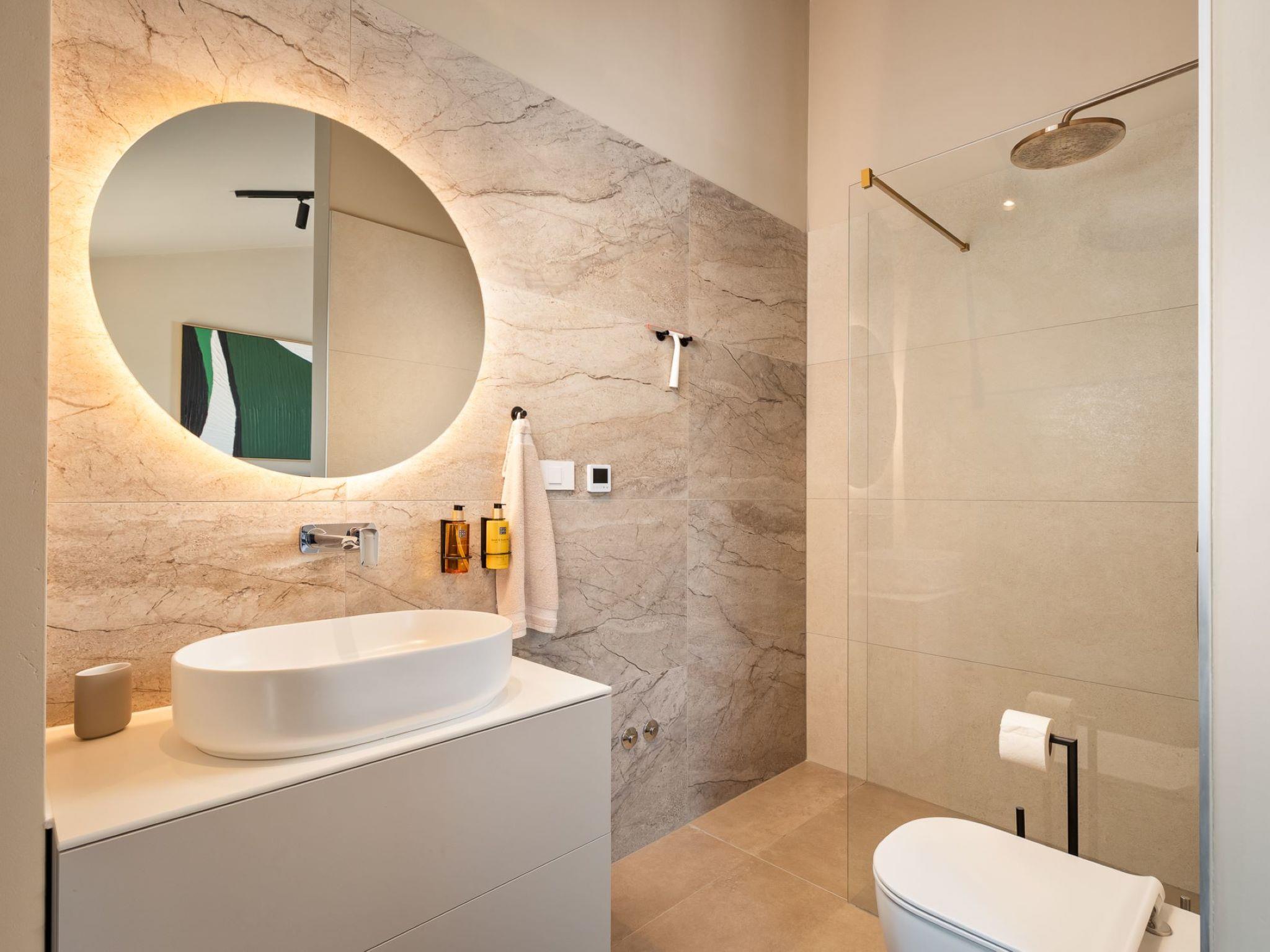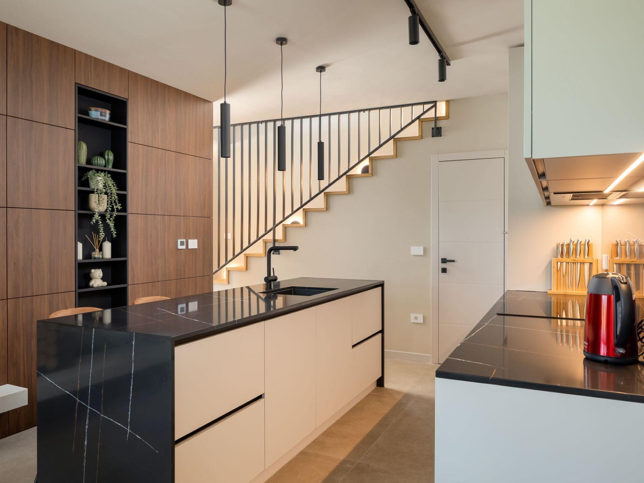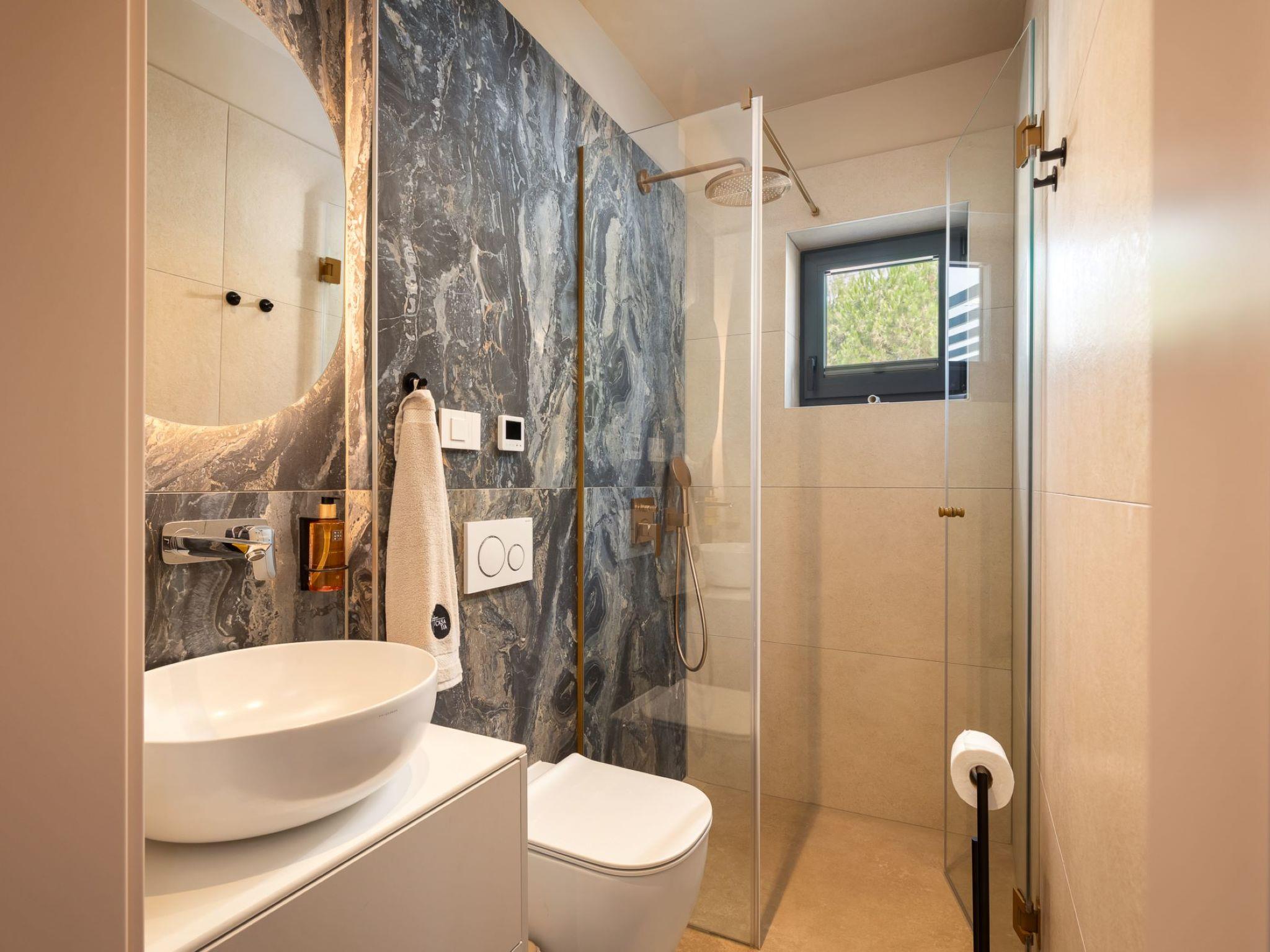 Very beautiful, cosy semi-detached house "Tia 1", 2 storeys, built in 2024. In the hamlet Mihatovici 1 km from the centre of Nova Vas, 5 km from the centre of Porec, 4.5 km from the sea, 4.5 km from the beach. Private: property 495 m2 (fenced), garden with lawn, swimming pool angular, heated (7 x 3 m, 21 m2, depth 140 cm, seasonal availability: 01.Apr. - 01.Nov.) with internal staircase and salt-electrolysis pool-cleaning system. Outdoor shower, table tennis, terrace (20 m2), garden furniture, barbecue. In the house: internet access, sauna, hot tub, washing machine. Parking (for 2 cars) at the house on the premises. E-charging station. Shop 1.5 km, shopping centre 3 km, restaurant 70 m, café 1.5 km, bus stop 2.8 km, pebble beach 4.5 km, rocky beach 4.5 km. Nearby attractions: Aquapark 9 km. Groups of teenagers on request only. Please note: airfield 46 km from the property. Swimming pool heated (extra). It is necessary to announce 7 days in advance if the pool heating is required.