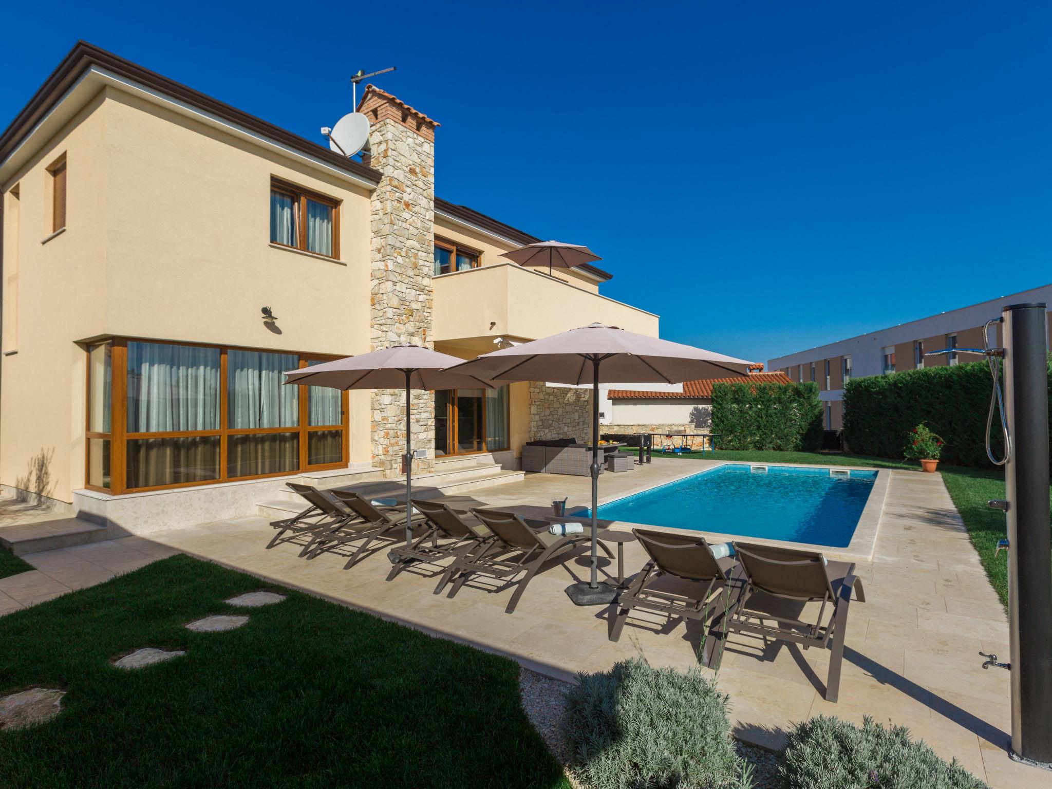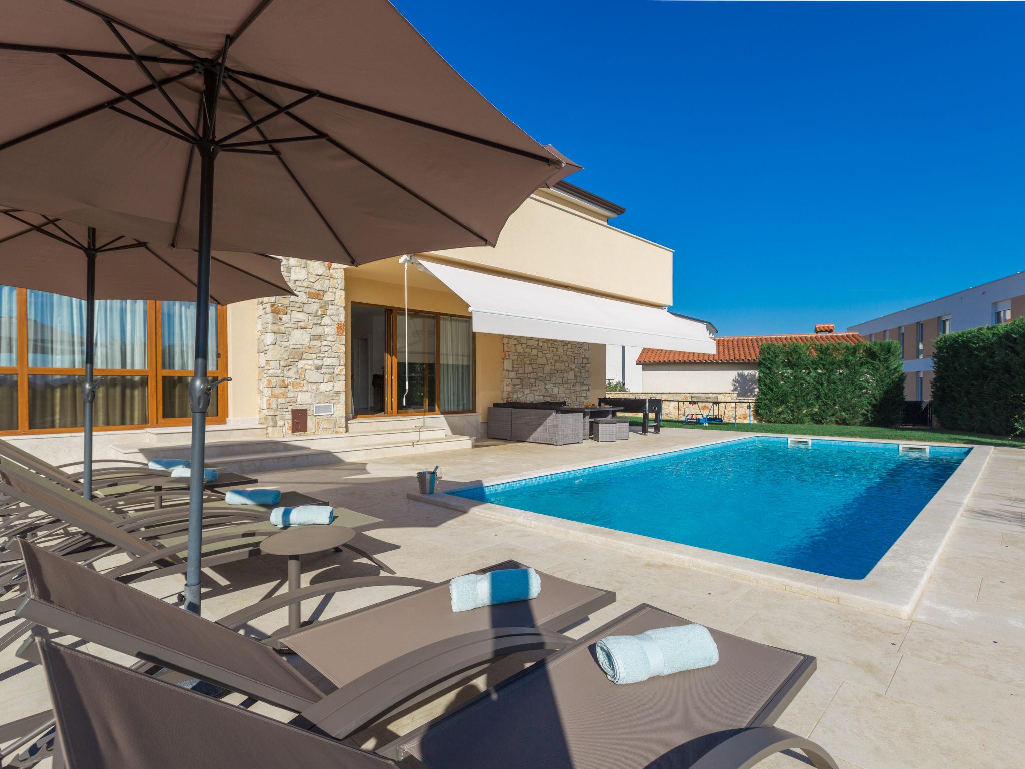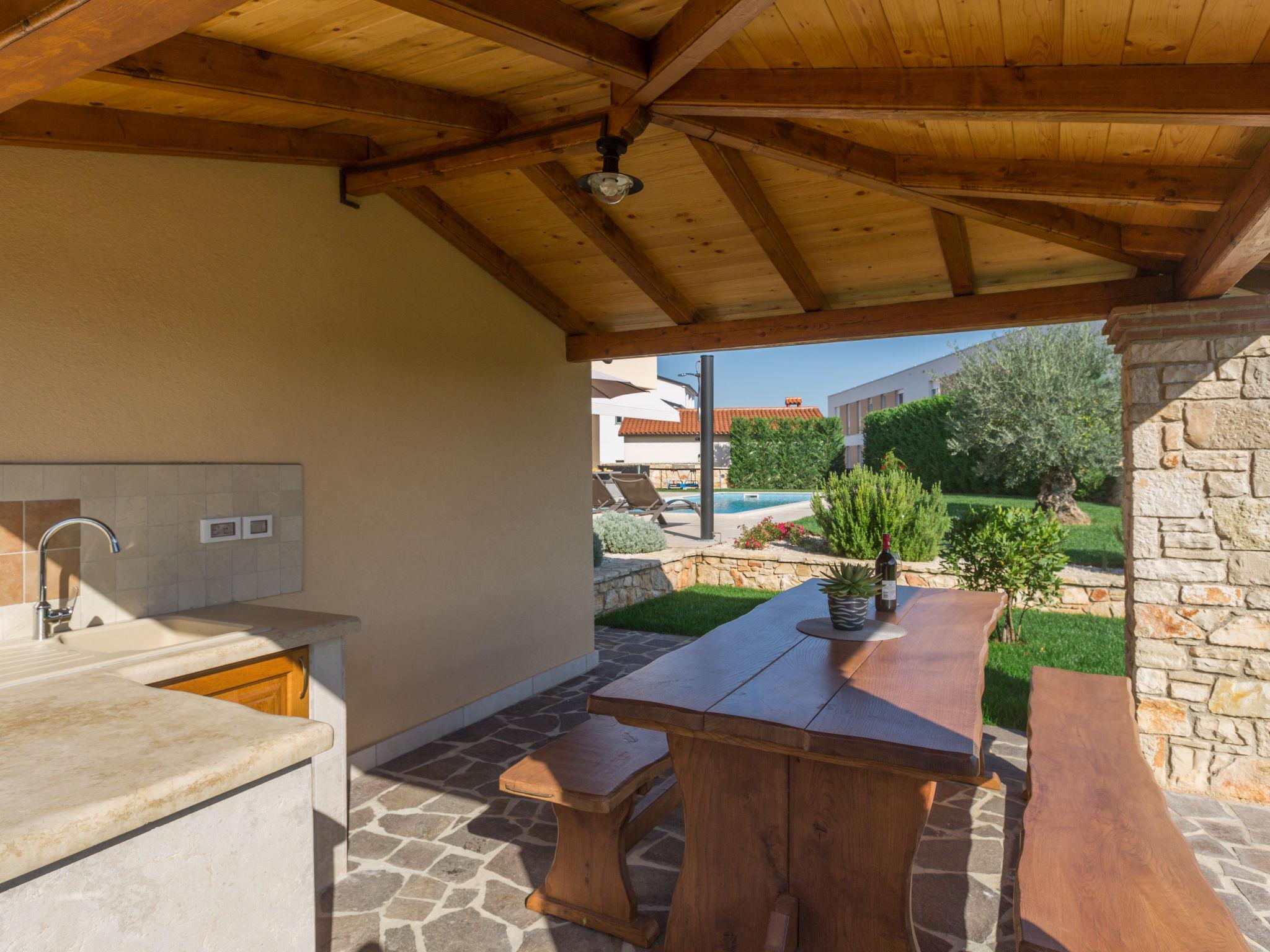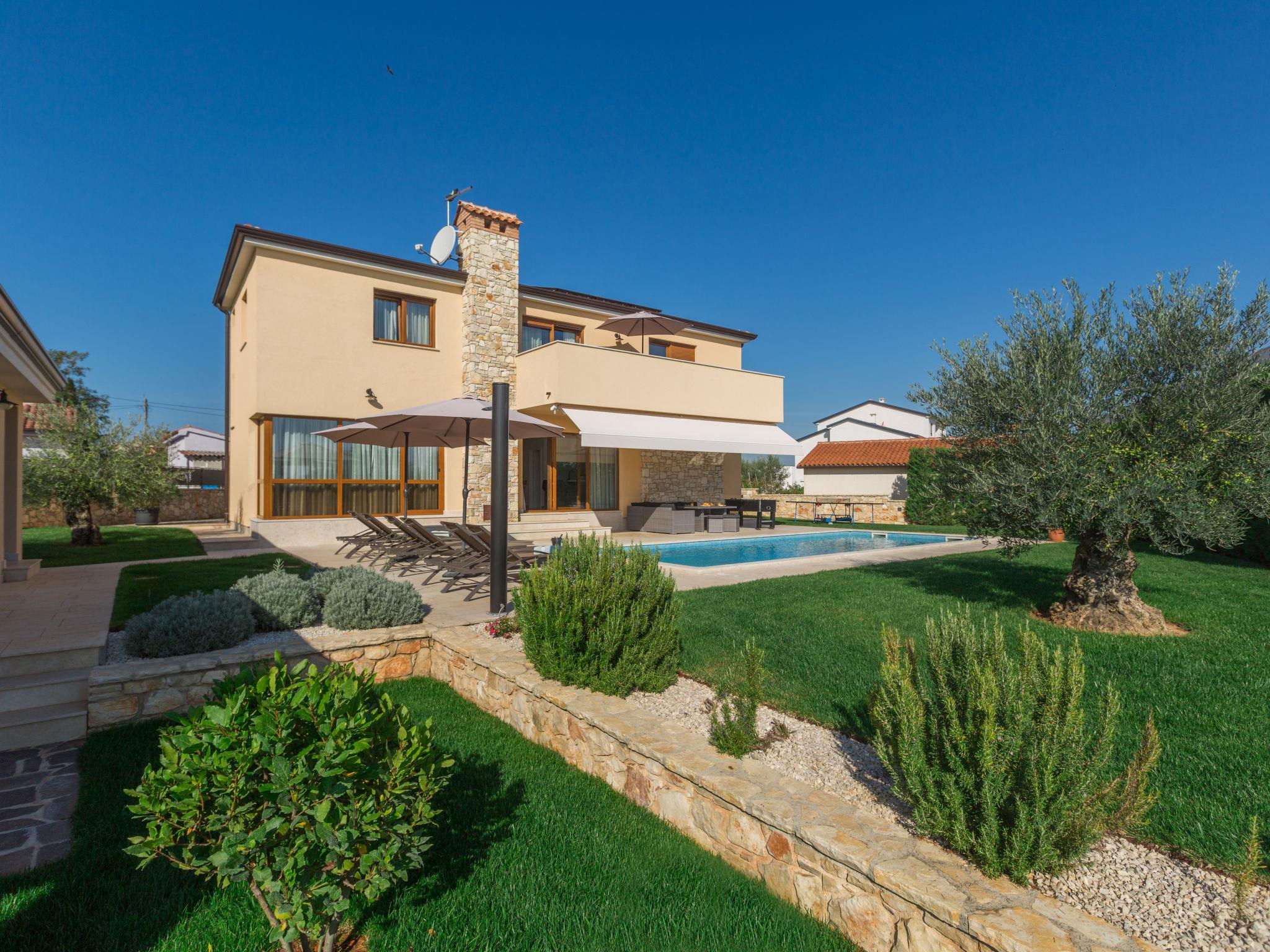Tar 7 km from Porec: Beautiful single-family house "Villa Vatovac". 300 m from the centre of Tar, in a sunny position, 3 km from the sea, 3 km from the beach. Private: property 800 m2, garden with lawn, swimming pool angular, heated (36 m2, depth 150 cm, seasonal availability: 15.Apr. - 15.Oct.) with internal staircase and salt-electrolysis pool-cleaning system. Outdoor shower, table tennis, terrace (19 m2), garden furniture. In the house: internet access, table football, washing machine, tumble dryer. Parking (for 3 cars) at the house on the premises. Shop 300 m, supermarket 1.5 km, restaurant 300 m, bus stop 600 m, pebble beach 3 km, rocky beach 3 km, public bathing area 3 km. Tennis 3 km, walking paths from the house 100 m, cycle lane 150 m. Nearby attractions: Adrenaline Park 5 km. Please note: suitable for families. The owner does not accept any youth groups. Neighbourhood highly sensitive to noise. Quietness and good behaviour expected. Swimming pool heated (extra).