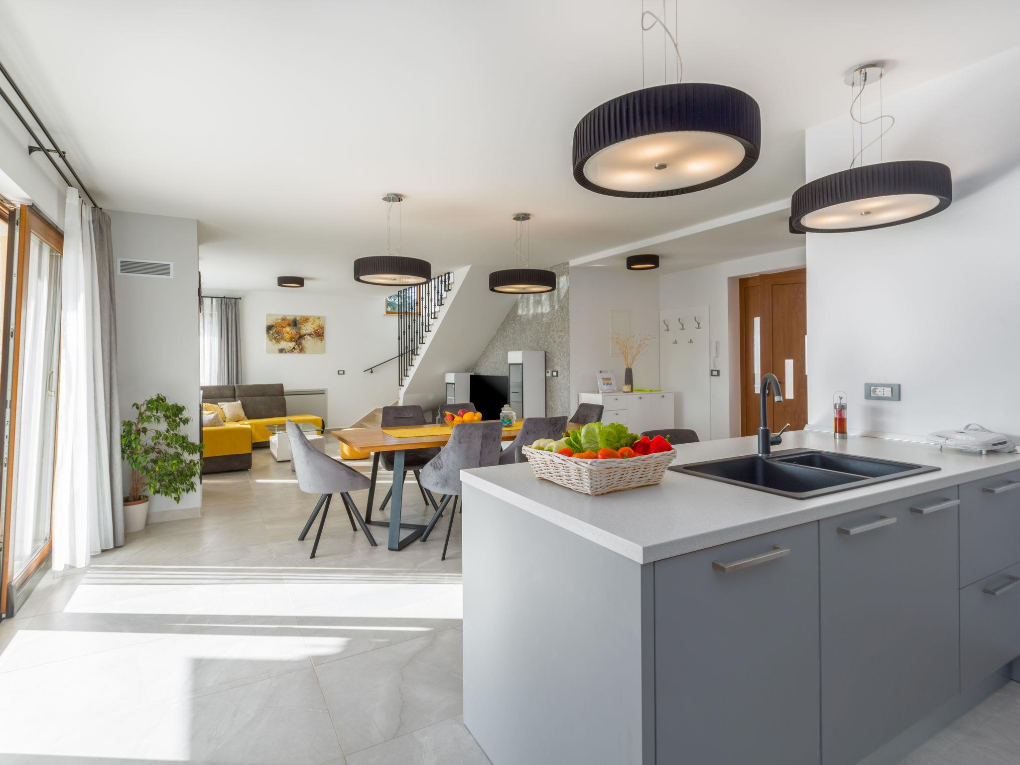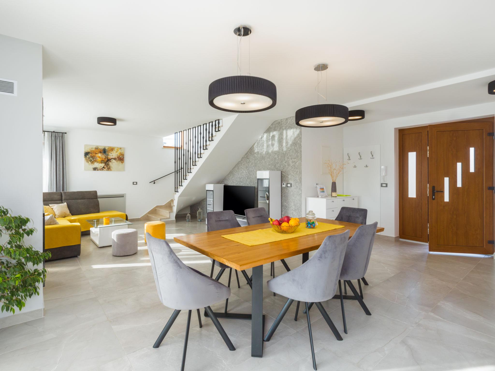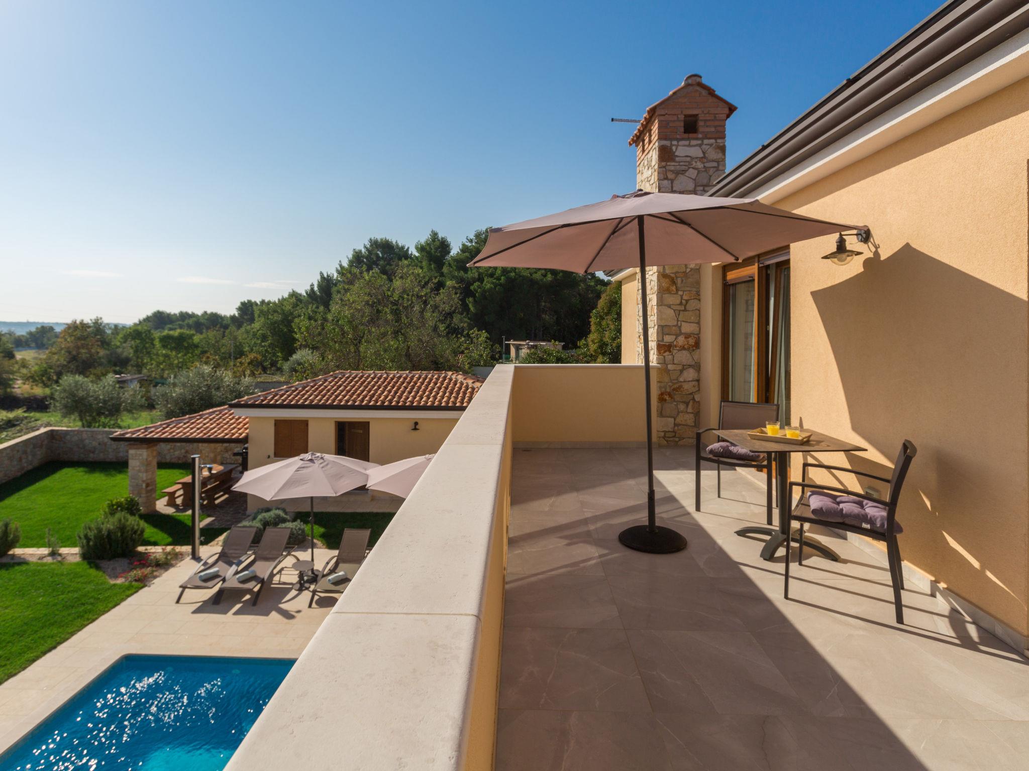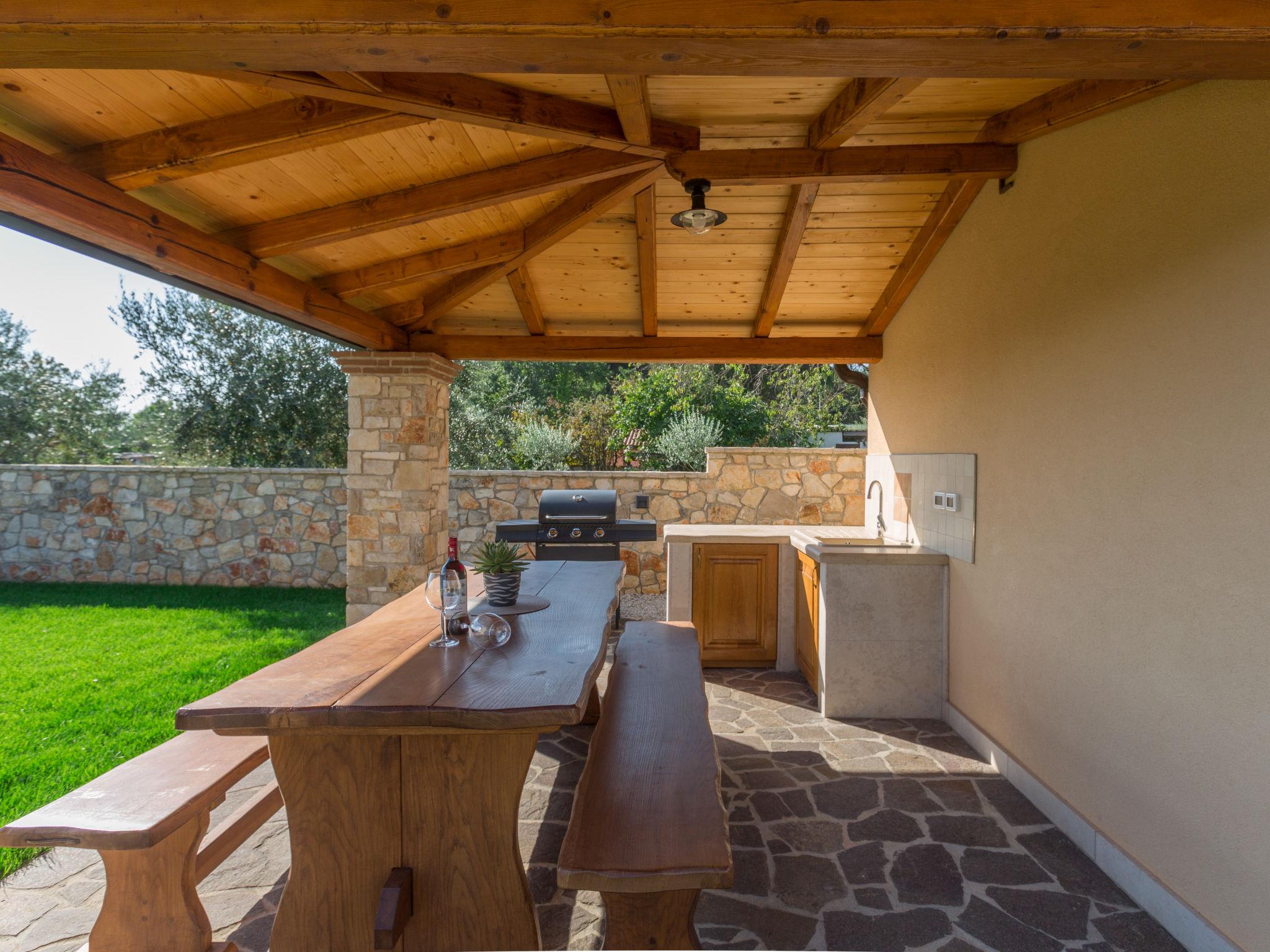 Tar 7 km from Porec: Beautiful single-family house "Villa Vatovac". 300 m from the centre of Tar, in a sunny position, 3 km from the sea, 3 km from the beach. Private: property 800 m2, garden with lawn, swimming pool angular, heated (36 m2, depth 150 cm, seasonal availability: 15.Apr. - 15.Oct.) with internal staircase and salt-electrolysis pool-cleaning system. Outdoor shower, table tennis, terrace (19 m2), garden furniture. In the house: internet access, table football, washing machine, tumble dryer. Parking (for 3 cars) at the house on the premises. Shop 300 m, supermarket 1.5 km, restaurant 300 m, bus stop 600 m, pebble beach 3 km, rocky beach 3 km, public bathing area 3 km. Tennis 3 km, walking paths from the house 100 m, cycle lane 150 m. Nearby attractions: Adrenaline Park 5 km. Please note: suitable for families. The owner does not accept any youth groups. Neighbourhood highly sensitive to noise. Quietness and good behaviour expected. Swimming pool heated (extra).