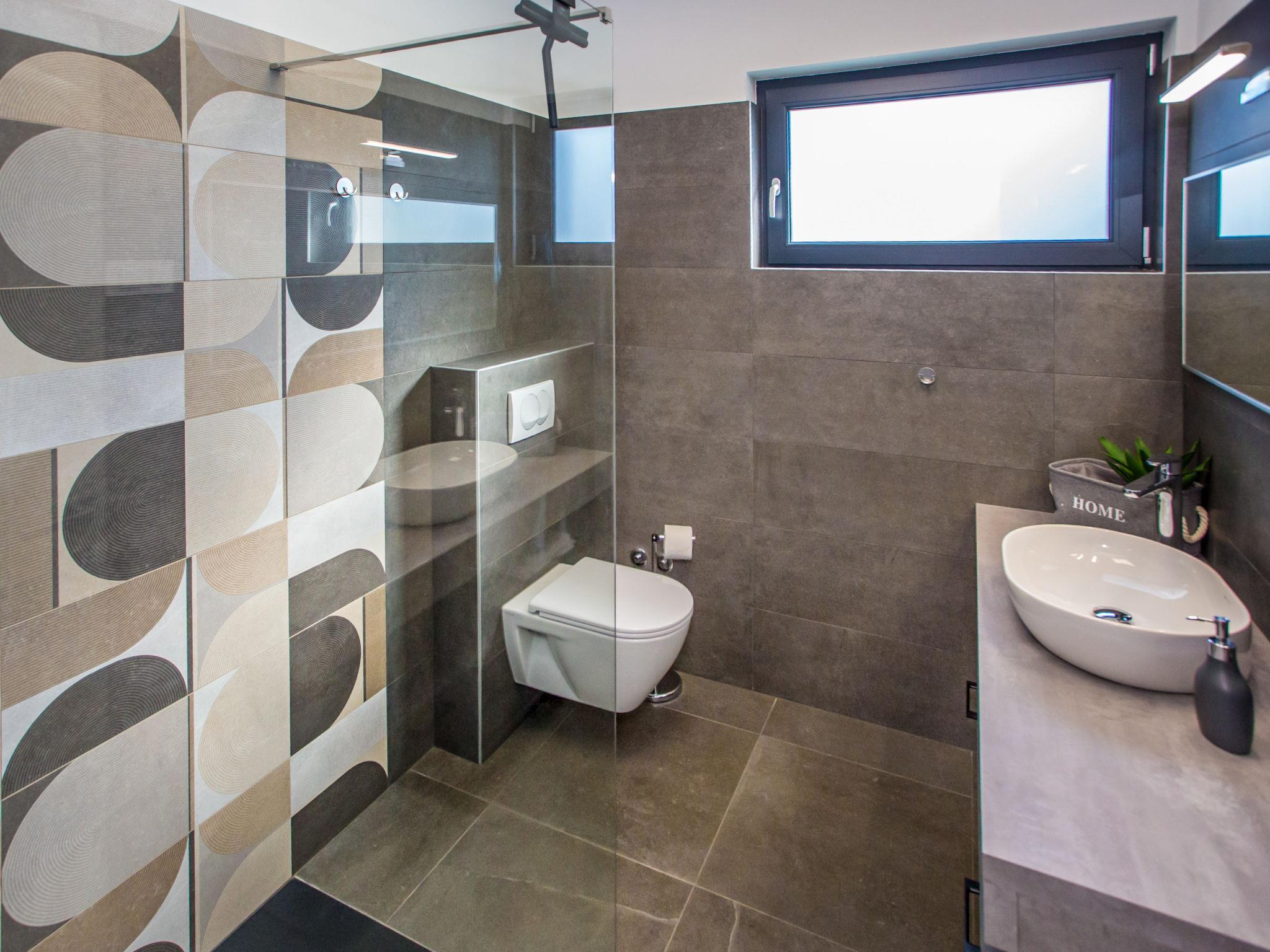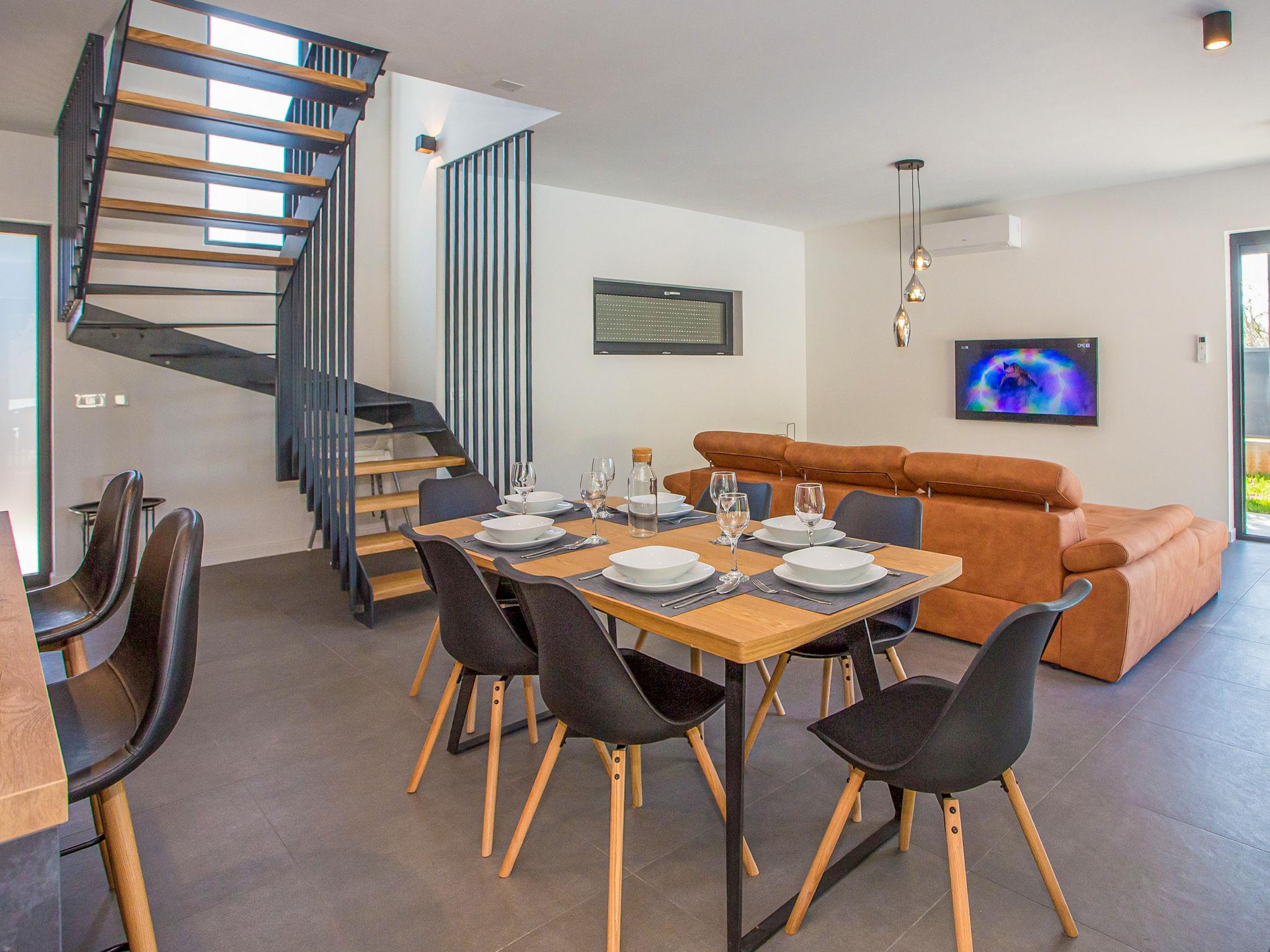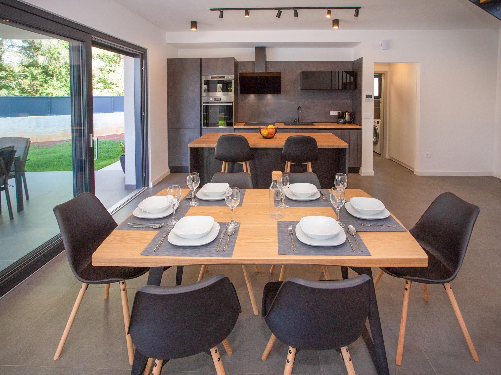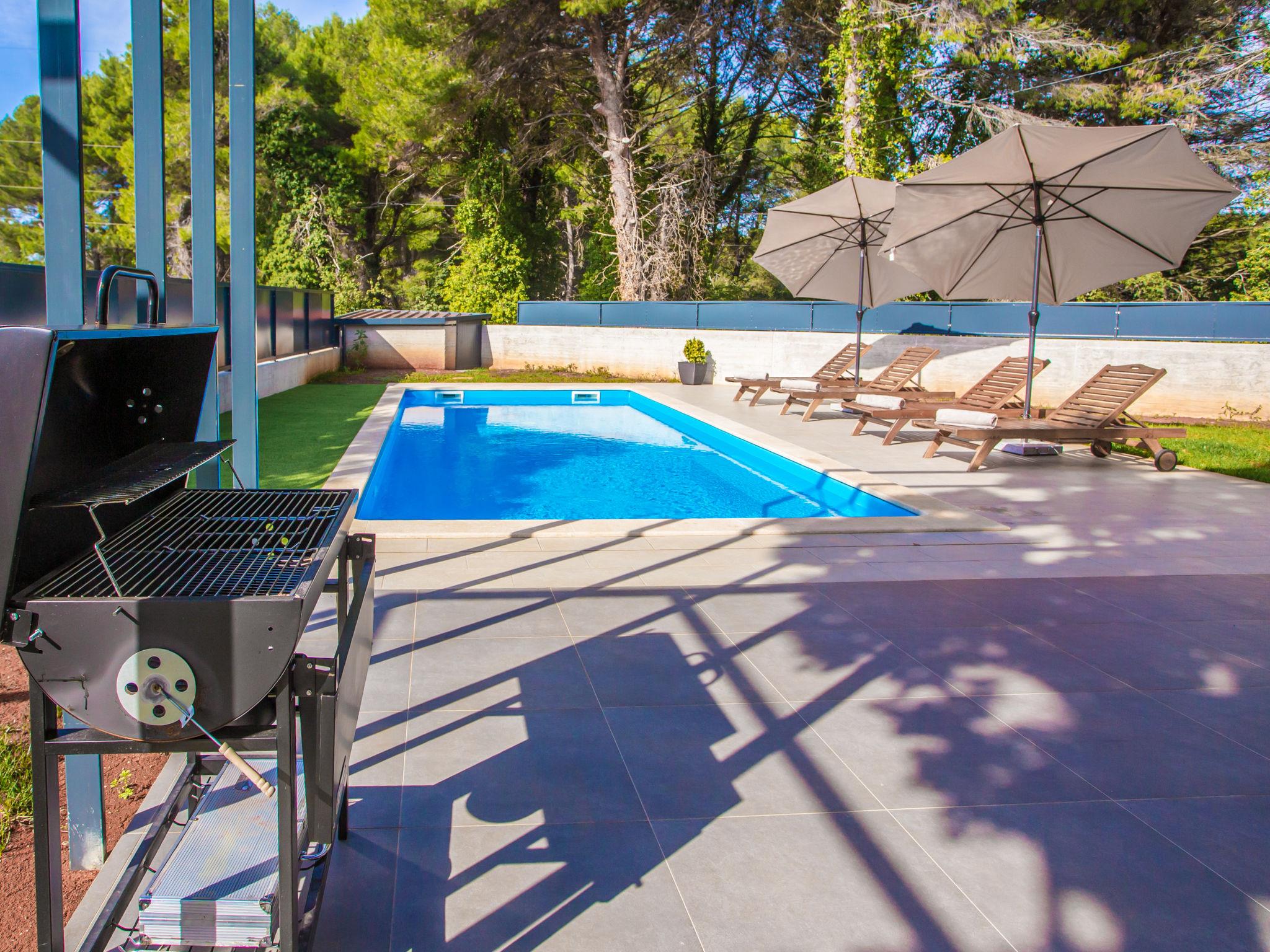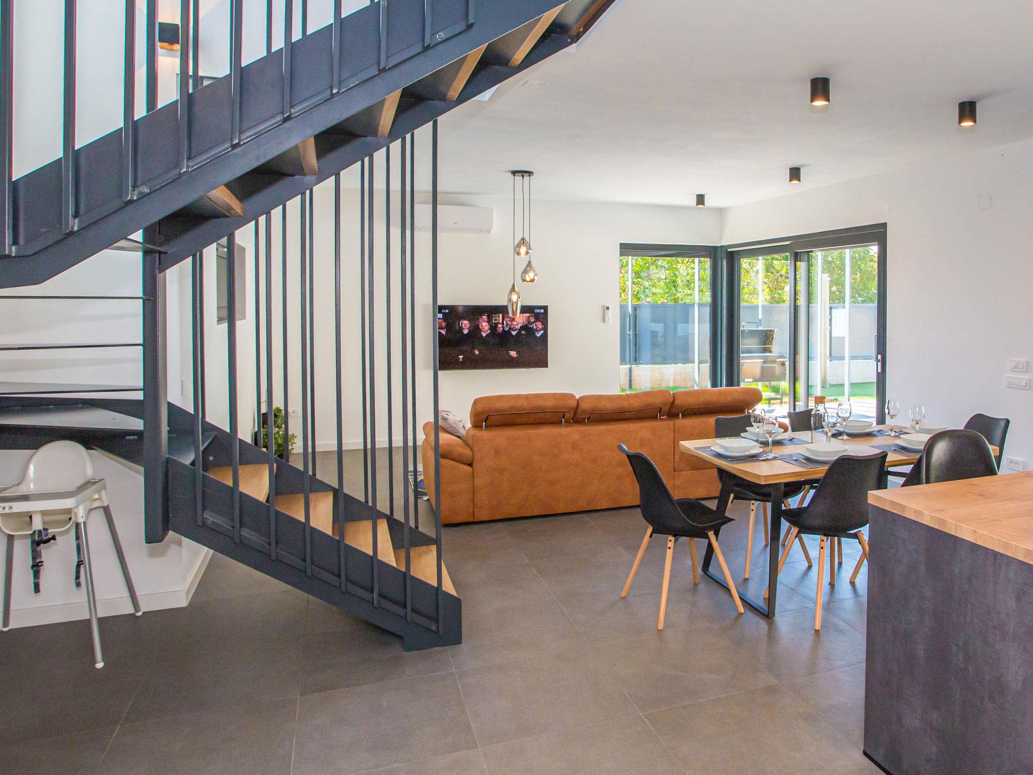 Modern villa "Villa Eva Tar", 2 storeys, built in 2024. 1 km from the centre of Tar, 8 km from the centre of Porec, in a quiet, sunny position, 3 km from the sea, 4 km from the beach. Private: property 600 m2 (fenced) with lawn, swimming pool angular, heated (34 m2, depth 140 cm, seasonal availability: 15.Apr. - 15.Oct.) with internal staircase. Outdoor shower, terrace (6 m2), barbecue, pool maintenance by the owner/gardener. In the house: internet access. Parking on the premises. Shop 1 km, restaurant 800 m, bus stop 8 m, railway station 38 m, pebble beach 4.5 km, rocky beach 4 km. Golf course (18 hole) 40 km, tennis 3 km.