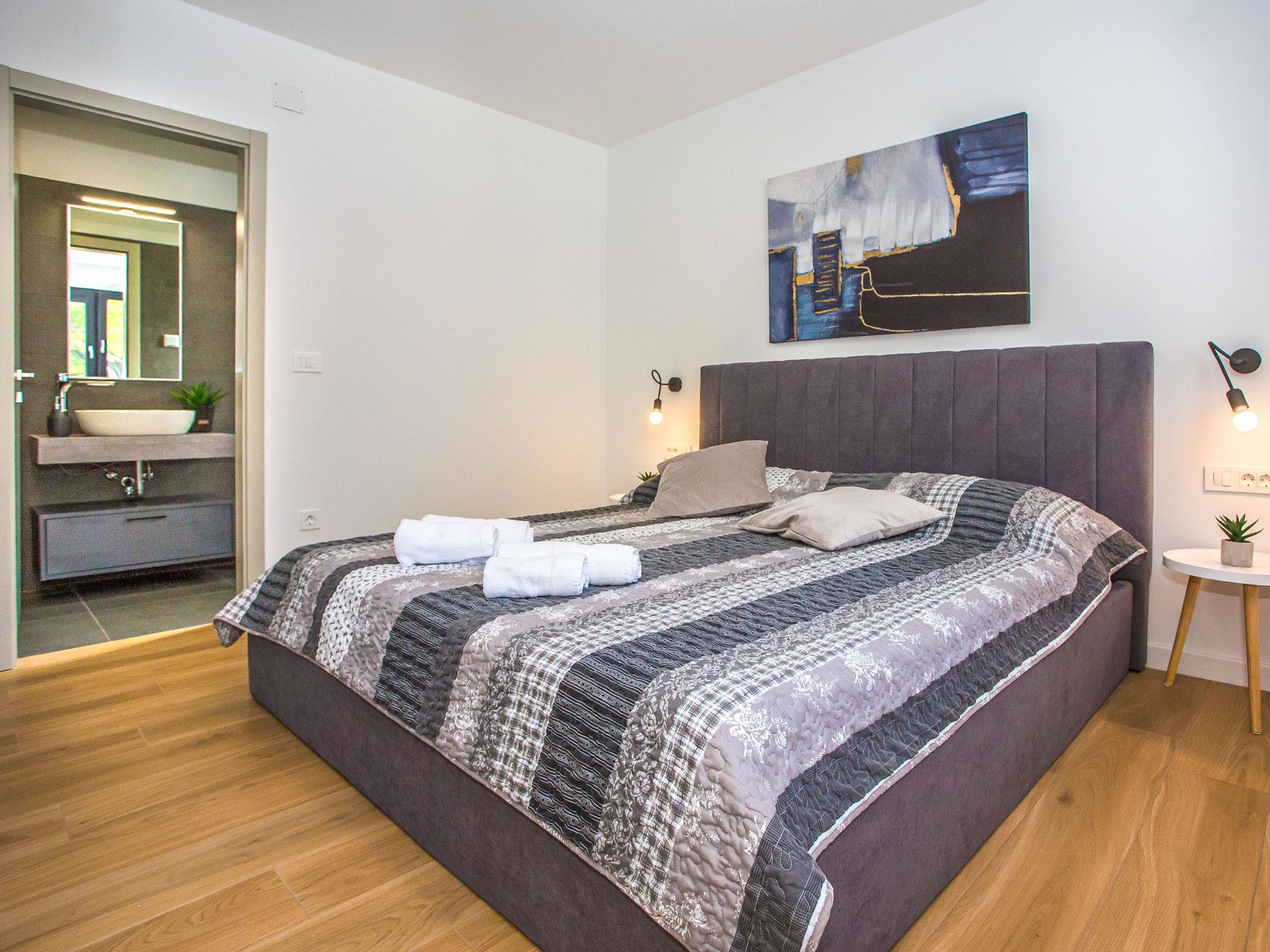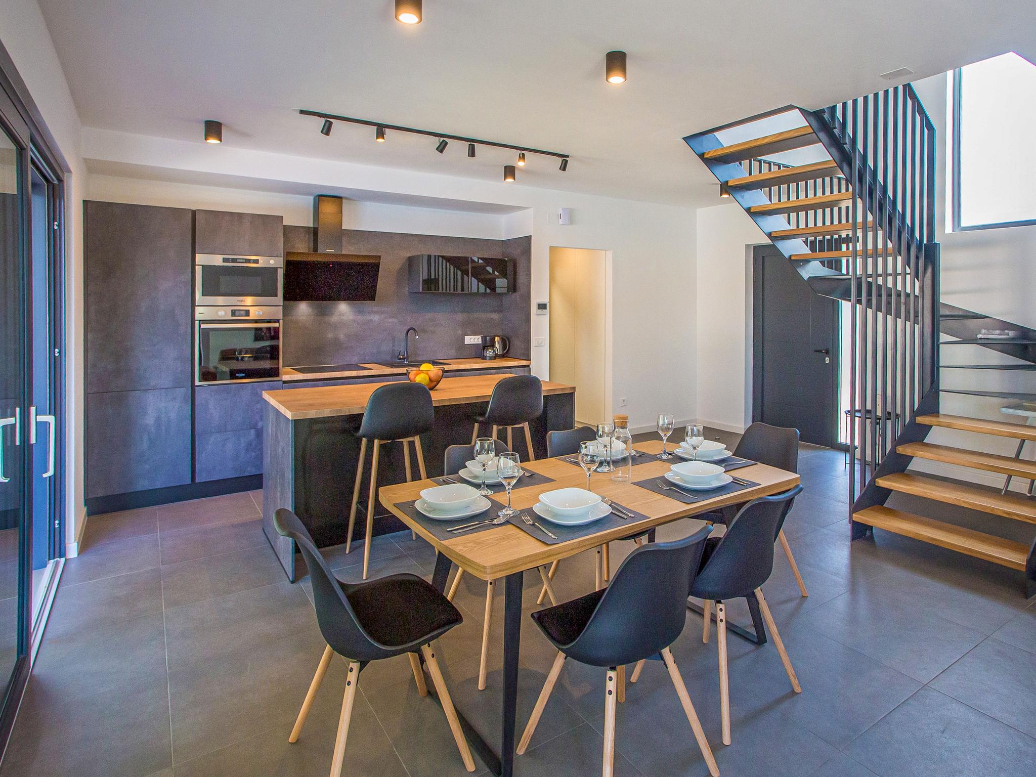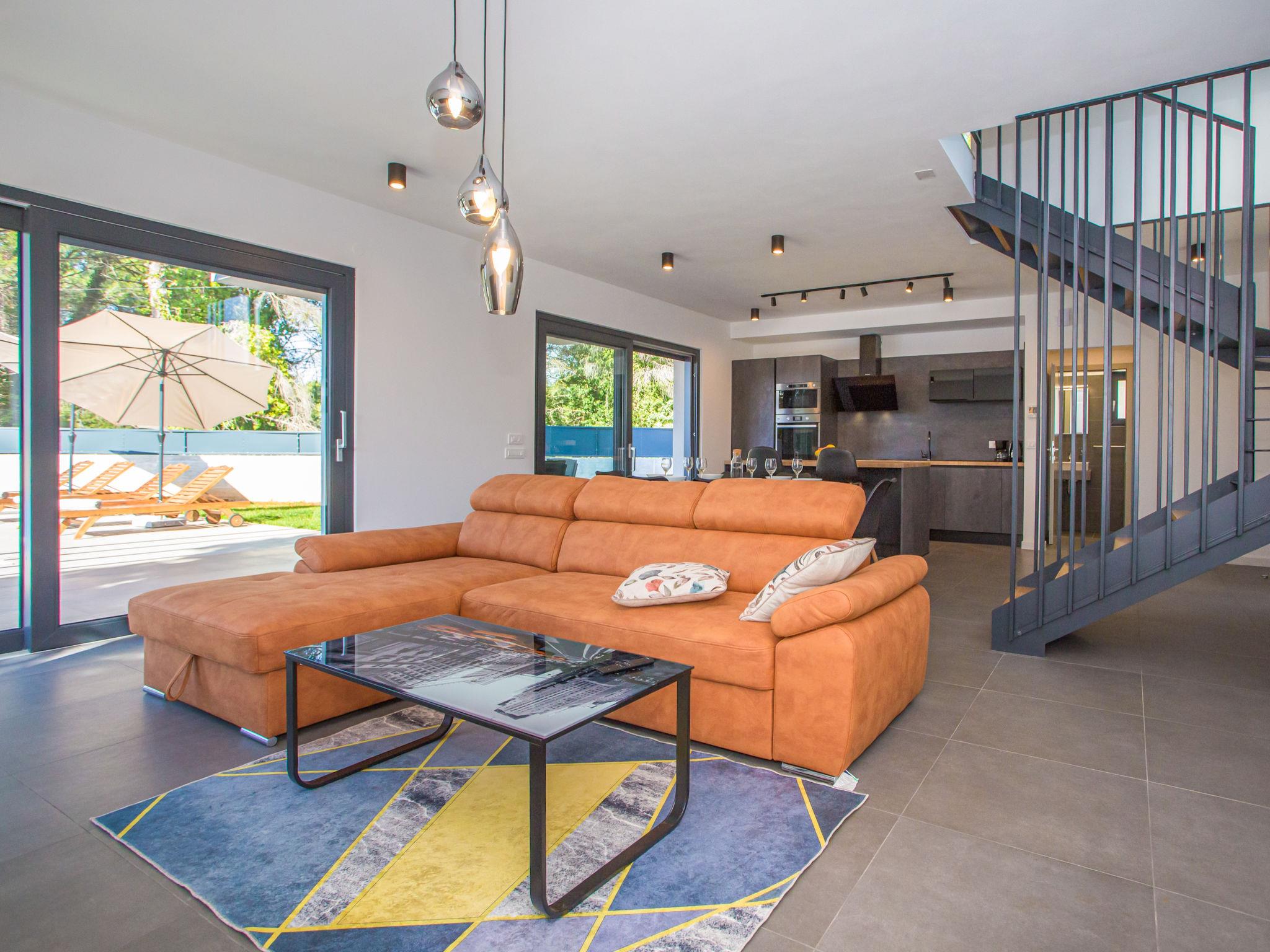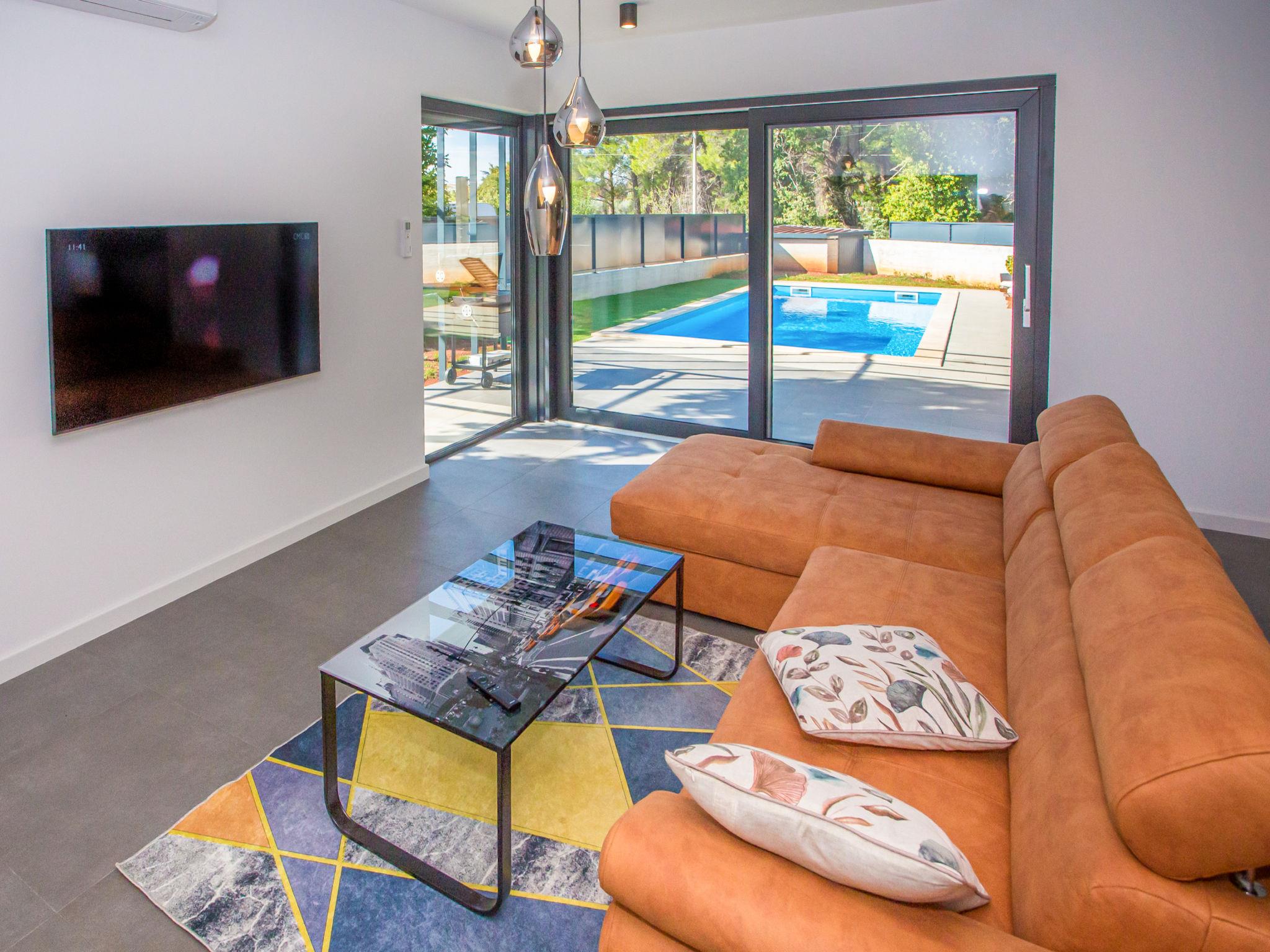 Modern villa "Villa Eva Tar", 2 storeys, built in 2024. 1 km from the centre of Tar, 8 km from the centre of Porec, in a quiet, sunny position, 3 km from the sea, 4 km from the beach. Private: property 600 m2 (fenced) with lawn, swimming pool angular, heated (34 m2, depth 140 cm, seasonal availability: 15.Apr. - 15.Oct.) with internal staircase. Outdoor shower, terrace (6 m2), barbecue, pool maintenance by the owner/gardener. In the house: internet access. Parking on the premises. Shop 1 km, restaurant 800 m, bus stop 8 m, railway station 38 m, pebble beach 4.5 km, rocky beach 4 km. Golf course (18 hole) 40 km, tennis 3 km.