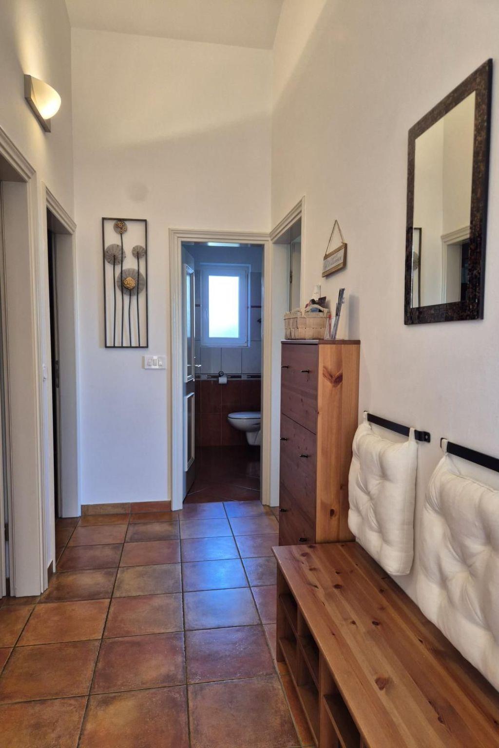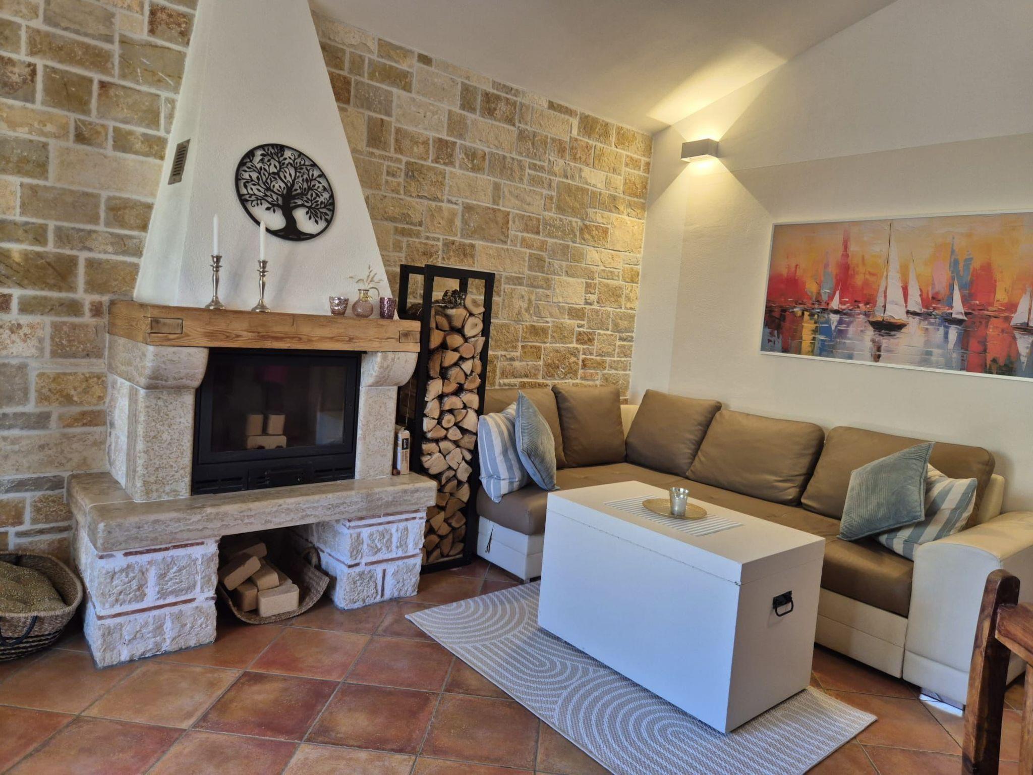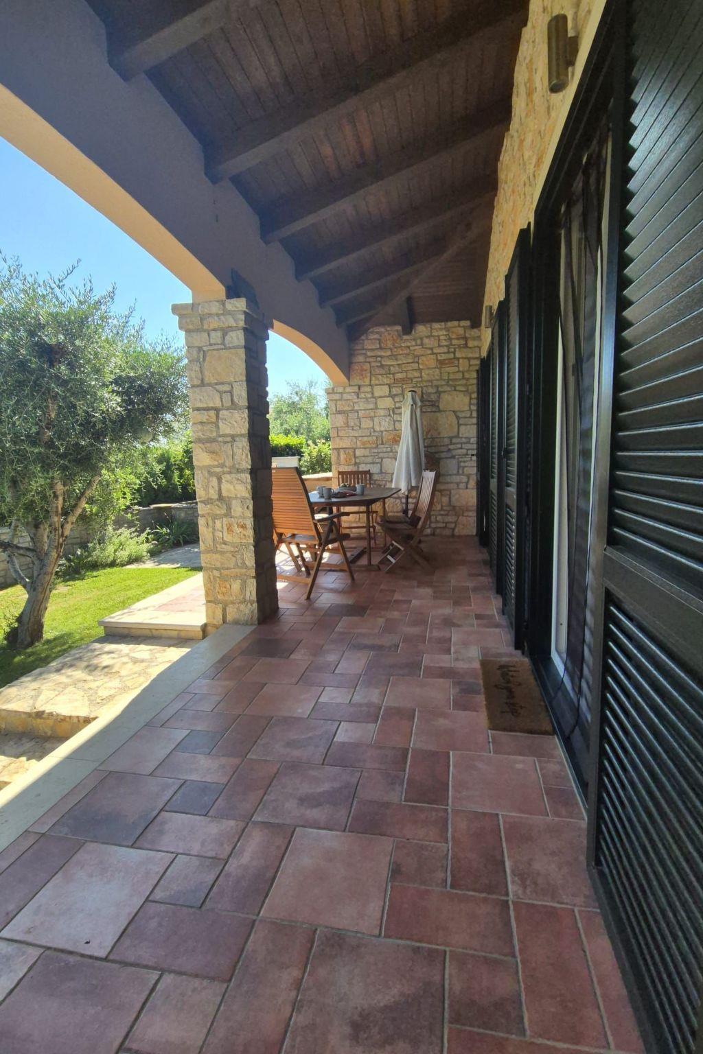 The natural stone house is in a very quiet location in a picturesque village, surrounded by olive trees. From the terrace you have a beautiful view of the sea, four kilometres away.