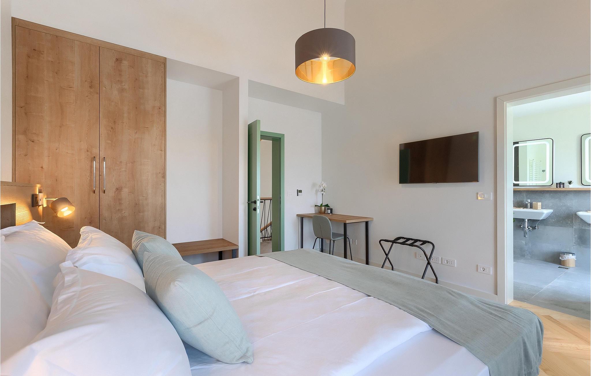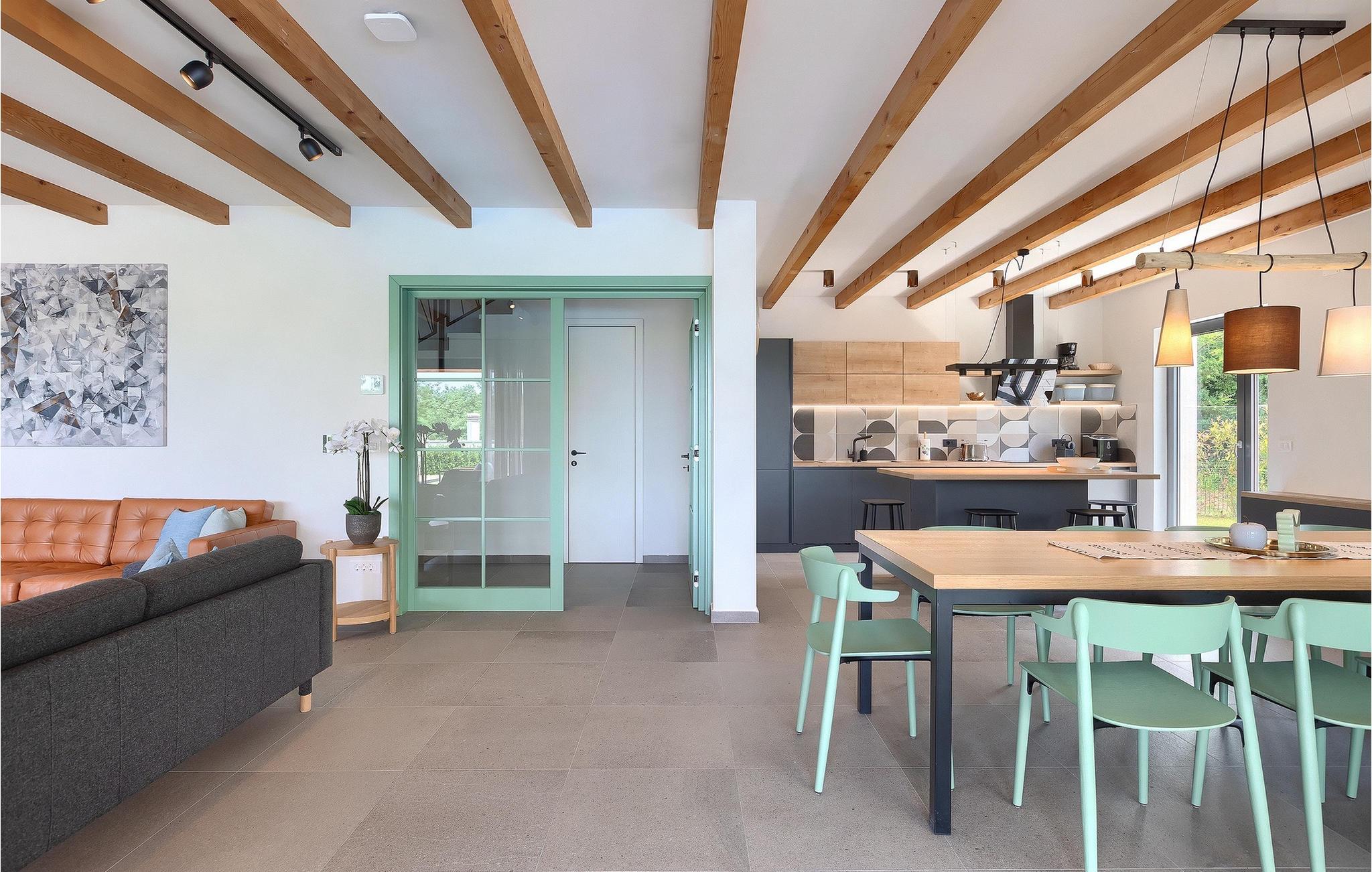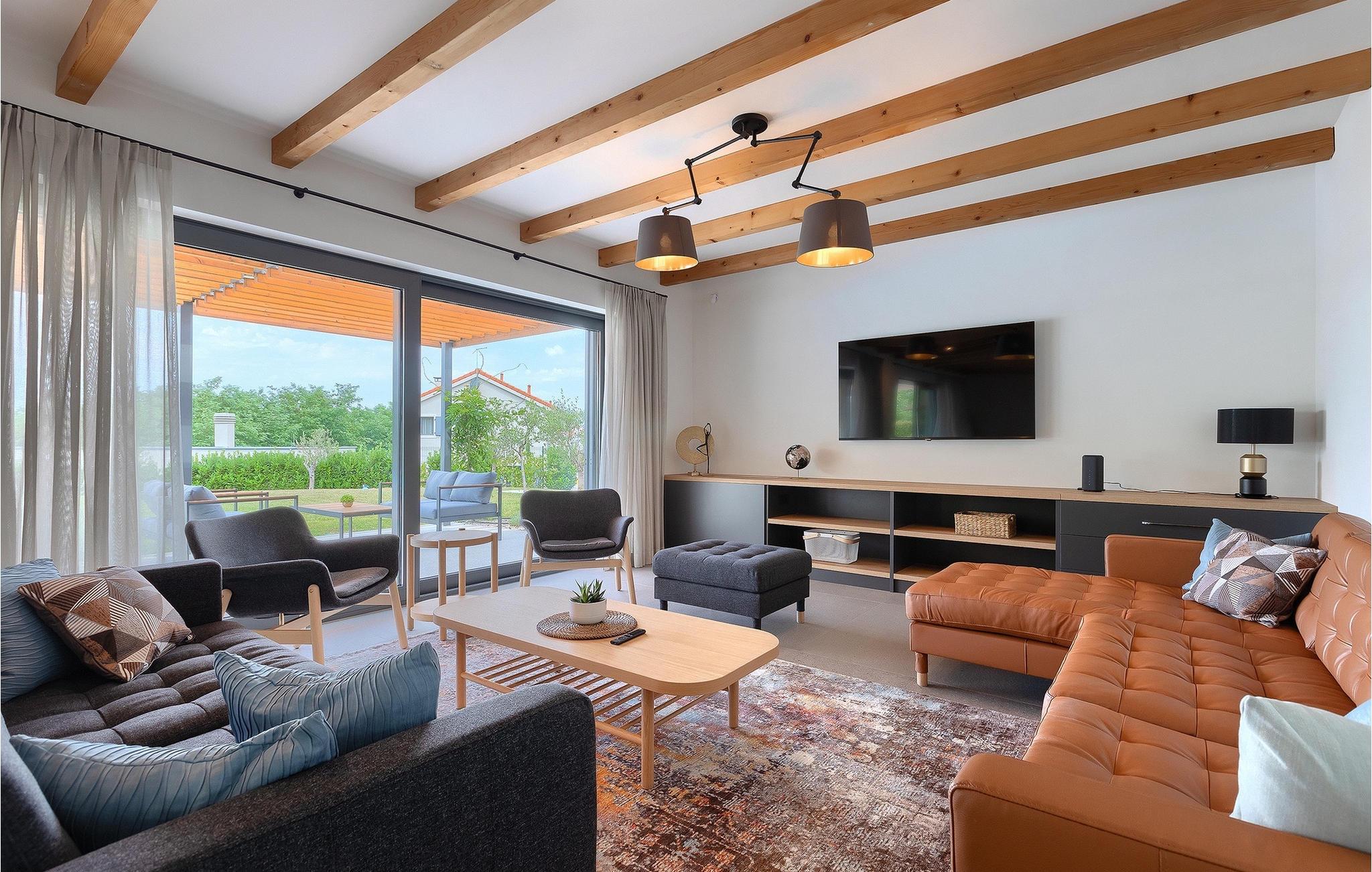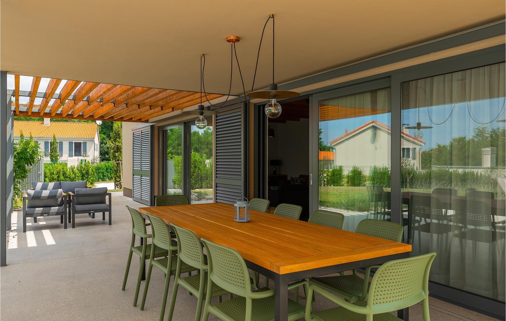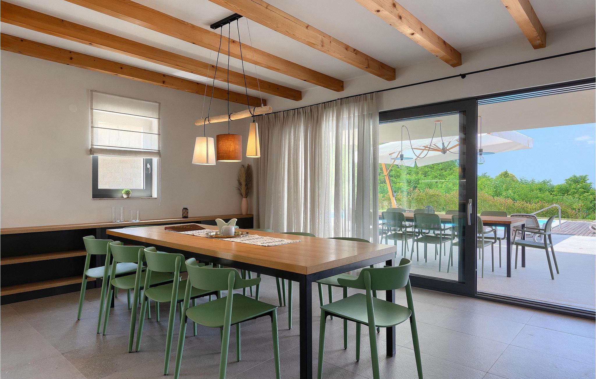 Die Villa Pinca ist von grünen Bäumen und Natur umgeben, die mit ihrer großen Gartenwiese eine idyllische Atmosphäre zum Entspannen schaffen. Der private Pool erfrischt Sie nach einem Sonnenbad auf einer der 8 Sonnenliegen. Während Sie am Pool entspannen, können die Kinder im Garten toben, auf dem privaten Spielplatz spielen oder eine Partie Tischtennis spielen. In einem schattigen Bereich befindet sich direkt neben dem Spielplatz eine Außenküche mit Grill. Ein Esstisch für bis zu 10 Gäste eignet sich perfekt für eine Mahlzeit im Schatten direkt am Pool. Im Inneren finden Sie ein großes Wohnzimmer mit 2 Sofas, das von Tageslicht durchflutet ist und sich perfekt für Filmabende und Gespräche eignet. Im gleichen Raum können Sie in der Küche mit Kücheninsel ein köstliches Essen zubereiten und es am Esstisch für bis zu 10 Personen neben einem großen Fenster genießen. Im Obergeschoss befinden sich 3 komfortable Doppelzimmer mit Fernseher und eigenem Bad. Ein weiteres separates Doppelzimmer steht in einem Pavillon im Garten zur Verfügung. Dieses Schlafzimmer verfügt auch über einen eigenen Fernseher und ein Badezimmer. Villa Pinca ist wirklich die perfekte Wahl für einen Sommerurlaub mit der Familie. Die Villa Pinca befindet sich im Dorf Vizinada in der Nähe von Porec. Nur 30 Minuten entfernt können Sie die antike Stadt Porec besuchen, wo Sie den Mittelpunkt der Stadt besichtigen können, die bemerkenswerte Euphrasius-Basilika, die zum UNESCO-Weltkulturerbe gehört und für ihre faszinierenden byzantinischen Mosaike bekannt ist. Machen Sie einen Spaziergang entlang der lebhaften Uferpromenade, wo bunte Boote und die Adria einen atemberaubenden Ausblick bieten. Ein weiterer nahe gelegener Ort ist Umag. Die Landschaft ist bekannt für ihre Weinberge und Olivenhaine, Wiesen und Wälder. Wir empfehlen einen Besuch in den Weinkellern der Familie und die Verkostung der berühmten istrischen Köstlichkeiten: Pasta mit Trüffeln, Prosciutto und Käse, alles mit einem Glas des berühmten istrischen Malvasia. In den charmanten, gepflasterten Straßen der Stadt gibt es zahlreiche ausgezeichnete Restaurants, Bars und Cafés. Hier können Sie Istriens Höhlen, wunderschöne grüne Natur, idyllische Hügel und kulturelle Sehenswürdigkeiten wie Kirchen, Kapellen und archäologische Stätten erleben. In der Nähe befindet sich der erste kroatische Wasserpark in Istralandia, wo Sie mit Ihren Lieben Wasseraktivitäten genießen können.