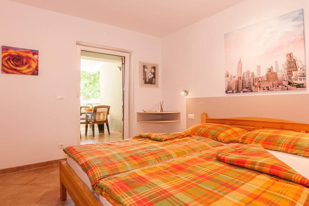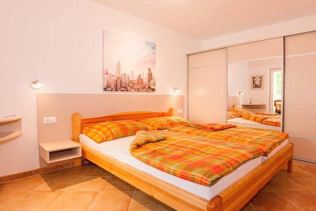 The Mozart apartment in Villa Symphonie in Porec offers our guests an exclusive apartment in a prime location in Porec with state-of-the-art furnishings. In addition to high-quality ceramic floors, you'll find a dishwasher and washing machine, an LED TV, and indoor Wi-Fi. The large, well-maintained garden features additional seating areas and an Istrian fireplace grill, from which you can also enjoy sea views and stunning sunsets over Porec.
