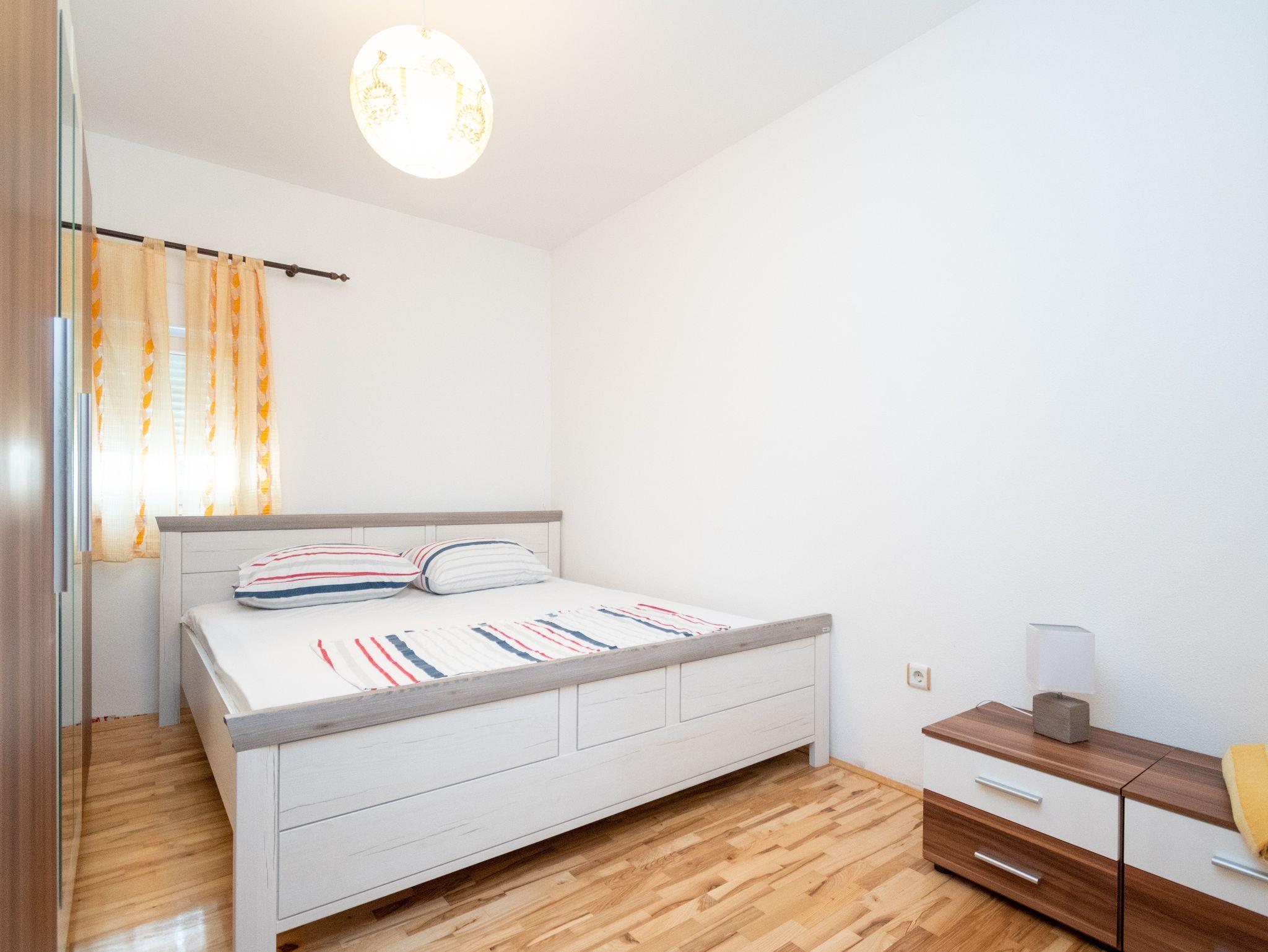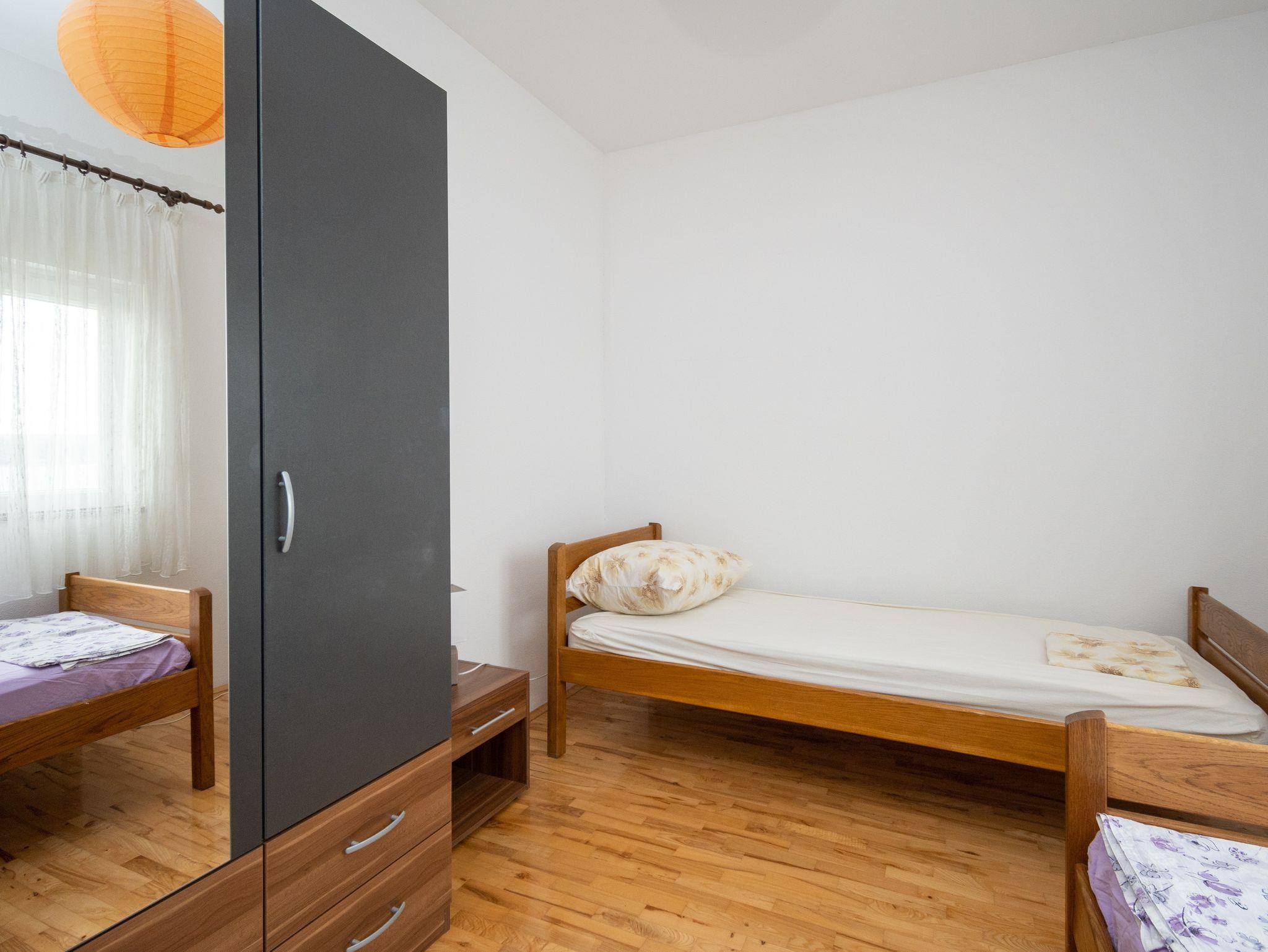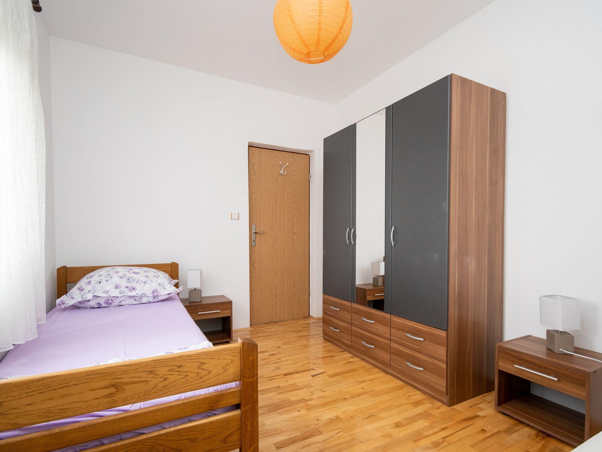 Ferienwohnung bietet Platz für 5 Gäste. Die Betten sind in Schlafzimmern, die es 2 gibt, und in Wohnzimmer, innerhalb einer Gesamtfläche von 62m2, angeordnet. Die Gäste haben einen eigenen Balkon zur Verfügung, auf der sie in warmen Sommernächten genießen können. Das Apartment bietet Meerblick. Es ist erlaubt, Speisen auf dem Gemeinschafts-Grill vorzubereiten. IM PREIS INBEGRIFFEN: Kurtaxe, Endreinigung, Klimatisierung, Parkplatz, Internet. VERBINDLICHE ZUSÄTZLICHE KOSTEN: Aufzahlung für Kurzaufenthalte (prozentualer Zuschlag pro Nächtigungsanzahl: 30% - 1, 20% - 2, 10% - 3). Die Verfügbarkeit zusätzlicher Dienstleistungen in Ihrem reservierten Termin und die Preise derselben (falls nicht aufgeführt) müssen im Voraus überprüft werden. Zusätzliche Dienstleistungen die in der Zahlungsaufforderung nicht aufgeführt sind werden direkt beim Vermieter bezahlt, angenommen der Gast nutzt auch diese. Ermäßigung auf den Grundpreis: Gratistag 14=13 (bei einem Aufenthalt von 14 Tagen oder mehr erhalten Sie einen Gratistag für den Aufenthalt bis 31.12.26).