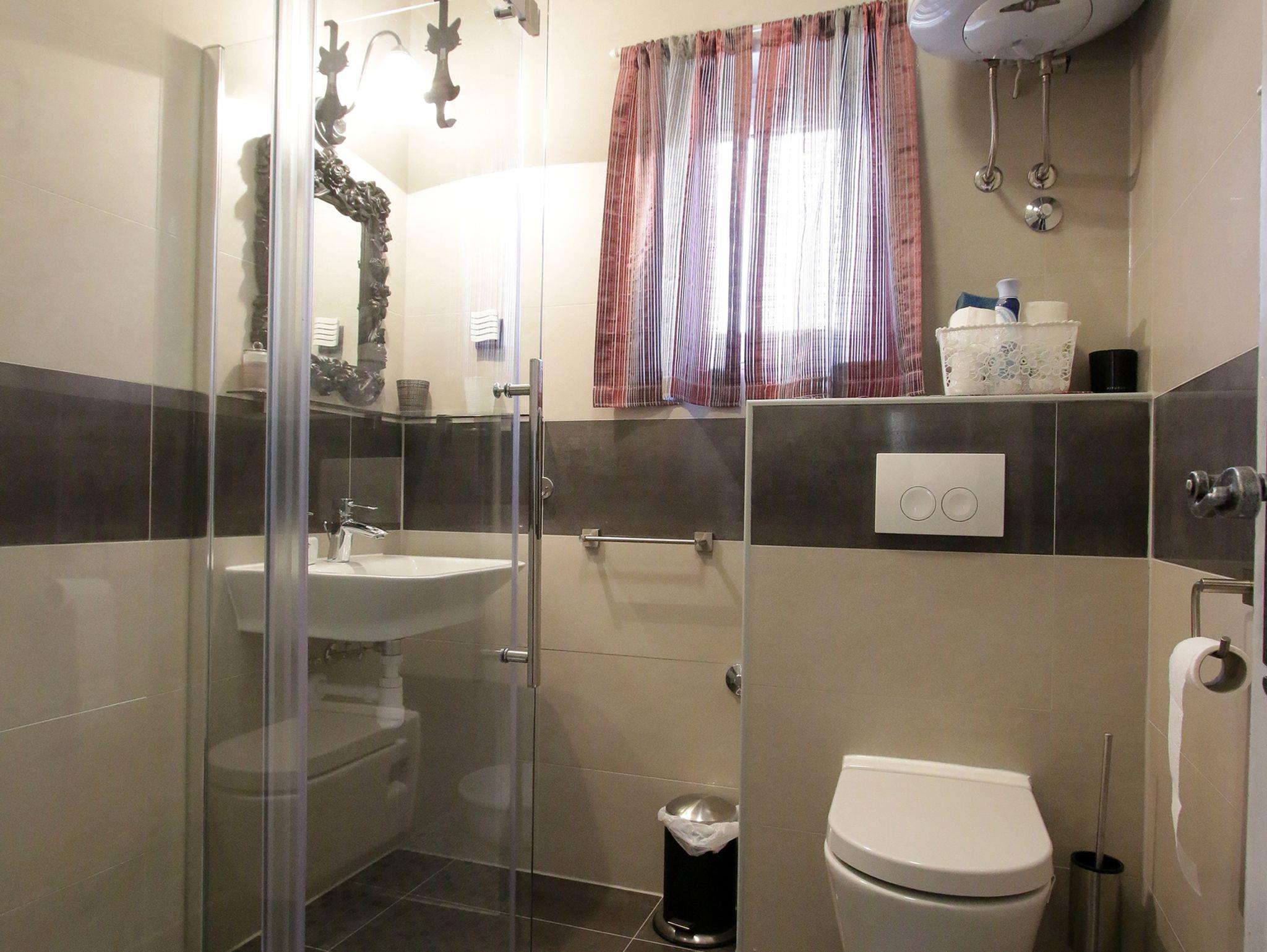 Ferienwohnung bietet Platz für 4 Gäste. Die Betten sind in Schlafzimmern, die es 1 gibt, und in Wohnzimmer, innerhalb einer Gesamtfläche von 47m2, angeordnet. Die Gäste haben eine eigene Terrasse zur Verfügung, auf der sie in warmen Sommernächten genießen können. Es ist erlaubt, Speisen auf dem Gemeinschafts-Grill vorzubereiten. In der Unterkunftseinheit besteht die Möglichkeit des Mitbringens von Haustieren gegen Aufpreis. IM PREIS INBEGRIFFEN: Kurtaxe, Endreinigung, Klimatisierung, Parkplatz, Internet, Wäschewaschen, Kinderbett, Bügeleisen, Bügelbrett, Föhn, tragbarer Grill. VERBINDLICHE ZUSÄTZLICHE KOSTEN: Aufzahlung für Kurzaufenthalte (prozentualer Zuschlag pro Nächtigungsanzahl: 30% - 1, 20% - 2, 10% - 3). UNVERBINDLICHE ZUSÄTZLICHE KOSTEN: Haustiere (5,00 € pro Nacht). Die Verfügbarkeit zusätzlicher Dienstleistungen in Ihrem reservierten Termin und die Preise derselben (falls nicht aufgeführt) müssen im Voraus überprüft werden. Zusätzliche Dienstleistungen die in der Zahlungsaufforderung nicht aufgeführt sind werden direkt beim Vermieter bezahlt, angenommen der Gast nutzt auch diese.