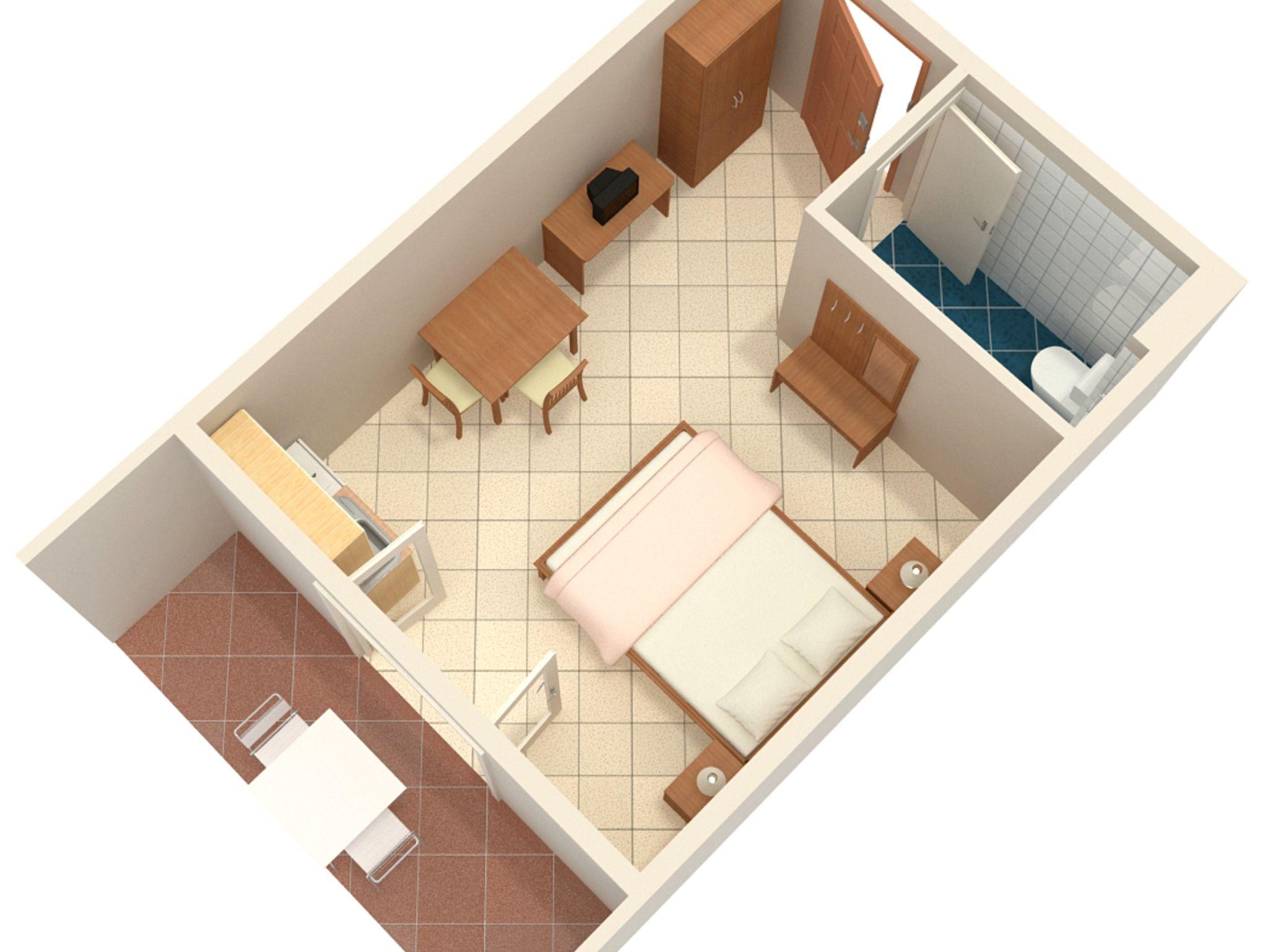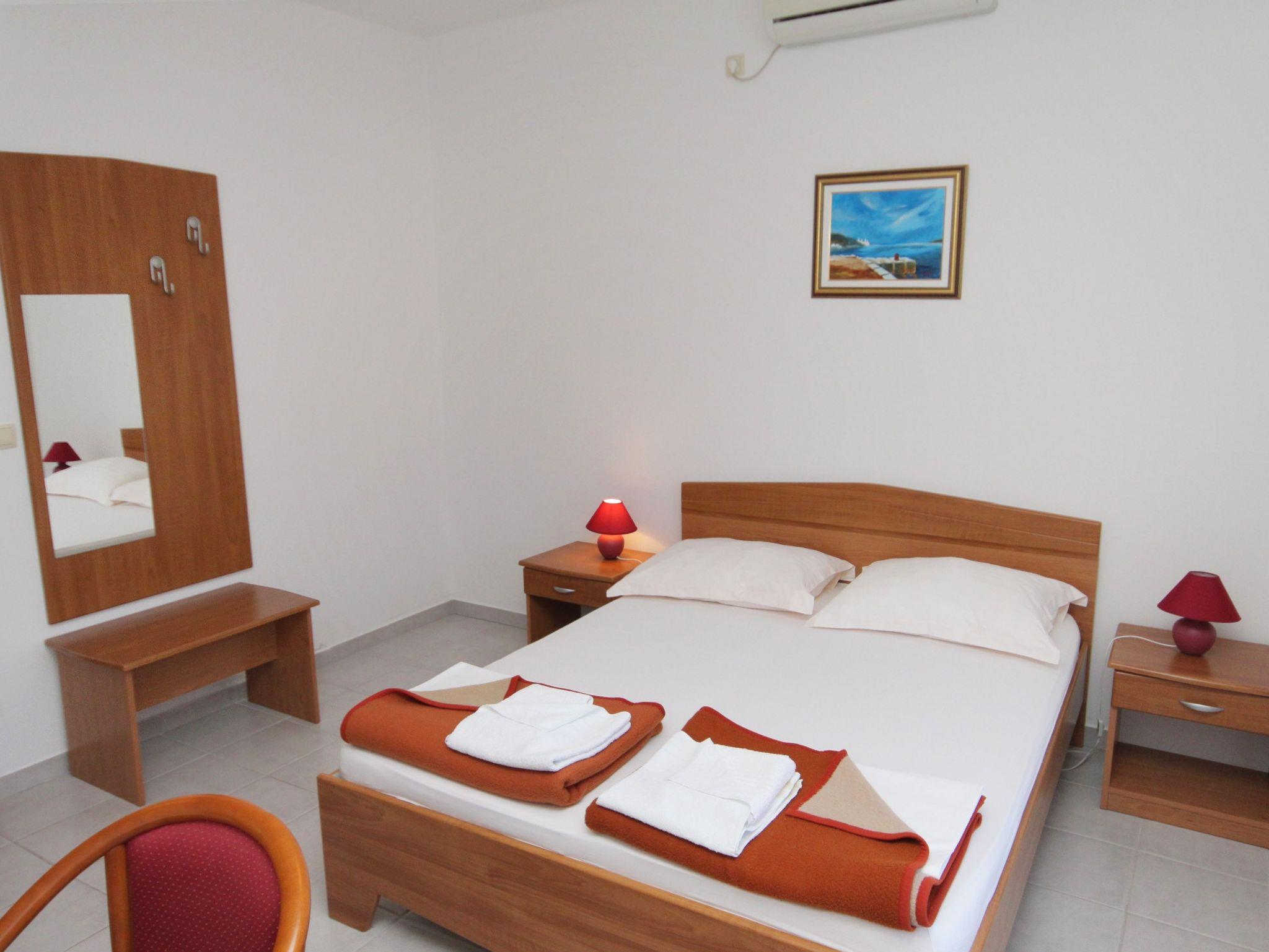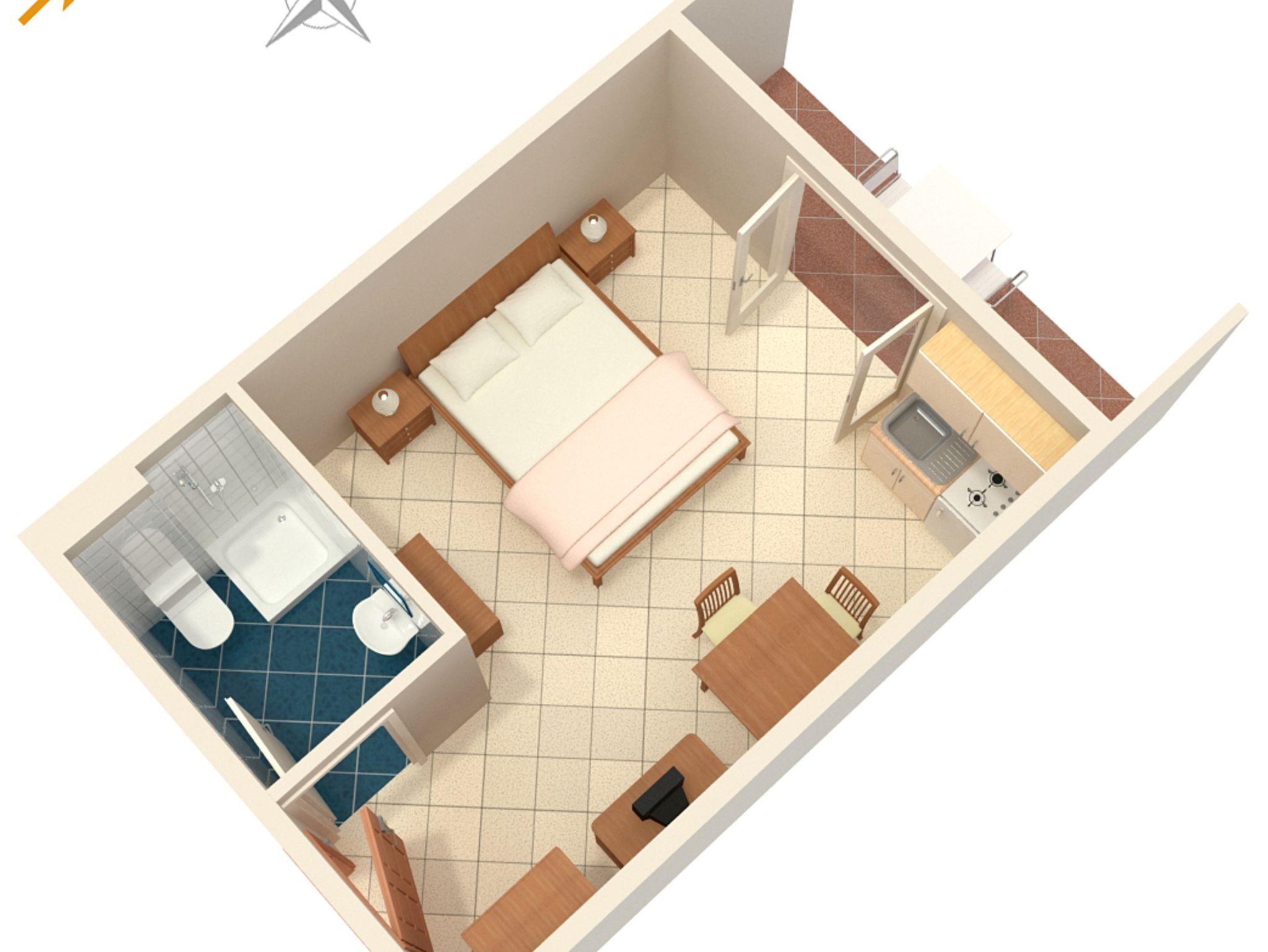 Studio bietet Platz für 2 Gäste. Die Betten sind in Schlafzimmern, die es 1 gibt, innerhalb einer Gesamtfläche von 23m2, angeordnet. Die Gäste haben eine eigene Terrasse zur Verfügung, auf der sie in warmen Sommernächten genießen können. Das Studio-Apartment bietet Meerblick. In der Unterkunftseinheit besteht die Möglichkeit des Mitbringens von Haustieren gegen Aufpreis. IM PREIS INBEGRIFFEN: Endreinigung, Klimatisierung, Parkplatz, Internet, Wäschewaschen, Kinderbett, Bügeleisen, Bügelbrett, Föhn. VERBINDLICHE ZUSÄTZLICHE KOSTEN: Kurtaxe (Erwachsene 0,93 € - 1,50 € Nacht/Person, Kinderermäßigung 12 - 17 Jahre), Aufzahlung für Kurzaufenthalte (prozentualer Zuschlag pro Nächtigungsanzahl: 30% - 1, 20% - 2, 10% - 3). UNVERBINDLICHE ZUSÄTZLICHE KOSTEN: Frühstück (13,00 €, 50% Nachlass für Kinder zwischen 4 und 12 Jahren, Kinder bis 4 Jahre sind frei.), Halbpension (40,00 €, 50% Nachlass für Kinder zwischen 4 und 12 Jahren, Kinder bis 4 Jahre sind frei.), Haustiere (3,00 € pro Nacht). Die Verfügbarkeit zusätzlicher Dienstleistungen in Ihrem reservierten Termin und die Preise derselben (falls nicht aufgeführt) müssen im Voraus überprüft werden. Zusätzliche Dienstleistungen die in der Zahlungsaufforderung nicht aufgeführt sind werden direkt beim Vermieter bezahlt, angenommen der Gast nutzt auch diese.