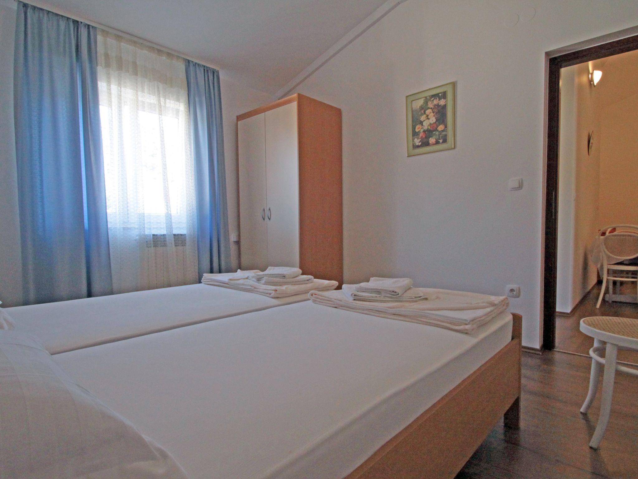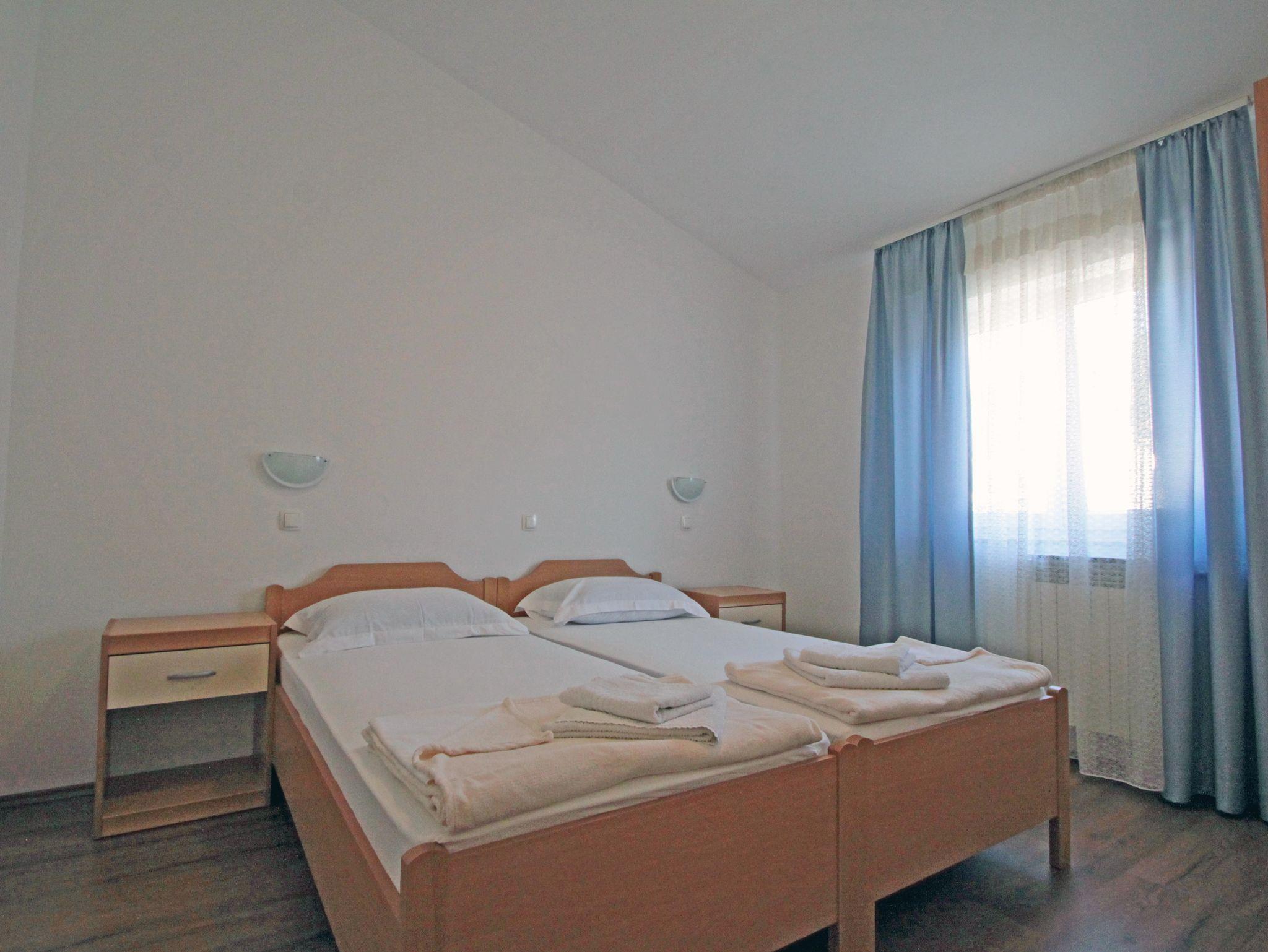 Ferienwohnung bietet Platz für 4 Gäste. Die Betten sind in Schlafzimmern, die es 2 gibt, innerhalb einer Gesamtfläche von 45m2, angeordnet. Die Gäste haben eine eigene Terrasse zur Verfügung, auf der sie in warmen Sommernächten genießen können. Das Apartment bietet Meerblick. In der Unterkunftseinheit besteht die Möglichkeit des Mitbringens von Haustieren gegen Aufpreis. IM PREIS INBEGRIFFEN: Kurtaxe, Endreinigung, Klimatisierung, Zentralheizung, Parkplatz, Internet, Wäschewaschen, Kinderbett, Bügeleisen, Bügelbrett, Föhn. VERBINDLICHE ZUSÄTZLICHE KOSTEN: Aufzahlung für Kurzaufenthalte (prozentualer Zuschlag pro Nächtigungsanzahl: 30% - 1, 20% - 2, 10% - 3). UNVERBINDLICHE ZUSÄTZLICHE KOSTEN: Frühstück (15,00 €, 50% Nachlass für Kinder zwischen 4 und 12 Jahren, Kinder bis 4 Jahre sind frei.), Halbpension (40,00 €, 50% Nachlass für Kinder zwischen 4 und 12 Jahren, Kinder bis 4 Jahre sind frei.), Haustiere (3,00 € pro Nacht). Die Verfügbarkeit zusätzlicher Dienstleistungen in Ihrem reservierten Termin und die Preise derselben (falls nicht aufgeführt) müssen im Voraus überprüft werden. Zusätzliche Dienstleistungen die in der Zahlungsaufforderung nicht aufgeführt sind werden direkt beim Vermieter bezahlt, angenommen der Gast nutzt auch diese.