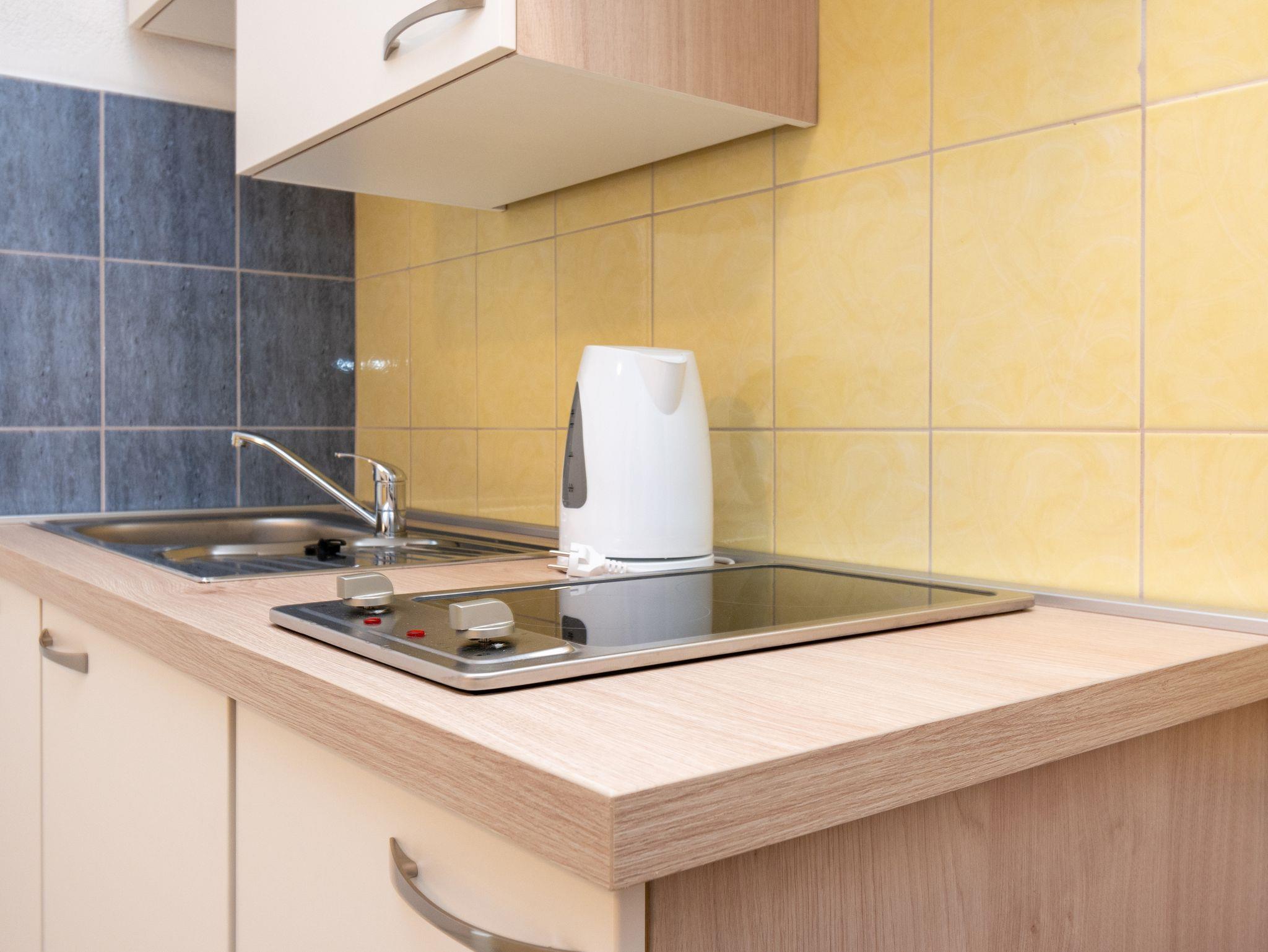 Studio bietet Platz für 2 Gäste. Die Betten sind in Schlafzimmern, die es 1 gibt, innerhalb einer Gesamtfläche von 17m2, angeordnet. Das Studio-Apartment bietet Meerblick. Es ist erlaubt, Speisen auf dem Gemeinschafts-Grill vorzubereiten. Die reservierte Unterkunftseinheit verfügt über einen gemeinsame Terrasse. IM PREIS INBEGRIFFEN: Kurtaxe, Endreinigung, Klimatisierung, Parkplatz, Internet. VERBINDLICHE ZUSÄTZLICHE KOSTEN: Aufzahlung für Kurzaufenthalte (prozentualer Zuschlag pro Nächtigungsanzahl: 30% - 1, 20% - 2, 10% - 3). Die Verfügbarkeit zusätzlicher Dienstleistungen in Ihrem reservierten Termin und die Preise derselben (falls nicht aufgeführt) müssen im Voraus überprüft werden. Zusätzliche Dienstleistungen die in der Zahlungsaufforderung nicht aufgeführt sind werden direkt beim Vermieter bezahlt, angenommen der Gast nutzt auch diese. Ermäßigung auf den Grundpreis: Gratistag 14=13 (bei einem Aufenthalt von 14 Tagen oder mehr erhalten Sie einen Gratistag für den Aufenthalt bis 31.12.26).