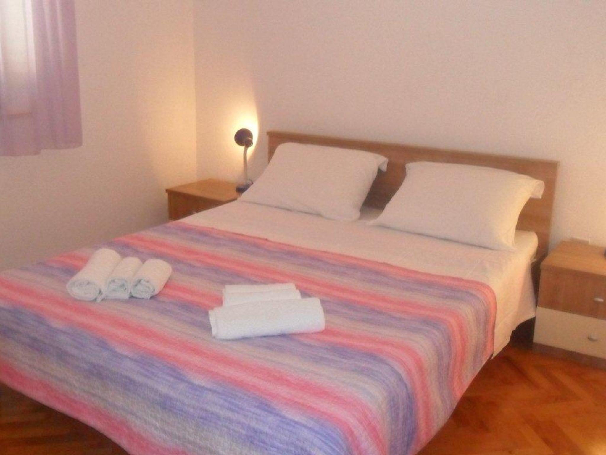 Ferienwohnung bietet Platz für 8 Gäste. Die Betten sind in Schlafzimmern, die es 3 gibt, und in Wohnzimmer, innerhalb einer Gesamtfläche von 93m2, angeordnet. Die Gäste haben eine eigene Terrasse zur Verfügung, auf der sie in warmen Sommernächten genießen können. Das Apartment bietet Meerblick. Es ist erlaubt, Speisen auf dem Gemeinschafts-Grill vorzubereiten. In der Unterkunftseinheit besteht die Möglichkeit des Mitbringens von Haustieren gegen Aufpreis. IM PREIS INBEGRIFFEN: Kurtaxe, Endreinigung, Klimatisierung, Parkplatz, Internet, Bügeleisen, Bügelbrett, tragbarer Grill. VERBINDLICHE ZUSÄTZLICHE KOSTEN: Aufzahlung für Kurzaufenthalte (prozentualer Zuschlag pro Nächtigungsanzahl: 30% - 1, 20% - 2, 10% - 3). UNVERBINDLICHE ZUSÄTZLICHE KOSTEN: Haustiere (5,00 € pro Nacht). Die Verfügbarkeit zusätzlicher Dienstleistungen in Ihrem reservierten Termin und die Preise derselben (falls nicht aufgeführt) müssen im Voraus überprüft werden. Zusätzliche Dienstleistungen die in der Zahlungsaufforderung nicht aufgeführt sind werden direkt beim Vermieter bezahlt, angenommen der Gast nutzt auch diese. Ermäßigung auf den Grundpreis: Gratistag 14=13 (bei einem Aufenthalt von 14 Tagen oder mehr erhalten Sie einen Gratistag für den Aufenthalt bis 31.12.26).