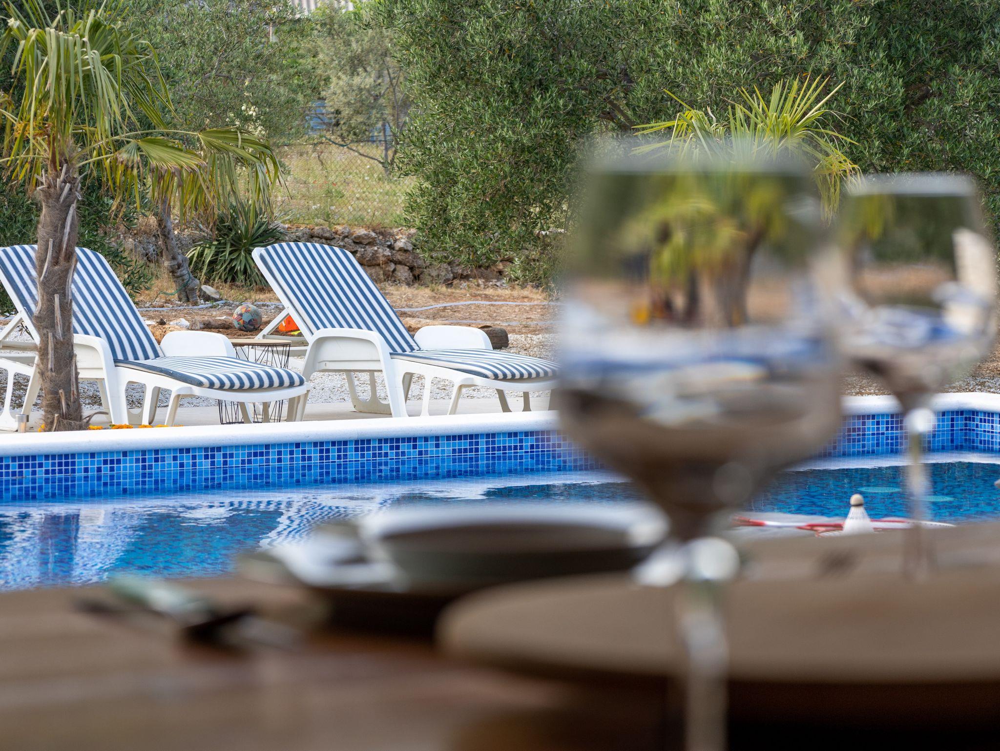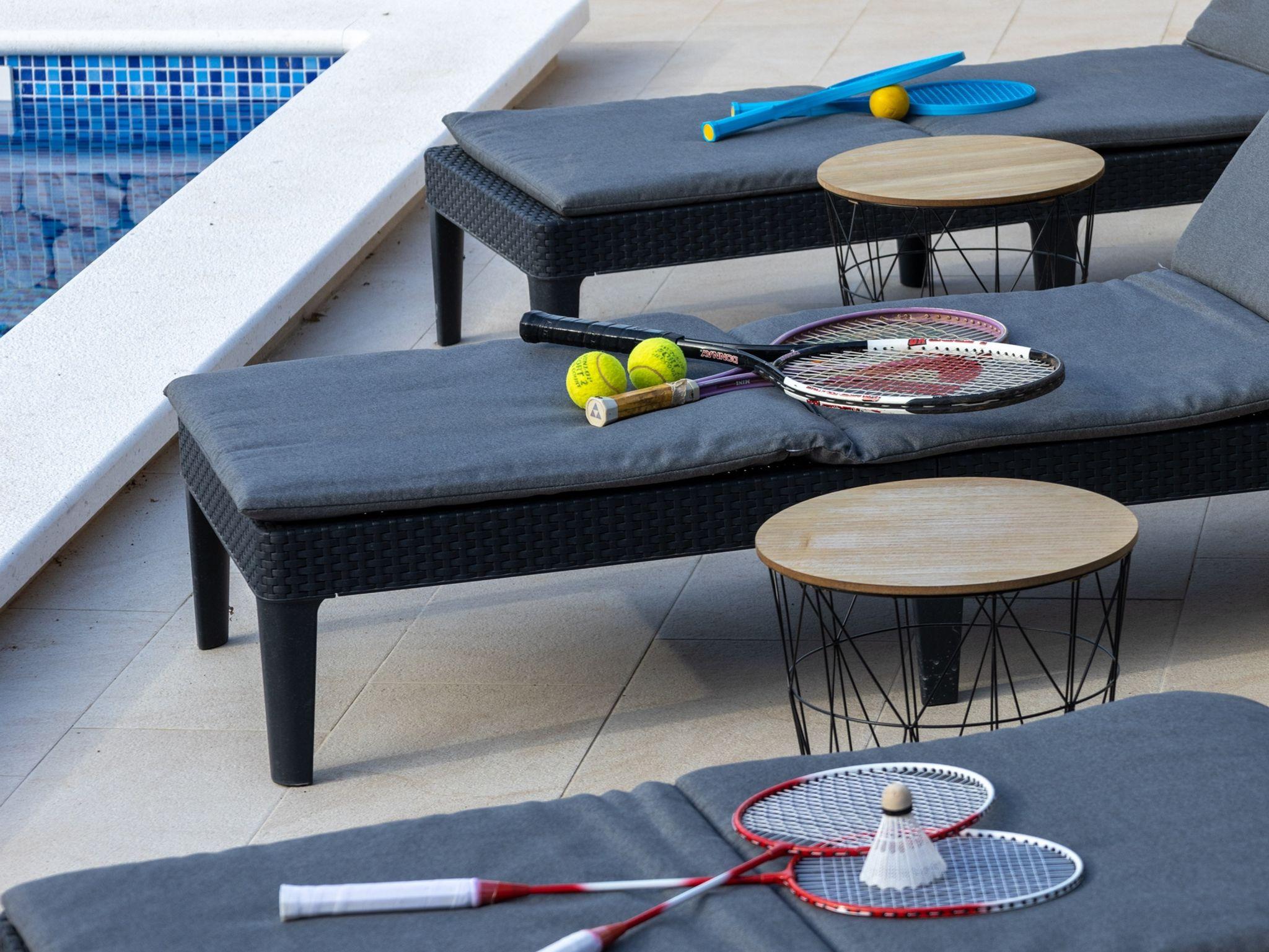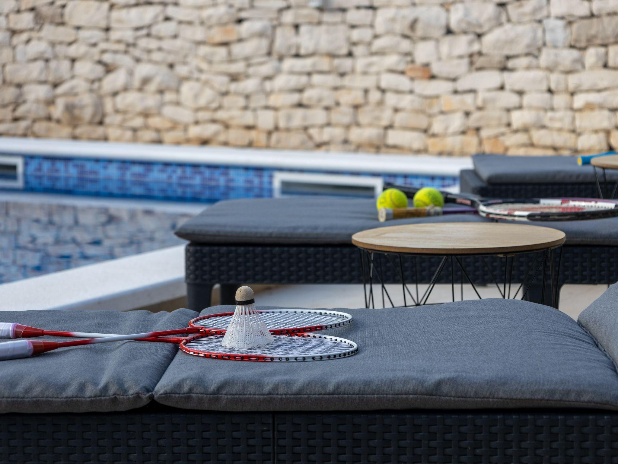 Umgebung des Objekts (Eingerichtet), Hof (2000m2, Kinderbereich, Sitzbereich), Parkplatz (Anzahl der Parkplätze: 4, Entfernung vom Objekt: im Hof), Pool: privat, Dimensionen: 8m x 4m x 1.5m, Wassertyp: Süßwasser, WiFi Internet, Fahrrad (Anzahl: 3), Föhn, Bügeleisen, Bügelbrett, Liegestühle, Kinderbett