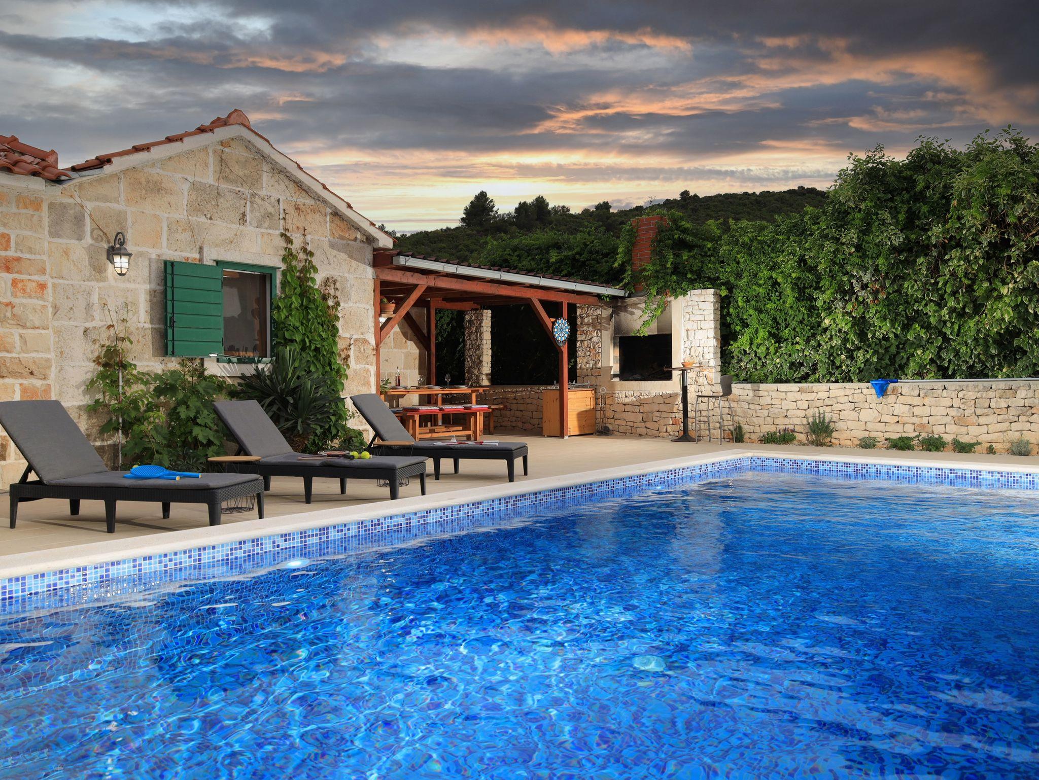 Haus 19563 im Ort Postira, Brac - Mitteldalmatien ist 2,7 km vom Meer entfernt. Der nächste Strand zu dieser Unterkunft ist ein Kiesstrand. Dieses Haus befindet sich in der Kategorie Objekte mit Schwimmbad. Da es im Objekt keine anderen Ferienwohnungen oder Zimmer gibt, werden Sie, während Ihres Urlaubes die einzigen Gäste im Objekt sein. Die Hausbesitzer werden während Ihres Urlaubes nicht im Objekt wohnen. Der Eigentümer ist nicht verpflichtet, zusätzliche unangemeldete Personen und Haustiere zu akzeptieren. Sie sollten im Voraus bekannt gegeben werden. INHALT