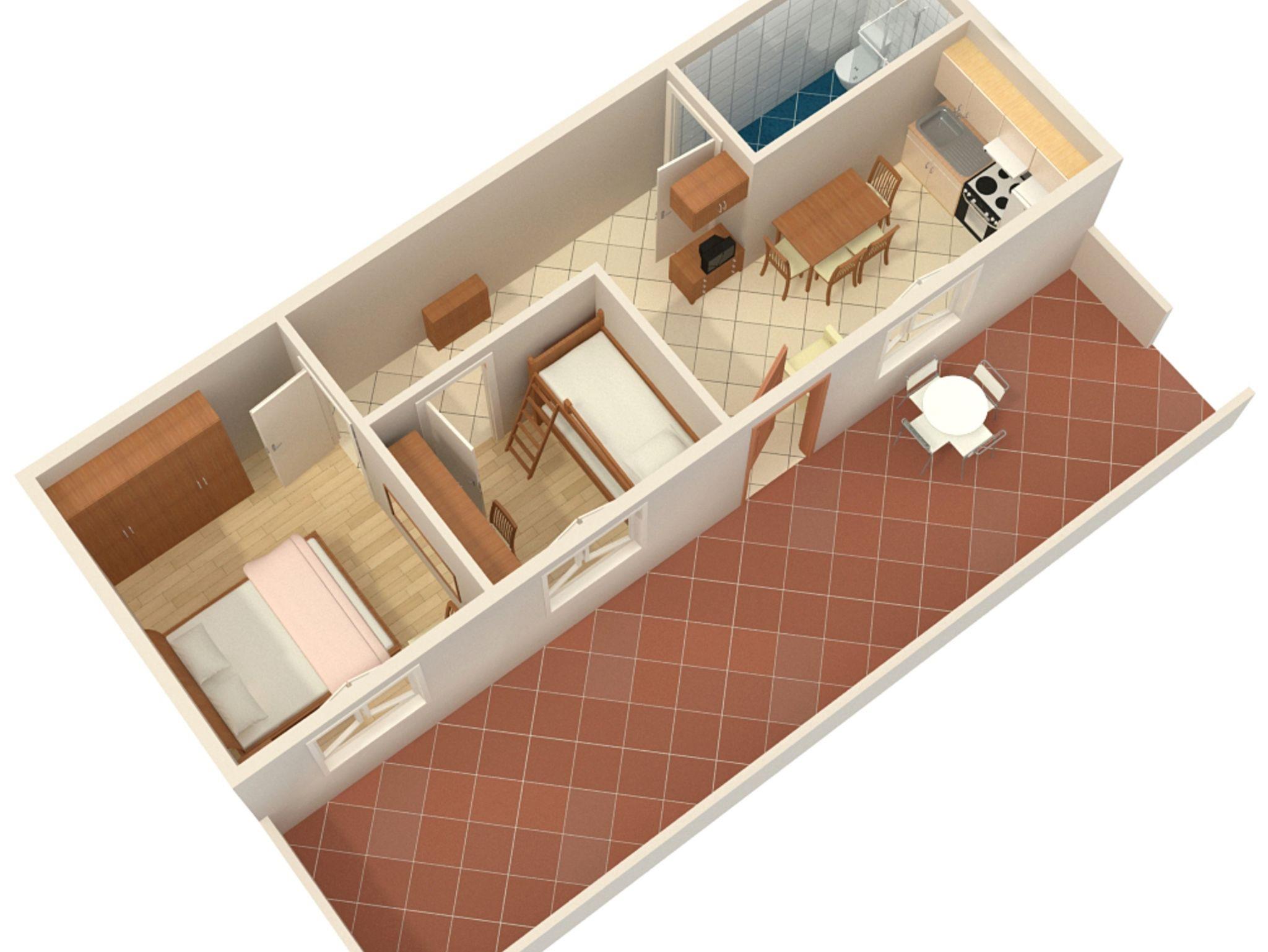 Ferienwohnung bietet Platz für 4 Gäste. Die Betten sind in Schlafzimmern, die es 2 gibt, innerhalb einer Gesamtfläche von 38m2, angeordnet. Die Gäste haben eine eigene Terrasse zur Verfügung, auf der sie in warmen Sommernächten genießen können. Das Apartment bietet Meerblick. Es ist erlaubt, Speisen auf dem Gemeinschafts-Grill vorzubereiten. IM PREIS INBEGRIFFEN: Kurtaxe, Endreinigung, Klimatisierung, Zentralheizung, Parkplatz, Internet, Bügeleisen, Bügelbrett, Föhn, tragbarer Grill. Die Verfügbarkeit zusätzlicher Dienstleistungen in Ihrem reservierten Termin und die Preise derselben (falls nicht aufgeführt) müssen im Voraus überprüft werden. Zusätzliche Dienstleistungen die in der Zahlungsaufforderung nicht aufgeführt sind werden direkt beim Vermieter bezahlt, angenommen der Gast nutzt auch diese.