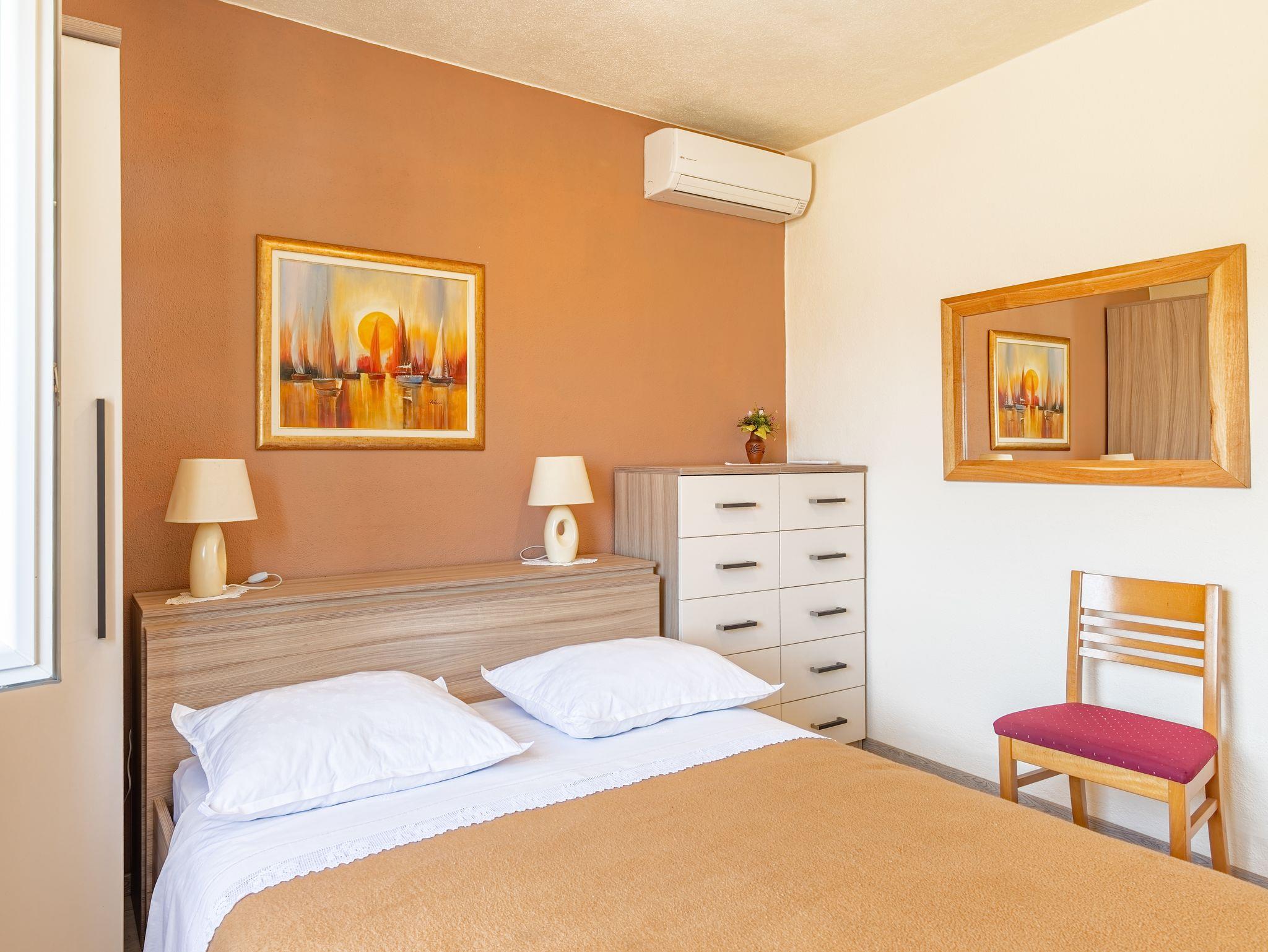 Ferienwohnung bietet Platz für 6 Gäste. Die Betten sind in Schlafzimmern, die es 3 gibt, innerhalb einer Gesamtfläche von 75m2, angeordnet. Die Gäste haben eine eigene Terrasse zur Verfügung, auf der sie in warmen Sommernächten genießen können. Das Apartment bietet Meerblick. Es ist erlaubt, Speisen auf dem Gemeinschafts-Grill vorzubereiten. IM PREIS INBEGRIFFEN: Kurtaxe, Endreinigung, Klimatisierung, Parkplatz, Internet, Kinderbett, Bügeleisen, Bügelbrett, Föhn. Die Verfügbarkeit zusätzlicher Dienstleistungen in Ihrem reservierten Termin und die Preise derselben (falls nicht aufgeführt) müssen im Voraus überprüft werden. Zusätzliche Dienstleistungen die in der Zahlungsaufforderung nicht aufgeführt sind werden direkt beim Vermieter bezahlt, angenommen der Gast nutzt auch diese.