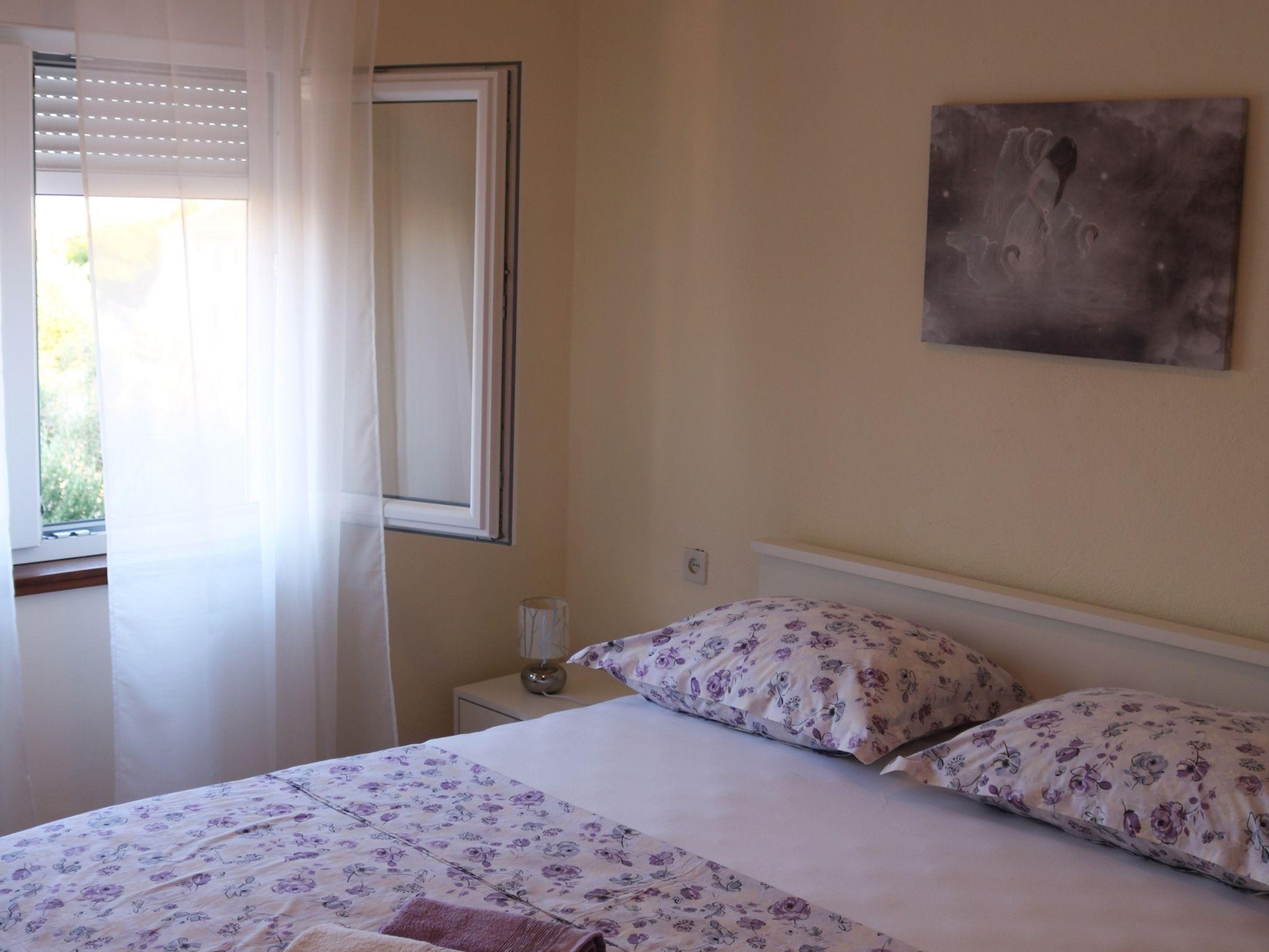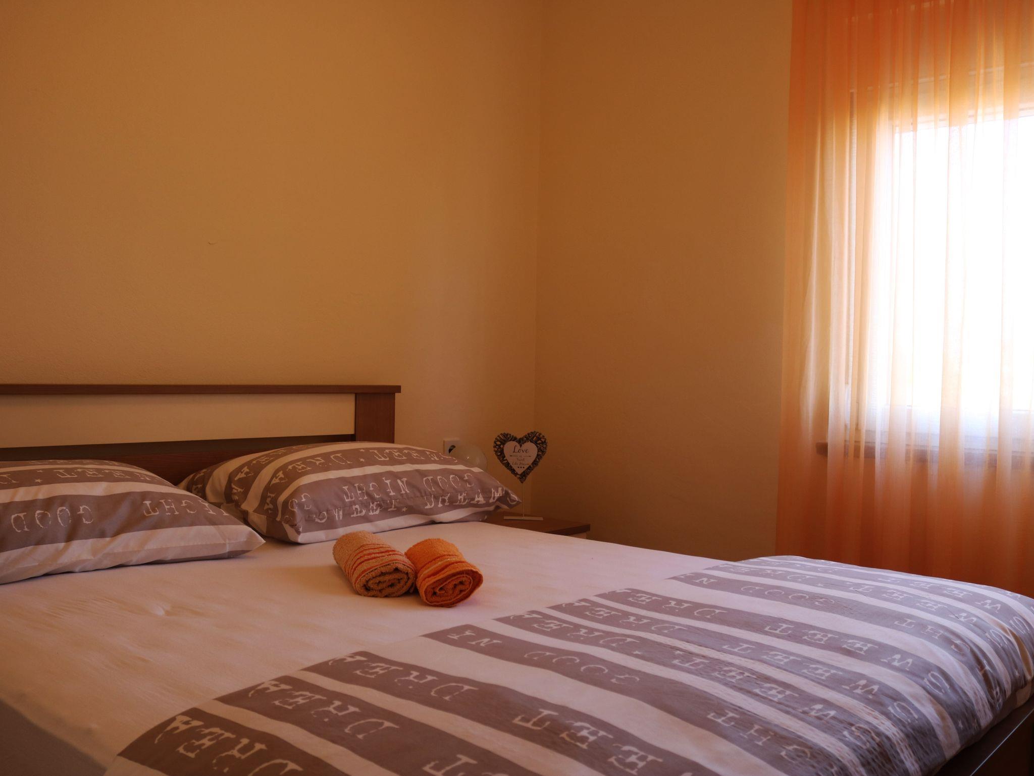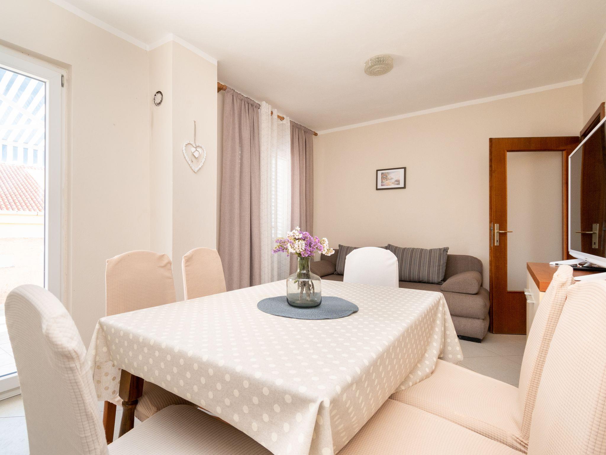 Ferienwohnung bietet Platz für 4 Gäste. Die Betten sind in Schlafzimmern, die es 2 gibt, innerhalb einer Gesamtfläche von 48m2, angeordnet. Die Gäste haben eine eigene Terrasse zur Verfügung, auf der sie in warmen Sommernächten genießen können. Das Apartment bietet Meerblick. Es ist erlaubt, Speisen auf dem Gemeinschafts-Grill vorzubereiten. IM PREIS INBEGRIFFEN: Kurtaxe, Endreinigung, Klimatisierung, Parkplatz, Internet, Bügeleisen, Föhn. VERBINDLICHE ZUSÄTZLICHE KOSTEN: Aufzahlung für Kurzaufenthalte (prozentualer Zuschlag pro Nächtigungsanzahl: 30% - 1, 20% - 2, 10% - 3). Die Verfügbarkeit zusätzlicher Dienstleistungen in Ihrem reservierten Termin und die Preise derselben (falls nicht aufgeführt) müssen im Voraus überprüft werden. Zusätzliche Dienstleistungen die in der Zahlungsaufforderung nicht aufgeführt sind werden direkt beim Vermieter bezahlt, angenommen der Gast nutzt auch diese. Ermäßigung auf den Grundpreis: Gratistag 14=13 (bei einem Aufenthalt von 14 Tagen oder mehr erhalten Sie einen Gratistag für den Aufenthalt bis 31.12.26).
