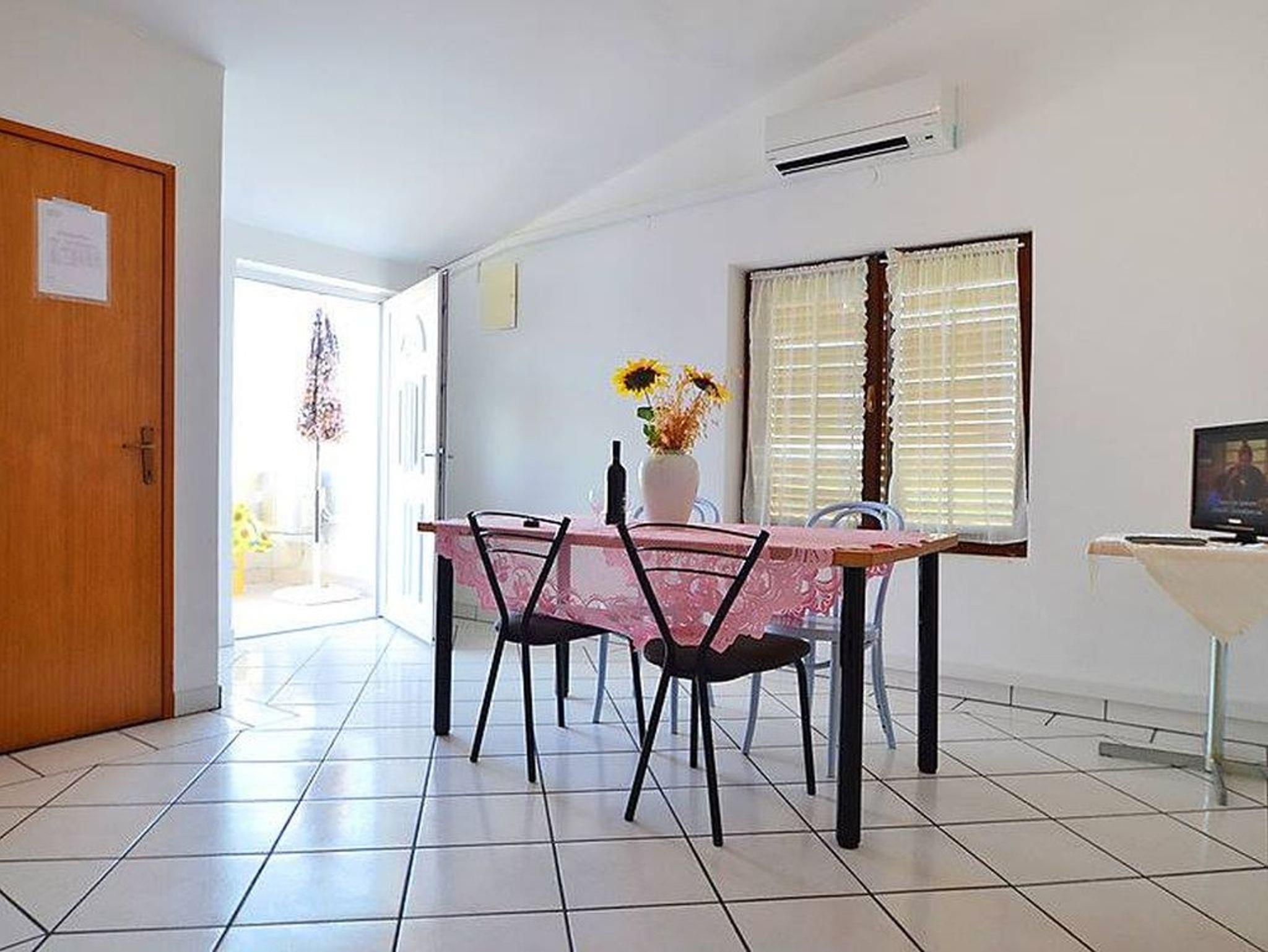 Ferienwohnung bietet Platz für 4 Gäste. Die Betten sind in Schlafzimmern, die es 2 gibt, innerhalb einer Gesamtfläche von 44m2, angeordnet. Die Gäste haben eine eigene Terrasse zur Verfügung, auf der sie in warmen Sommernächten genießen können. Das Apartment bietet Meerblick. Es ist erlaubt, Speisen auf dem Gemeinschafts-Grill vorzubereiten. In der Unterkunftseinheit besteht die Möglichkeit des Mitbringens von Haustieren gegen Aufpreis. IM PREIS INBEGRIFFEN: Kurtaxe, Endreinigung, Parkplatz, Kinderbett, tragbarer Grill. VERBINDLICHE ZUSÄTZLICHE KOSTEN: Aufzahlung für Kurzaufenthalte (prozentualer Zuschlag pro Nächtigungsanzahl: 30% - 1, 20% - 2, 10% - 3). UNVERBINDLICHE ZUSÄTZLICHE KOSTEN: Klimatisierung (5,00 € pro Nacht), Haustiere (5,00 € pro Nacht). Die Verfügbarkeit zusätzlicher Dienstleistungen in Ihrem reservierten Termin und die Preise derselben (falls nicht aufgeführt) müssen im Voraus überprüft werden. Zusätzliche Dienstleistungen die in der Zahlungsaufforderung nicht aufgeführt sind werden direkt beim Vermieter bezahlt, angenommen der Gast nutzt auch diese.