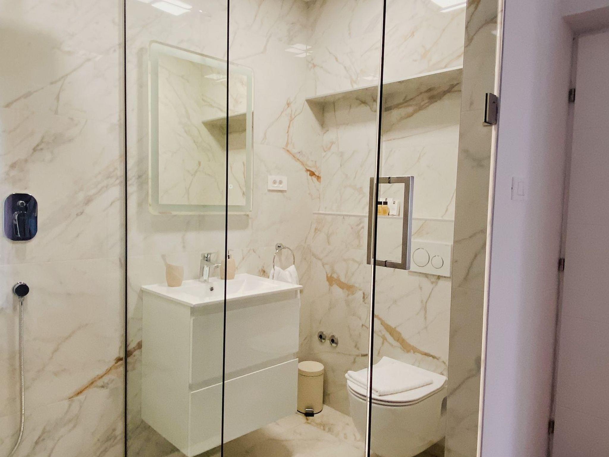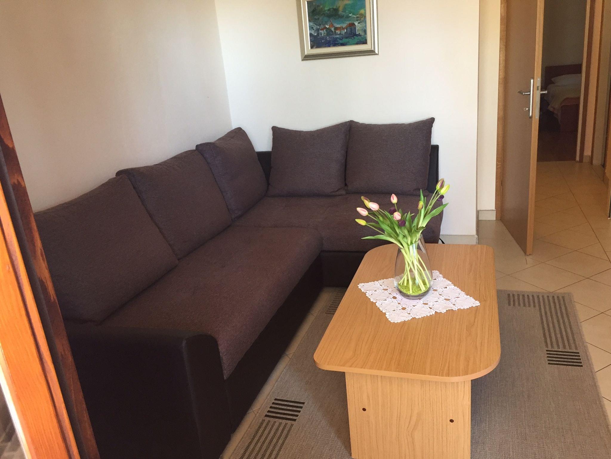 Ferienwohnung bietet Platz für 5 Gäste. Die Betten sind in Schlafzimmern, die es 2 gibt, und in Wohnzimmer, innerhalb einer Gesamtfläche von 57m2, angeordnet. Die Gäste haben eine eigene Terrasse zur Verfügung, auf der sie in warmen Sommernächten genießen können. Es ist erlaubt, Speisen auf dem Gemeinschafts-Grill vorzubereiten. Während ihres Aufenthalts können Gäste das gemeinsam zur Nutzung stehende Schwimmbad benutzen. In der Unterkunftseinheit besteht die Möglichkeit des Mitbringens von Haustieren gegen Aufpreis. IM PREIS INBEGRIFFEN: Kurtaxe, Endreinigung, Klimatisierung, Zentralheizung, Pool, Parkplatz, Internet, Wäschewaschen, Bootsanlegeplatz, Kinderbett, Bügeleisen, Bügelbrett, Föhn, Sonnenschirm. VERBINDLICHE ZUSÄTZLICHE KOSTEN: Aufzahlung für Kurzaufenthalte (prozentualer Zuschlag pro Nächtigungsanzahl: 30% - 1, 20% - 2, 10% - 3). UNVERBINDLICHE ZUSÄTZLICHE KOSTEN: Haustiere (10,00 € pro Nacht). Die Verfügbarkeit zusätzlicher Dienstleistungen in Ihrem reservierten Termin und die Preise derselben (falls nicht aufgeführt) müssen im Voraus überprüft werden. Zusätzliche Dienstleistungen die in der Zahlungsaufforderung nicht aufgeführt sind werden direkt beim Vermieter bezahlt, angenommen der Gast nutzt auch diese. Ermäßigung auf den Grundpreis: Gratistag 14=13 (bei einem Aufenthalt von 14 Tagen oder mehr erhalten Sie einen Gratistag für den Aufenthalt bis 31.12.26).