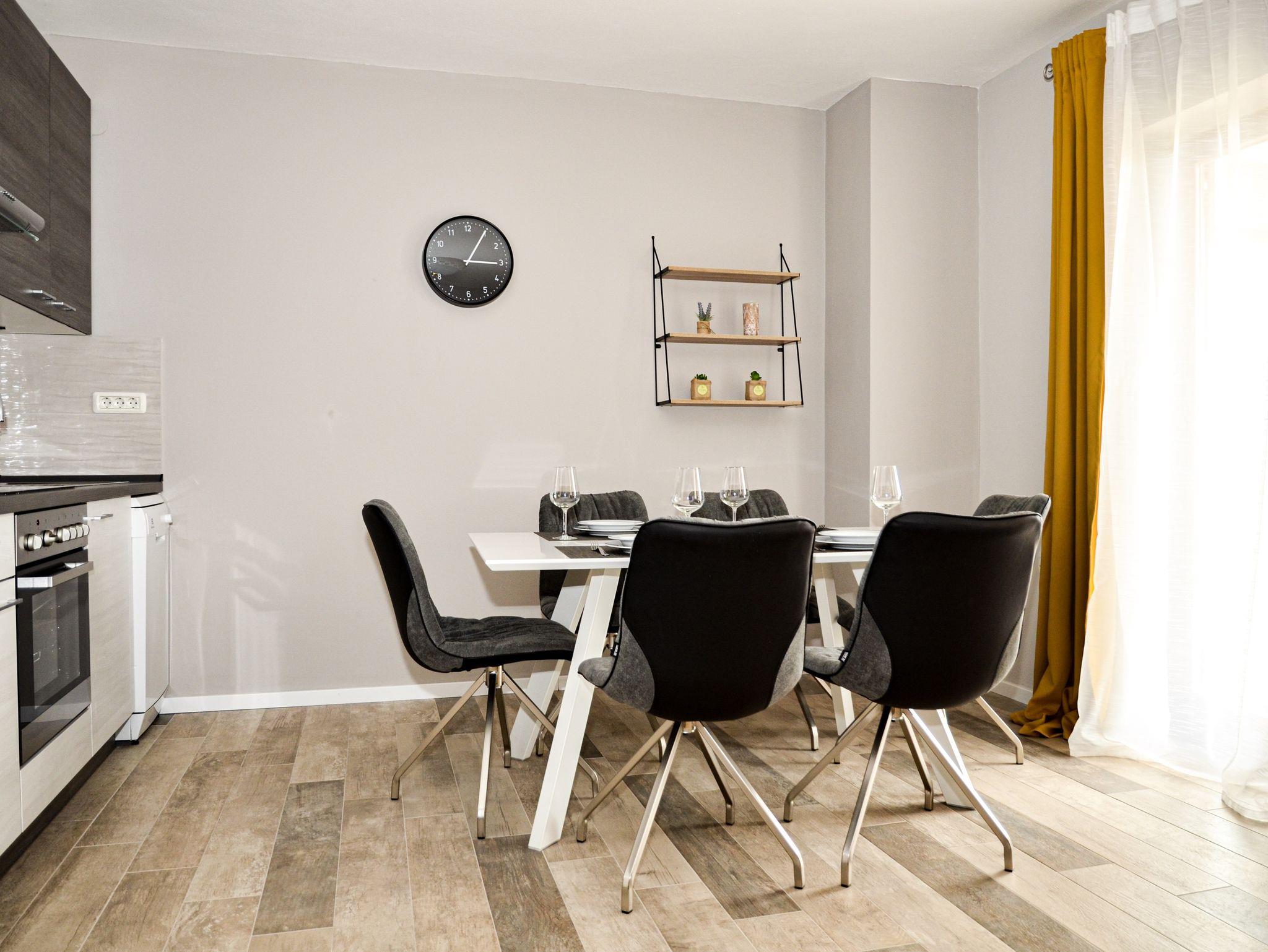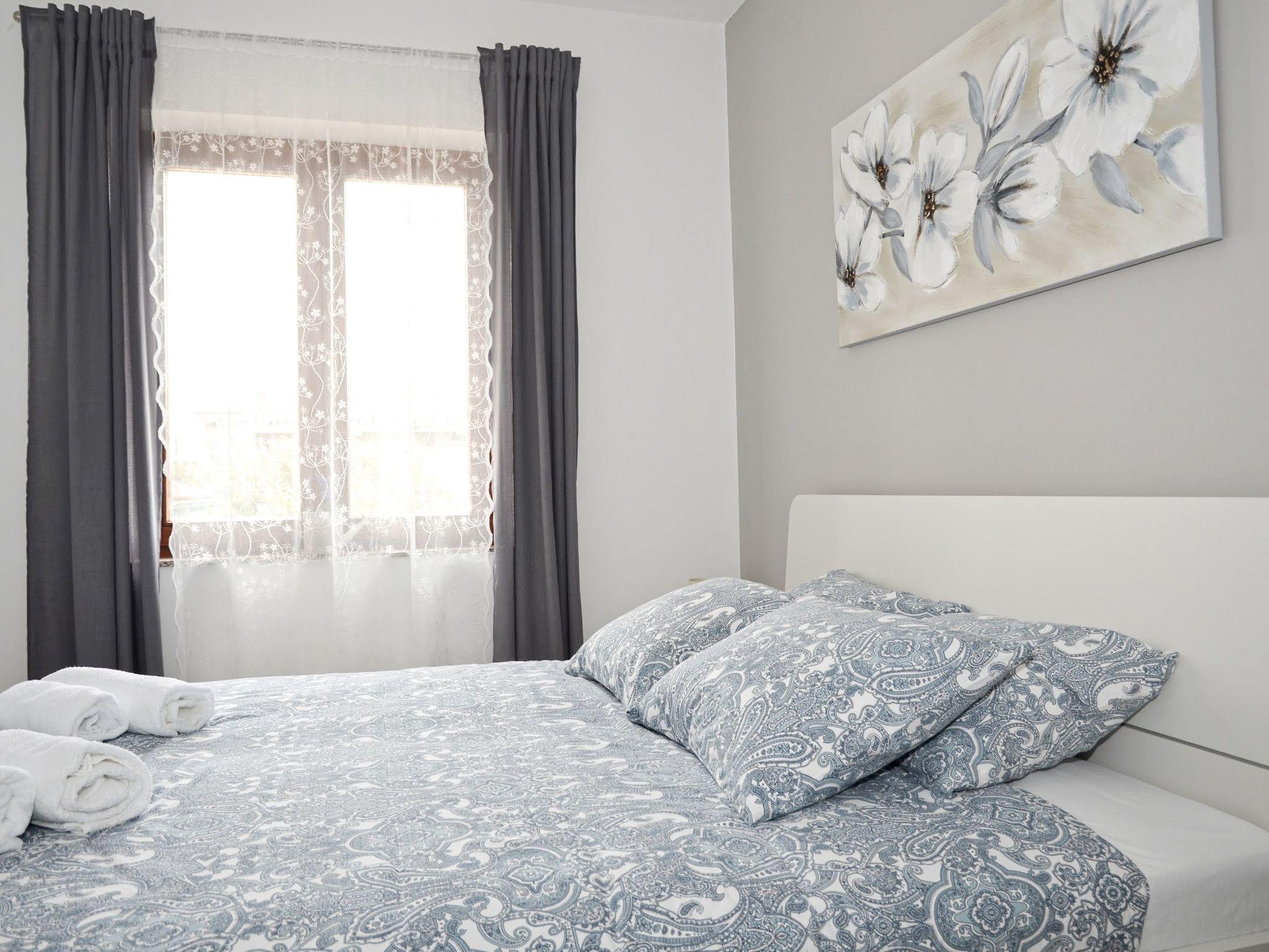 Ferienwohnung bietet Platz für 6 Gäste. Die Betten sind in Schlafzimmern, die es 2 gibt, und in Wohnzimmer, innerhalb einer Gesamtfläche von 57m2, angeordnet. Die Gäste haben eine eigene Terrasse zur Verfügung, auf der sie in warmen Sommernächten genießen können. Das Apartment bietet Meerblick. Es ist erlaubt, Speisen auf dem Gemeinschafts-Grill vorzubereiten. Während ihres Aufenthalts können Gäste das gemeinsam zur Nutzung stehende Schwimmbad benutzen. In der Unterkunftseinheit besteht die Möglichkeit des Mitbringens von Haustieren gegen Aufpreis. IM PREIS INBEGRIFFEN: Kurtaxe, Endreinigung, Klimatisierung, Pool, Parkplatz, Internet, Wäschewaschen, Bootsanlegeplatz, Kinderbett, Bügeleisen, Bügelbrett, Föhn, Sonnenschirm. VERBINDLICHE ZUSÄTZLICHE KOSTEN: Aufzahlung für Kurzaufenthalte (prozentualer Zuschlag pro Nächtigungsanzahl: 30% - 1, 20% - 2, 10% - 3). UNVERBINDLICHE ZUSÄTZLICHE KOSTEN: Haustiere (10,00 € pro Nacht). Die Verfügbarkeit zusätzlicher Dienstleistungen in Ihrem reservierten Termin und die Preise derselben (falls nicht aufgeführt) müssen im Voraus überprüft werden. Zusätzliche Dienstleistungen die in der Zahlungsaufforderung nicht aufgeführt sind werden direkt beim Vermieter bezahlt, angenommen der Gast nutzt auch diese. Ermäßigung auf den Grundpreis: Gratistag 14=13 (bei einem Aufenthalt von 14 Tagen oder mehr erhalten Sie einen Gratistag für den Aufenthalt bis 31.12.26).