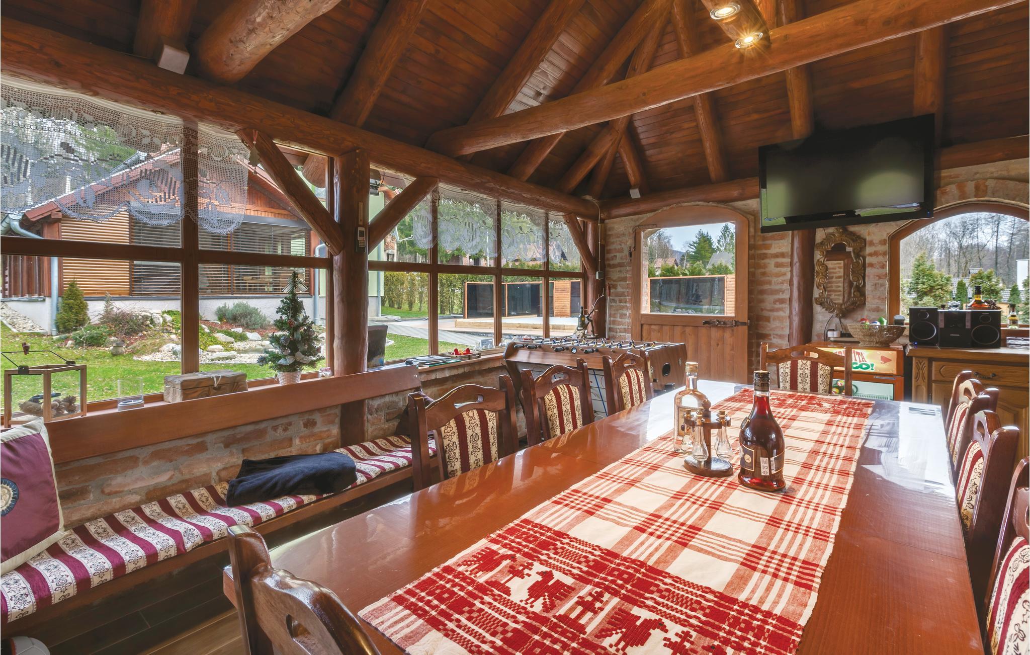 Luxuriöses Ferienhaus in Novo Zvecevo, im Herzen des Naturparks Papuk. Wenn Sie Ihren Urlaub mit mehreren Familien oder einer großen Gruppe von Freunden in der Nachbarschaft verbringen wollen, beachten Sie, dass CCS021 und CCS022 in der Nähe liegen. Entspannen Sie im Außenpool oder in der Sauna und im Whirlpool. Fahrräder können gemietet werden. In der Umgebung verlaufen viele Wanderwege. Auf dem Grundstück sind ein idyllischer See, Spielplatz und Fußballplatz zu finden. Besuchen Sie Jankovac, ein Bergtal an den Hängen des Papuk in einer Höhe von 475 m. Zum Haus führt ein 400 m langer Schotterweg. Mindestdeckenhöhe 140 cm.