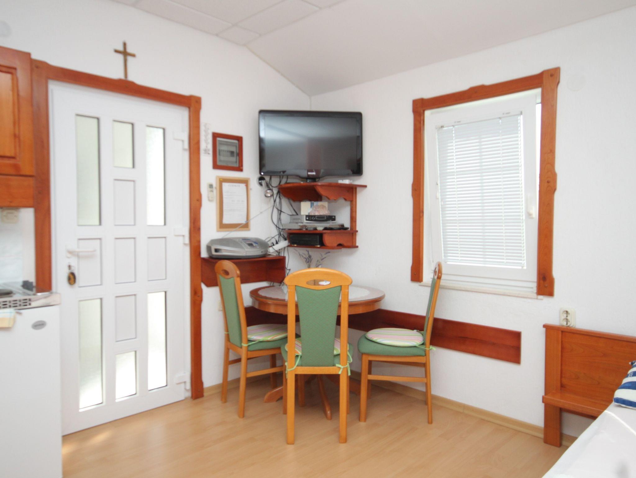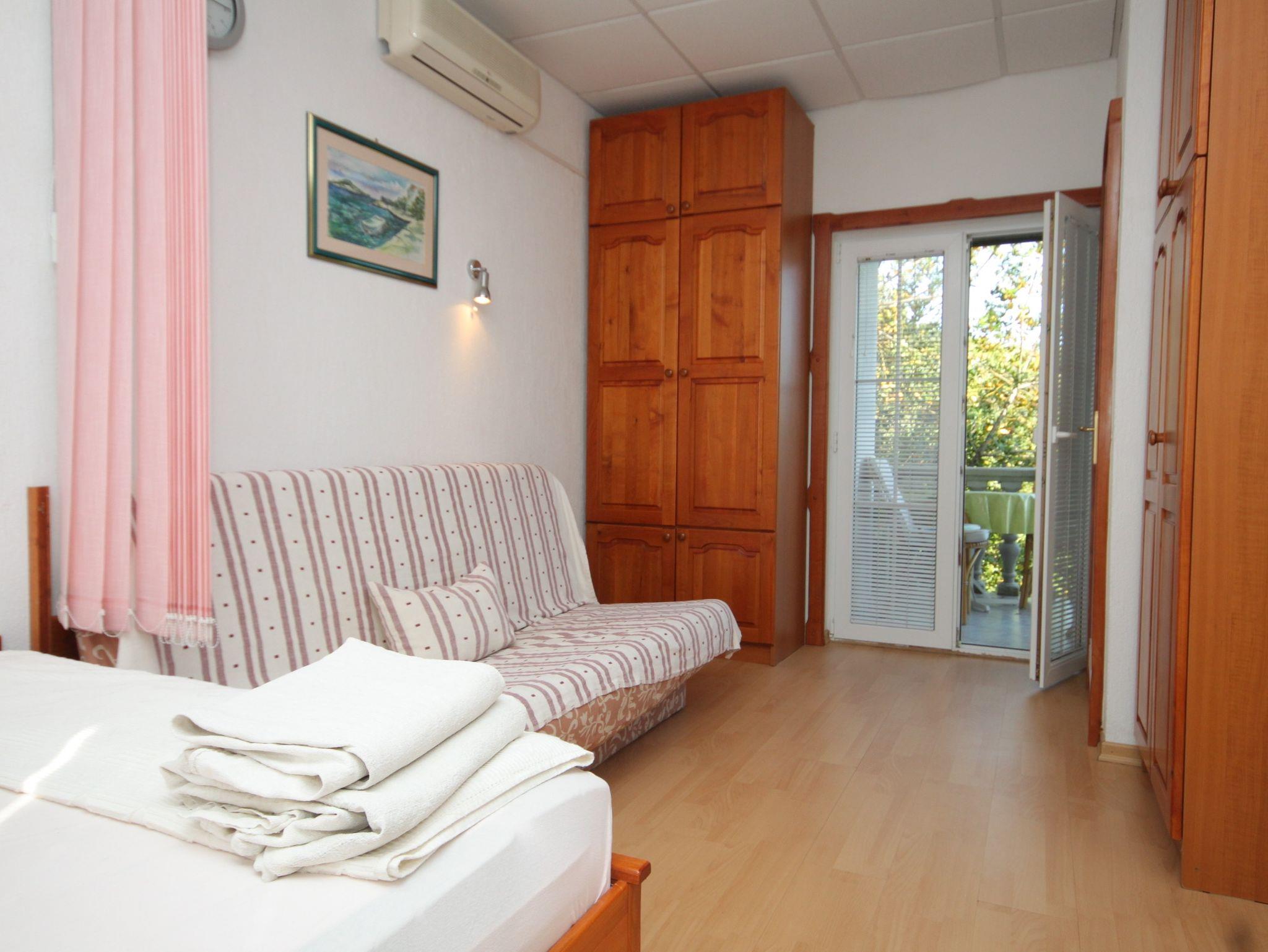 Studio bietet Platz für 3 Gäste. Die Betten sind in Schlafzimmern, die es 1 gibt, innerhalb einer Gesamtfläche von 20m2, angeordnet. Die Gäste haben eine eigene Terrasse zur Verfügung, auf der sie in warmen Sommernächten genießen können. Das Studio-Apartment bietet Meerblick. Für vollen Genuss und Entspannung gibt es einen privaten Grill für Gäste dieser Unterkunft. IM PREIS INBEGRIFFEN: Kurtaxe, Endreinigung, Klimatisierung, Parkplatz, Internet, Wäschewaschen, Kinderbett, Bügeleisen, Bügelbrett, Föhn. VERBINDLICHE ZUSÄTZLICHE KOSTEN: Aufzahlung für Kurzaufenthalte (prozentualer Zuschlag pro Nächtigungsanzahl: 30% - 1, 20% - 2, 10% - 3). Die Verfügbarkeit zusätzlicher Dienstleistungen in Ihrem reservierten Termin und die Preise derselben (falls nicht aufgeführt) müssen im Voraus überprüft werden. Zusätzliche Dienstleistungen die in der Zahlungsaufforderung nicht aufgeführt sind werden direkt beim Vermieter bezahlt, angenommen der Gast nutzt auch diese.