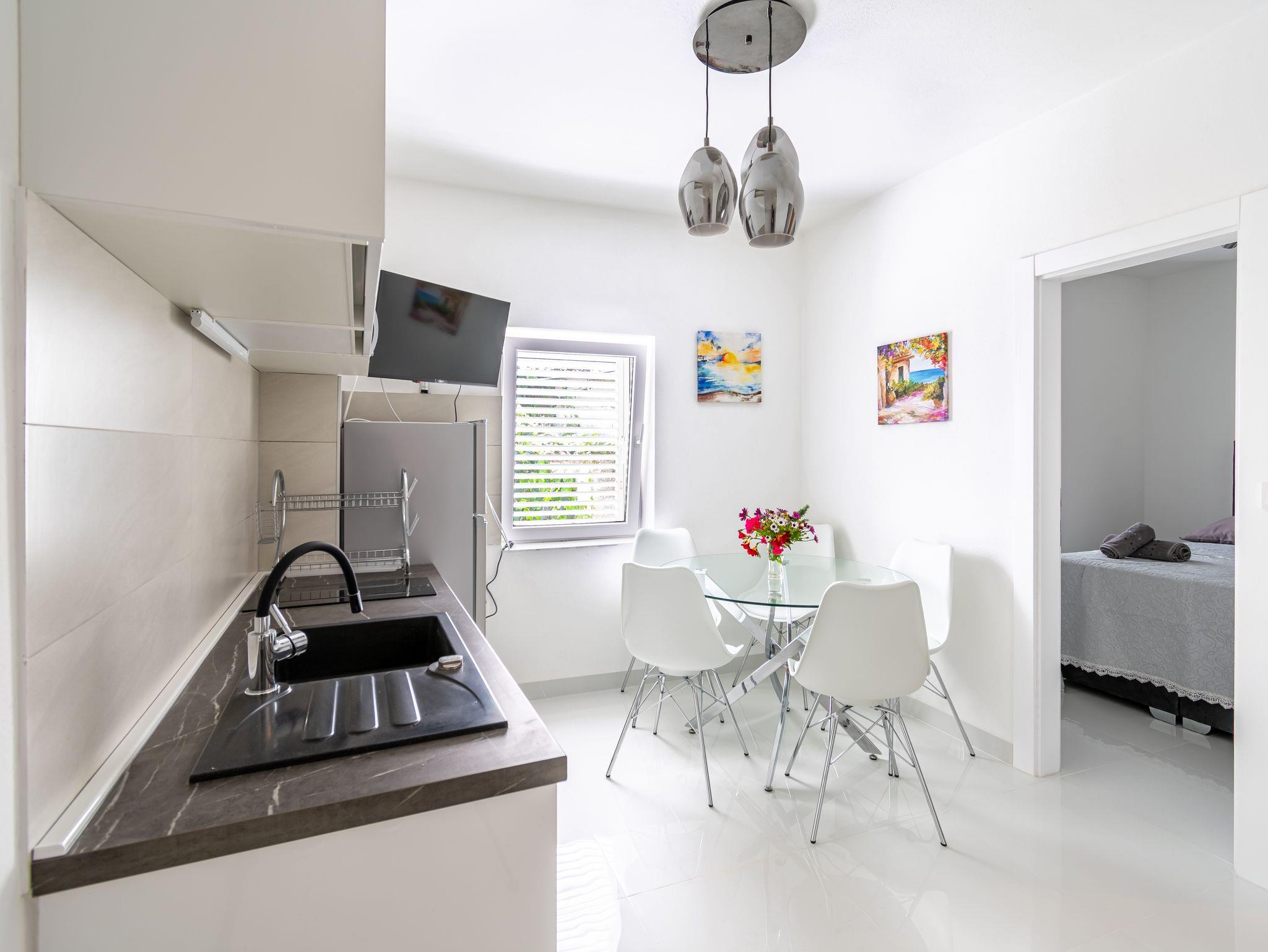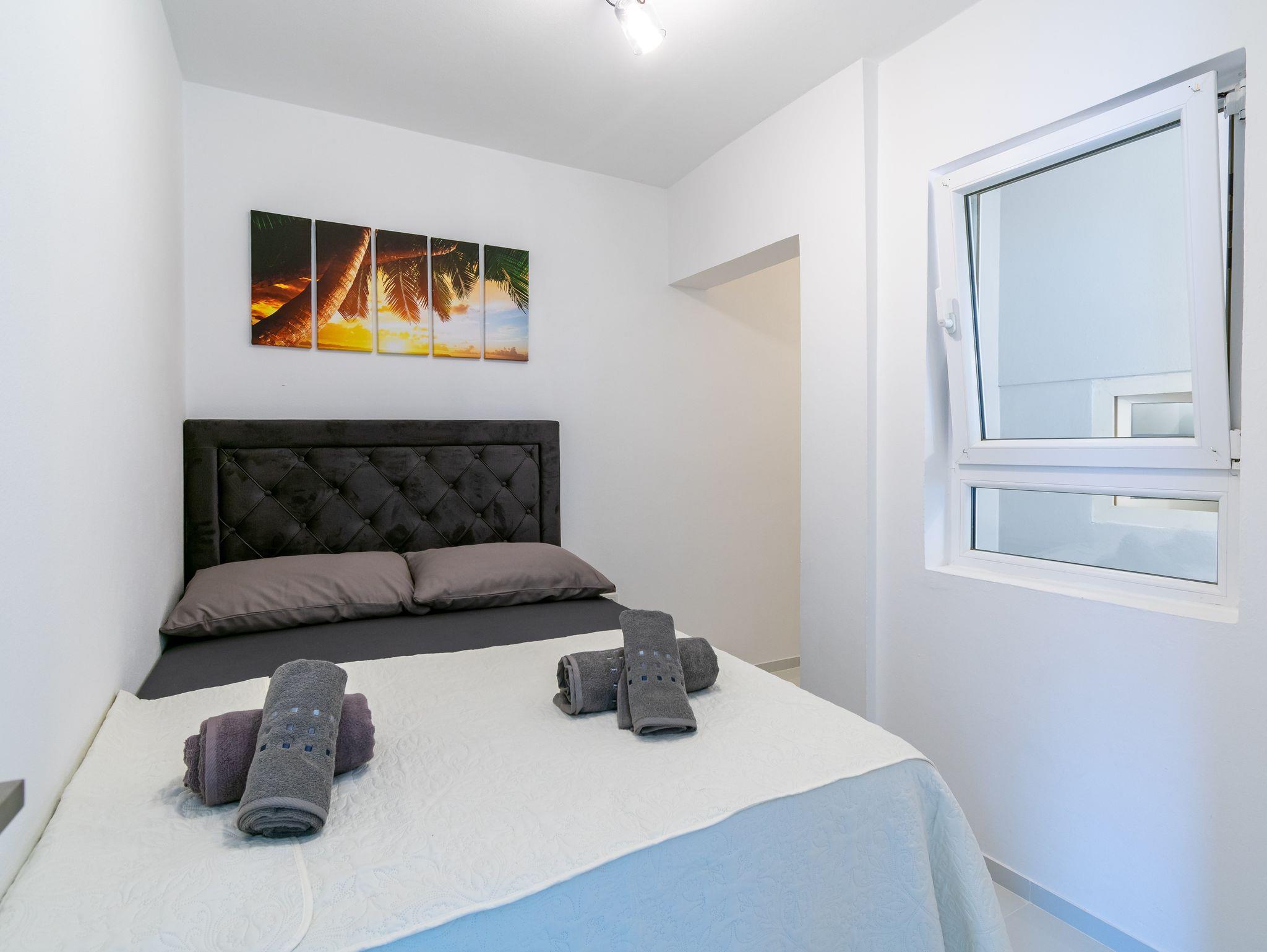 Ferienwohnung bietet Platz für 5 Gäste. Die Betten sind in Schlafzimmern, die es 2 gibt, innerhalb einer Gesamtfläche von 31m2, angeordnet. Das Apartment bietet Meerblick. Es ist erlaubt, Speisen auf dem Gemeinschafts-Grill vorzubereiten. Die reservierte Unterkunftseinheit verfügt über einen gemeinsame Terrasse. IM PREIS INBEGRIFFEN: Kurtaxe, Endreinigung, Klimatisierung, Internet, Wäschewaschen, Bootsanlegeplatz, Bügeleisen, Bügelbrett, Föhn. VERBINDLICHE ZUSÄTZLICHE KOSTEN: Aufzahlung für Kurzaufenthalte (prozentualer Zuschlag pro Nächtigungsanzahl: 30% - 1, 20% - 2, 10% - 3). Die Verfügbarkeit zusätzlicher Dienstleistungen in Ihrem reservierten Termin und die Preise derselben (falls nicht aufgeführt) müssen im Voraus überprüft werden. Zusätzliche Dienstleistungen die in der Zahlungsaufforderung nicht aufgeführt sind werden direkt beim Vermieter bezahlt, angenommen der Gast nutzt auch diese.