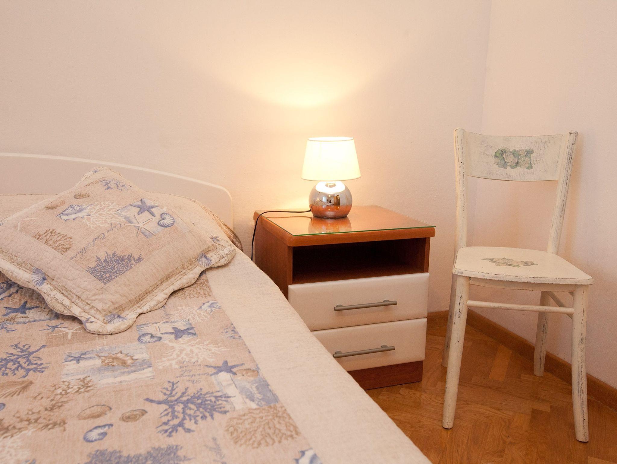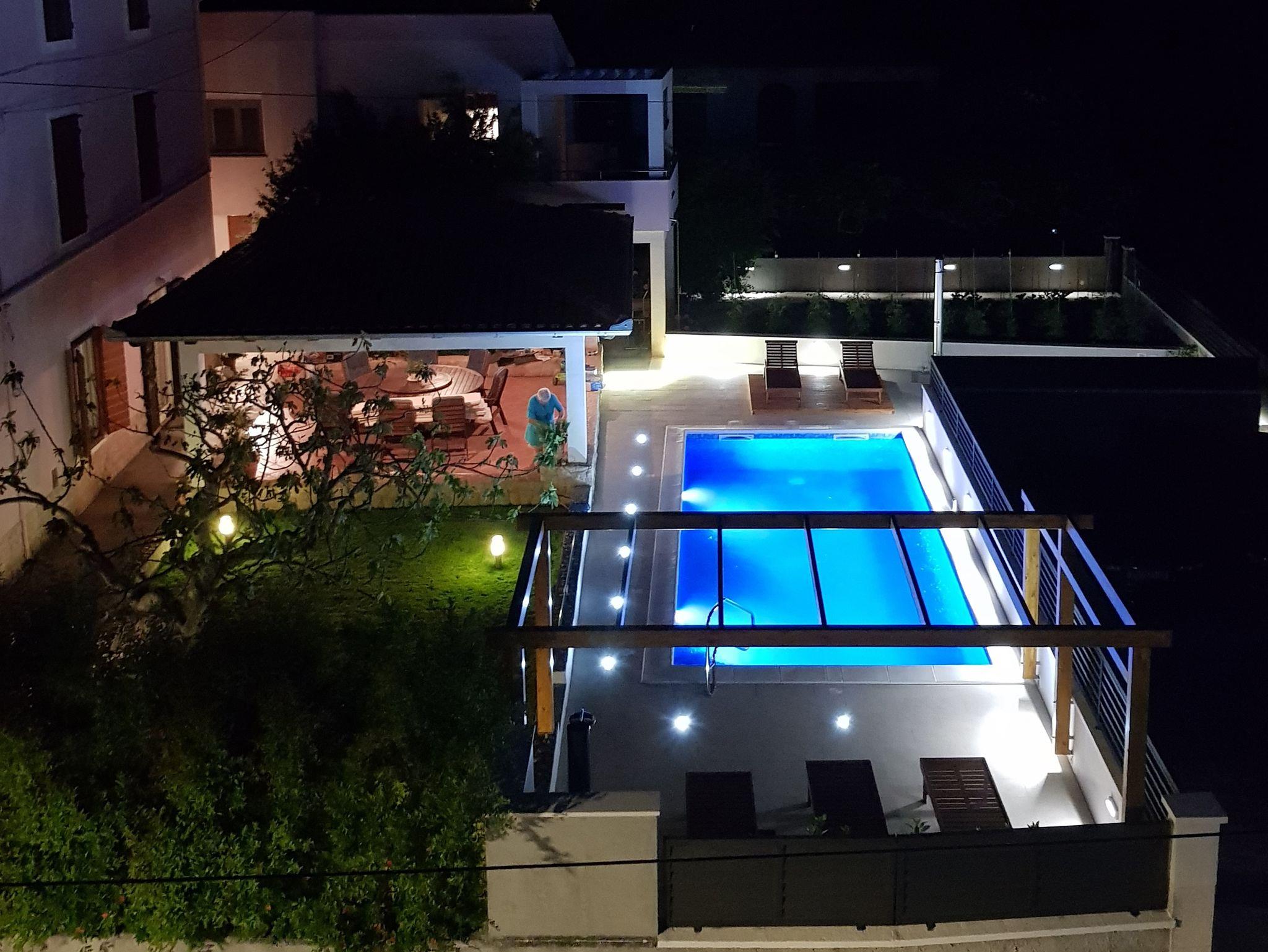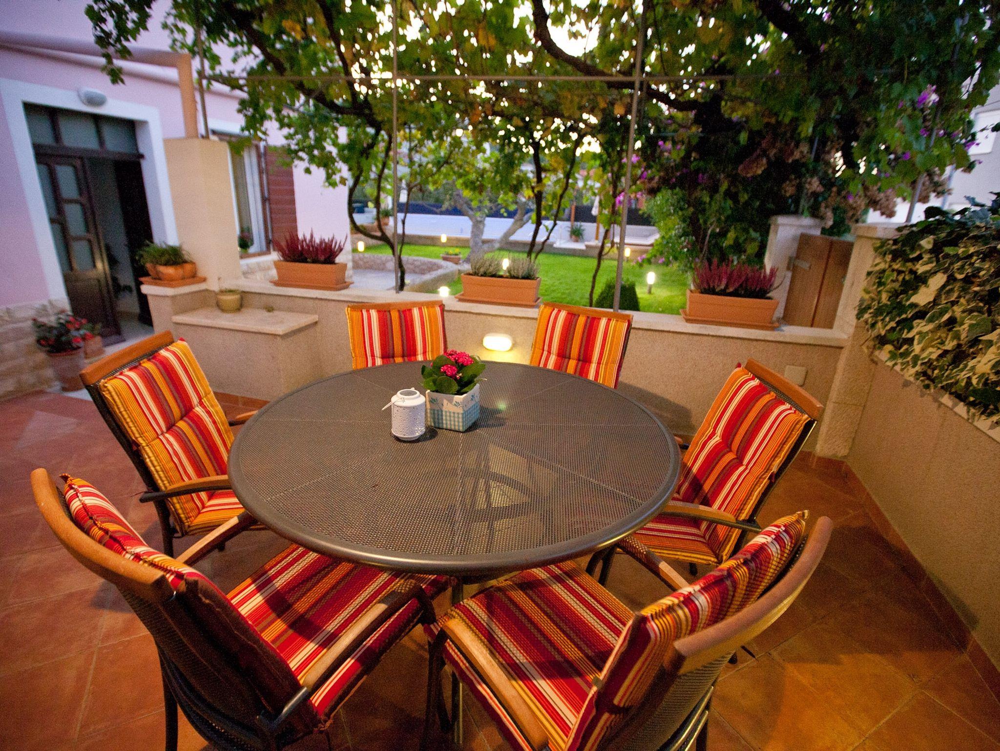 Ferienwohnung bietet Platz für 6 Gäste. Die Betten sind in Schlafzimmern, die es 2 gibt, und in Wohnzimmer, innerhalb einer Gesamtfläche von 83m2, angeordnet. Die Gäste haben eine eigene Terrasse zur Verfügung, auf der sie in warmen Sommernächten genießen können. Für vollen Genuss und Entspannung gibt es einen privaten Grill für Gäste dieser Unterkunft. Während ihres Aufenthalts können Gäste das gemeinsam zur Nutzung stehende Schwimmbad benutzen. IM PREIS INBEGRIFFEN: Kurtaxe, Endreinigung, Klimatisierung, Pool, Parkplatz, Internet, Zusatzbett, Bügeleisen, Bügelbrett, Föhn, tragbarer Grill. Die Verfügbarkeit zusätzlicher Dienstleistungen in Ihrem reservierten Termin und die Preise derselben (falls nicht aufgeführt) müssen im Voraus überprüft werden. Zusätzliche Dienstleistungen die in der Zahlungsaufforderung nicht aufgeführt sind werden direkt beim Vermieter bezahlt, angenommen der Gast nutzt auch diese.