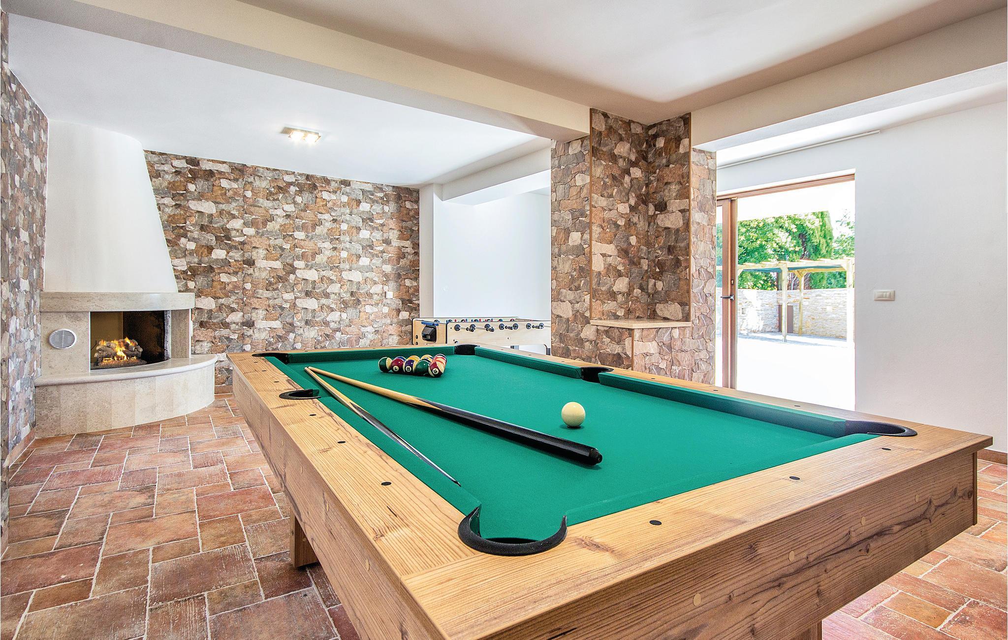Die unmittelbare Nähe zum Meer, der mediterrane Duft des Pinienwaldes, der Naturpark Kap Kamenjak und herrliche Strände mit kristallklarem Meer sind nur einige Akzente, die diese Unterkunft auszeichnen. Das schöne Ferienhaus mit Pool in exzellenter Lage bietet Ihnen Privatsphäre. Es erstreckt sich auf zwei Etagen mit Innentreppen. Der Wohn- und Essbereich mit Küche bildet eine Einheit mit Ausgang auf eine große, überdachte Terrasse. Genießen Sie auch das Ambiente am Kamin. Von fünf Schlafzimmern haben vier ein eigenes Bad, und diese Zimmer sind auch mit Fernseher ausgestattet. Unterhalten Sie sich im Freizeitraum mit Billard, Darts und Tischfußball. Der Hof ist von einer Steinmauer im mediterranen Stil umgeben.