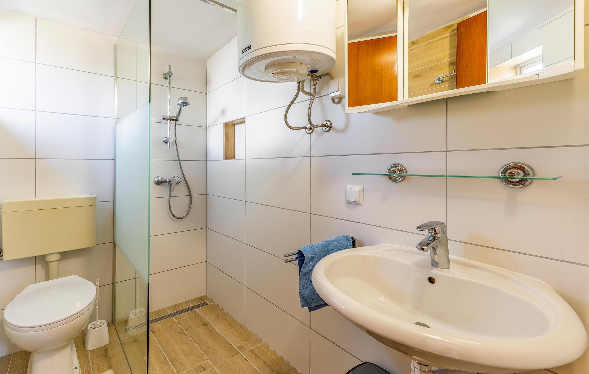 - WC mit warmem und kaltem Wasser, Dusche