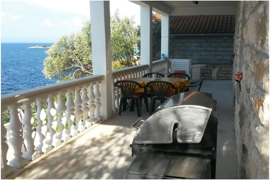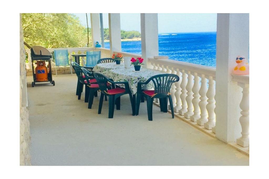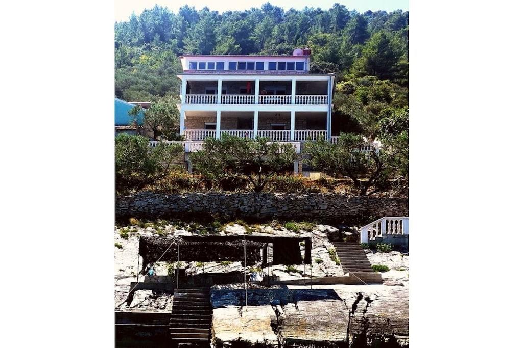 Mooi vakantieappartement in een huis, omringd door olijf- en vijgenbomen, direct aan zee. In een unieke mediterrane omgeving, met uitzicht op het eiland Hvar.