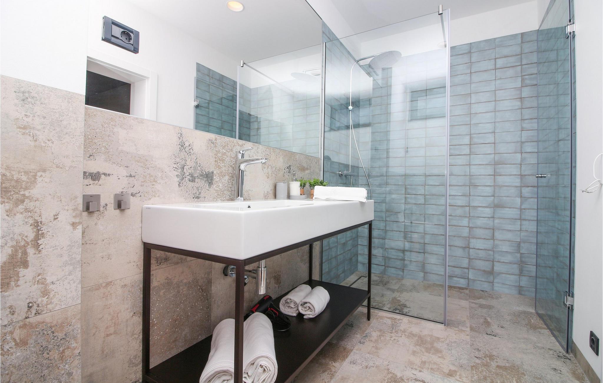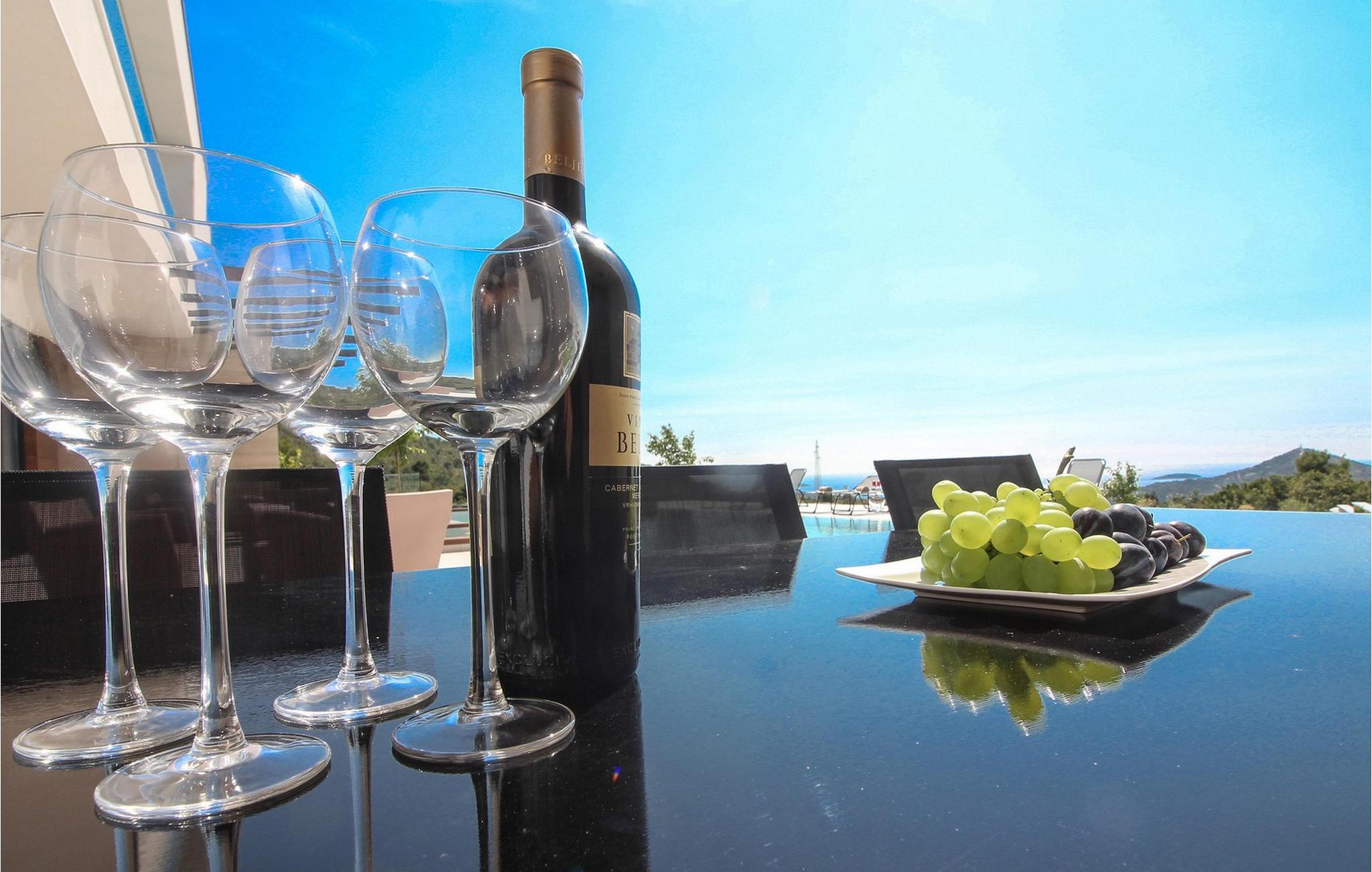 Mit ihrem eleganten Design und hochwertiger Ausstattung bietet Ihnen die Villa Korina ein perfektes Urlaubserlebnis. Das stilvoll eingerichtete Wohnzimmer geht fließend in den großzügigen Essbereich über, während die voll ausgestattete Küche mit Eismaschine und Weinkühler Sie zum Verweilen einlädt. In den komfortablen Schlafzimmern mit eigenem Bad genießen Sie höchsten Komfort. Genießen Sie die klaren Linien der modernen Architektur, die sich über zwei Etagen verteilt und im Inneren liebevoll gestaltete und farblich ansprechende Räume bietet.