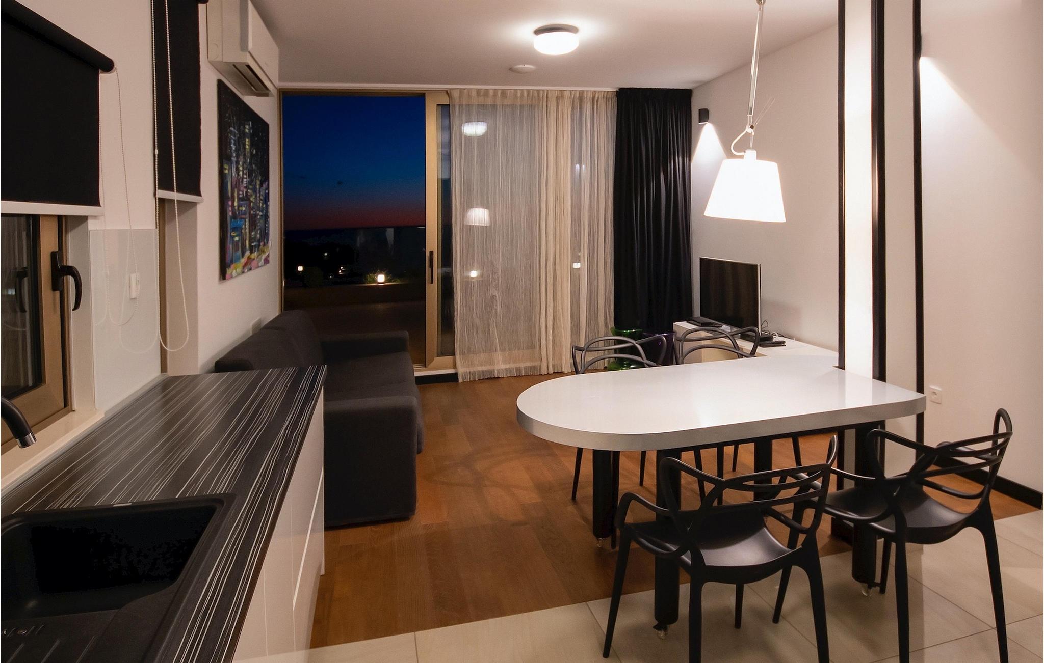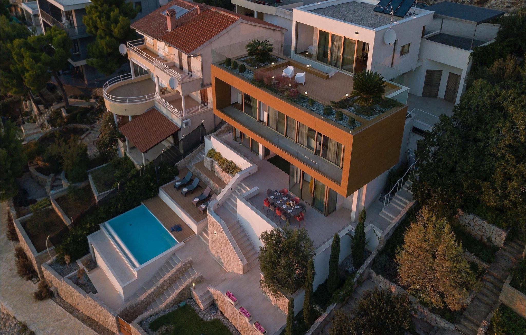 Wenn man in den Hof der Villa geht, sieht man zuerst den Infinity Pool, wo man sich entspannen kann. Der Blick auf das Meer, während Sie im Pool schwimmen, wird Sie faszinieren. Die Villa bietet Billard und Tischfußball für zusätzliche Unterhaltung. Der zusätzliche Reinigungsdienst steht auf Anfrage kostenlos zur Verfügung. Die Villa bietet kostenlosen WiFi und einen abgedeckten Parkplatz für 4 Autos. Wenn Sie von einem schönen Urlaubsort träumen, ist Villa Gloss die perfekte Wahl. Packen Sie Ihre Koffer und buchen Sie Villa Gloss für unvergessliche Momente.Die Villa Gloss liegt an der dalmatischen Küste im keinen Dorf Bilo nahe der beliebten Stadt Primosten. Primosten ist ein berühmtes Touristenziel in Dalmatien und gilt als eine der schönsten Städte an der Adria. Wenn Sie vom Urlaub mit einem spektakulären Blick auf die Mittelmeerlandschaft und einem glasklaren Meer träumen, dann ist die Lage der Villa Gloss ideal für Sie. In Primosten finden Sie alles, was Sie für einen angenehmen Urlaub brauchen, wie Geschäfte, Restaurants, verschiedene Aktivitäten, beliebte Clubs, Veranstaltungen in der Stadt und unberührte Natur mit wunderschönen Stränden und klarem Meer. Planen Sie eine Exkursion mit ihrer Familie? Besuchen Sie den Nationalpark Krka. Nur 30 Minuten Schifffahrt trennt Sie vom Nationalpark Kornati mit rund 60 Inseln. Wir sind sicher, dass Sie von diesem großartigen Gebiet begeistert sein werden. Es gibt Wander- und Fahrradwege nicht weit von der Villa, so dass Sie diese unberührte Natur erforschen können.